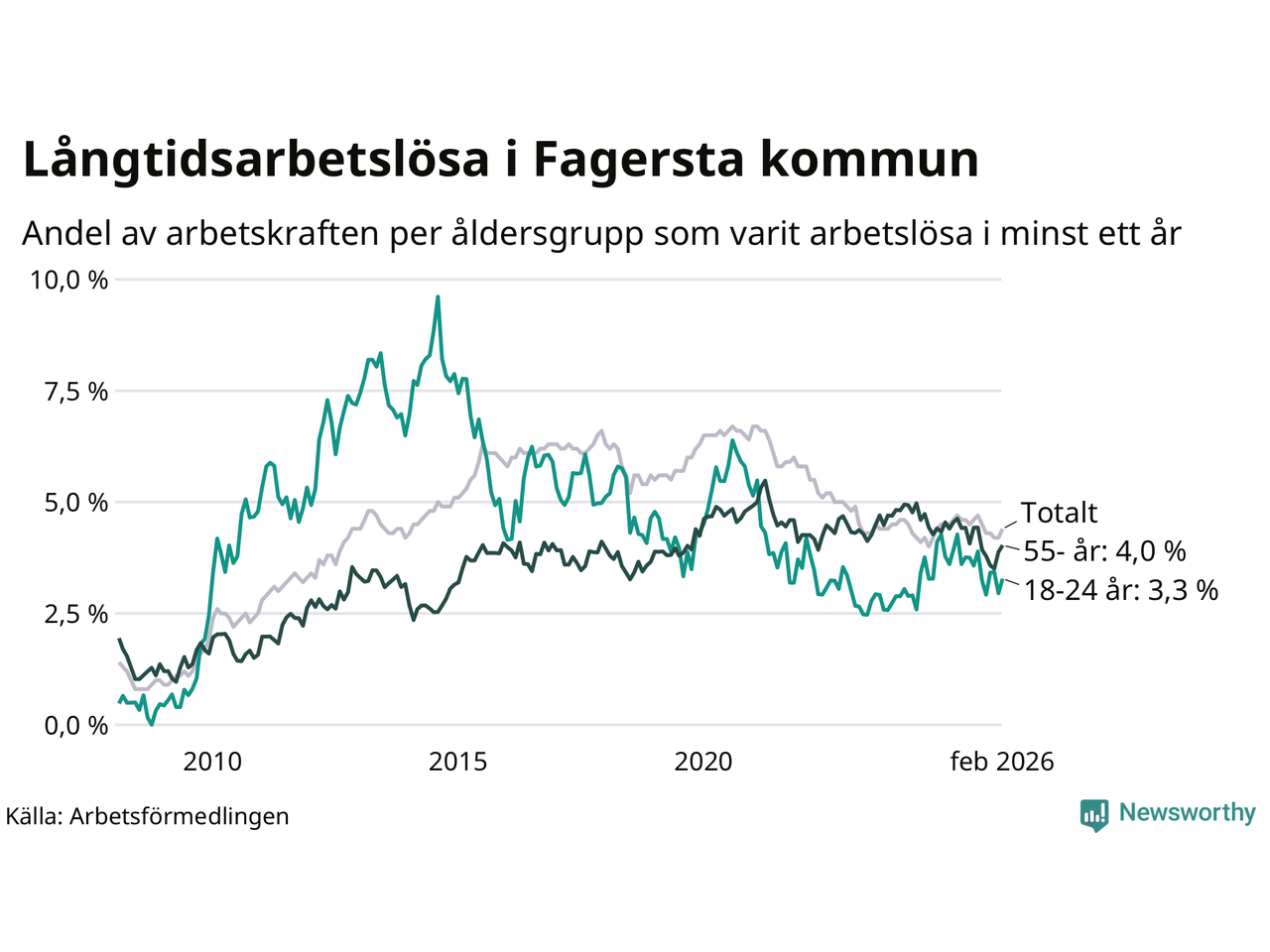 | Andel arbetslösa i minst ett år | 4,4 % | 3,6 % | 2,9 % |