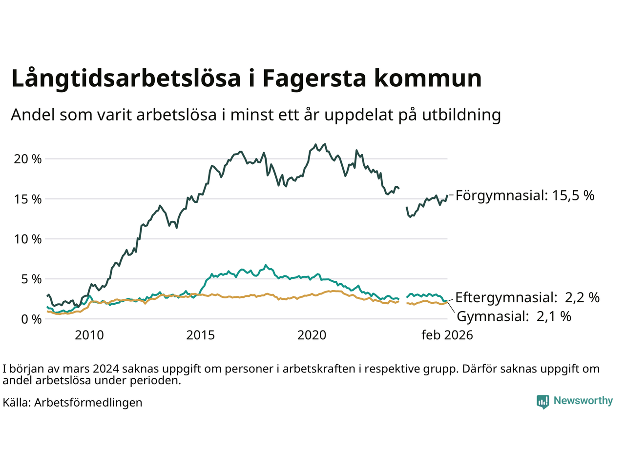 | Bland dem med eftergymnasial utbildning | 2,2 % | 2,0 % | 1,9 % |