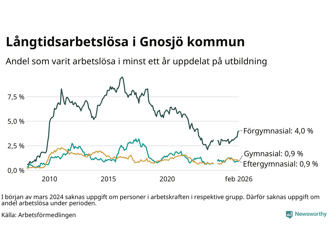 | Bland dem utan gymnasieutbildning | 4,0 % | 7,1 % | 7,9 % |