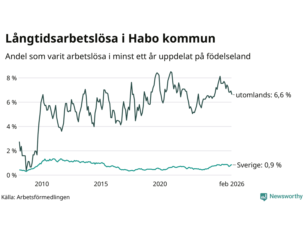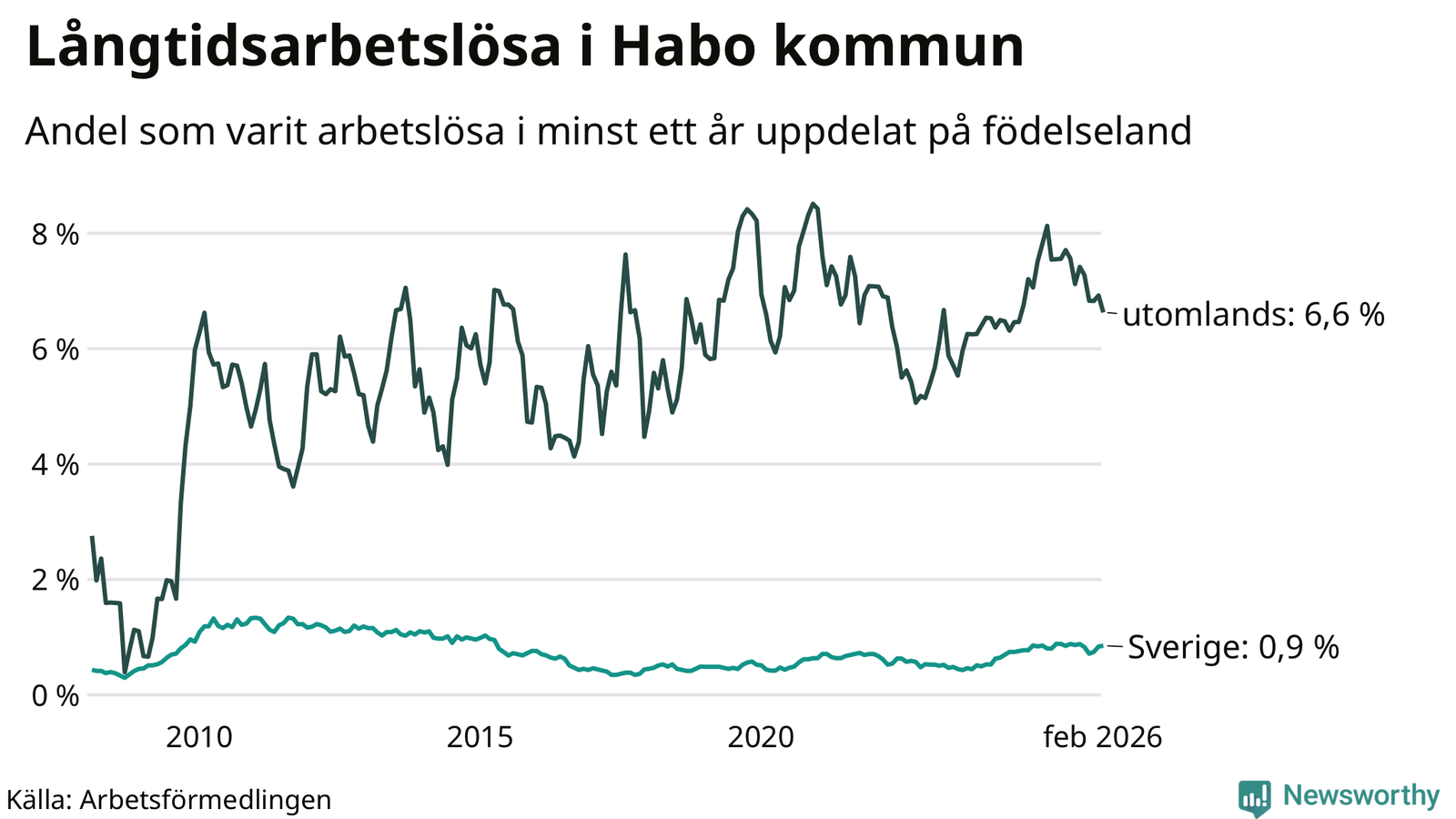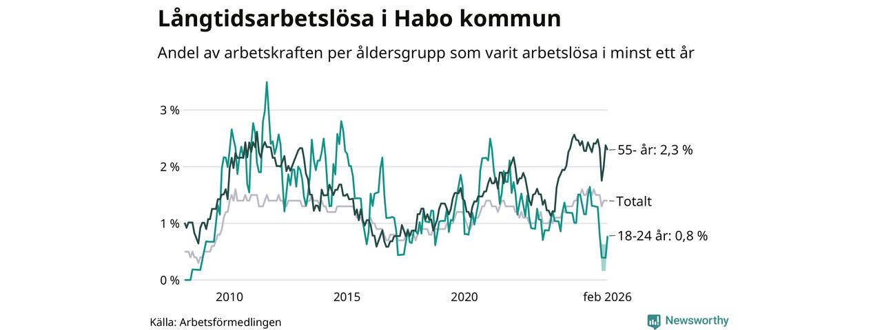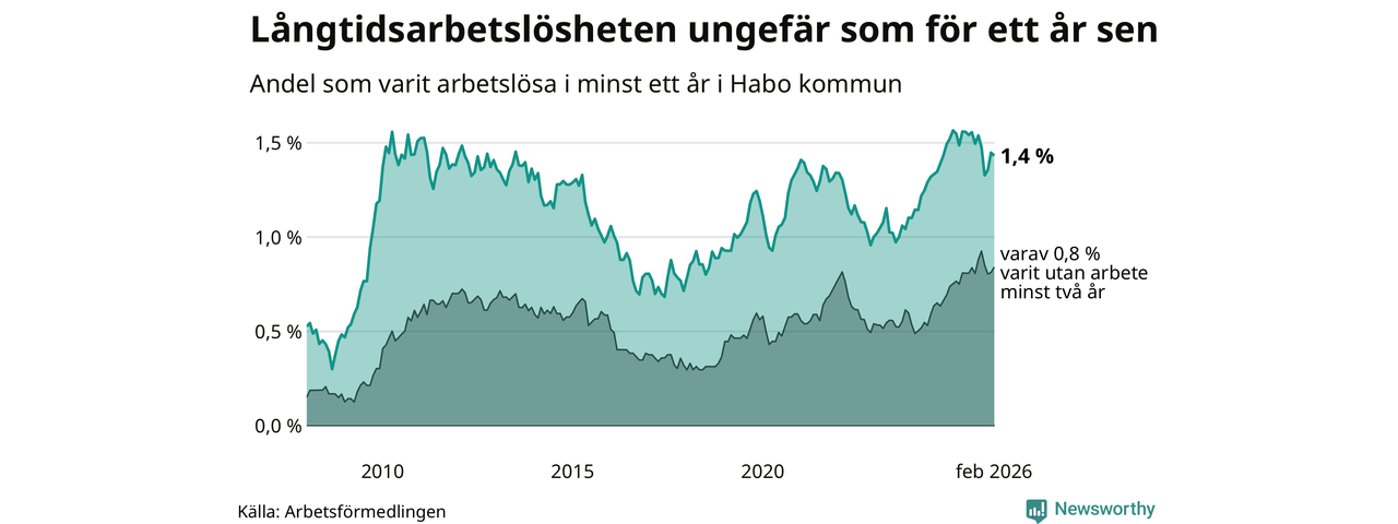 Långtidsarbetslöshet i Habo i februari 2026