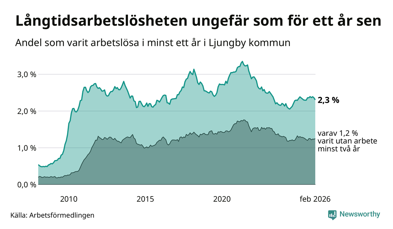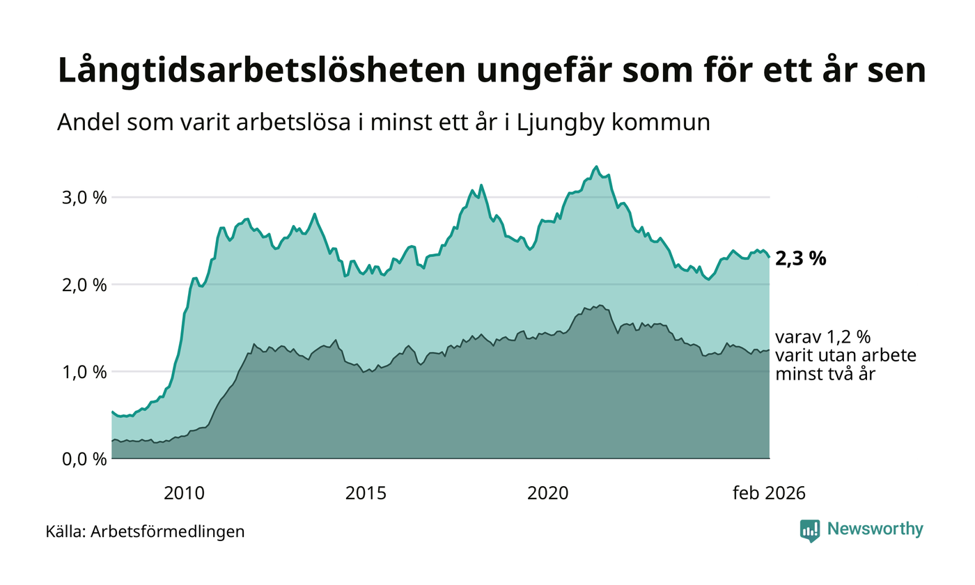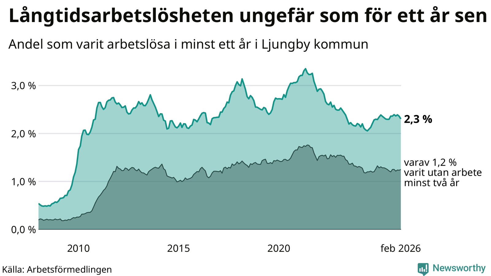 Långtidsarbetslöshet i Ljungby i februari 2026