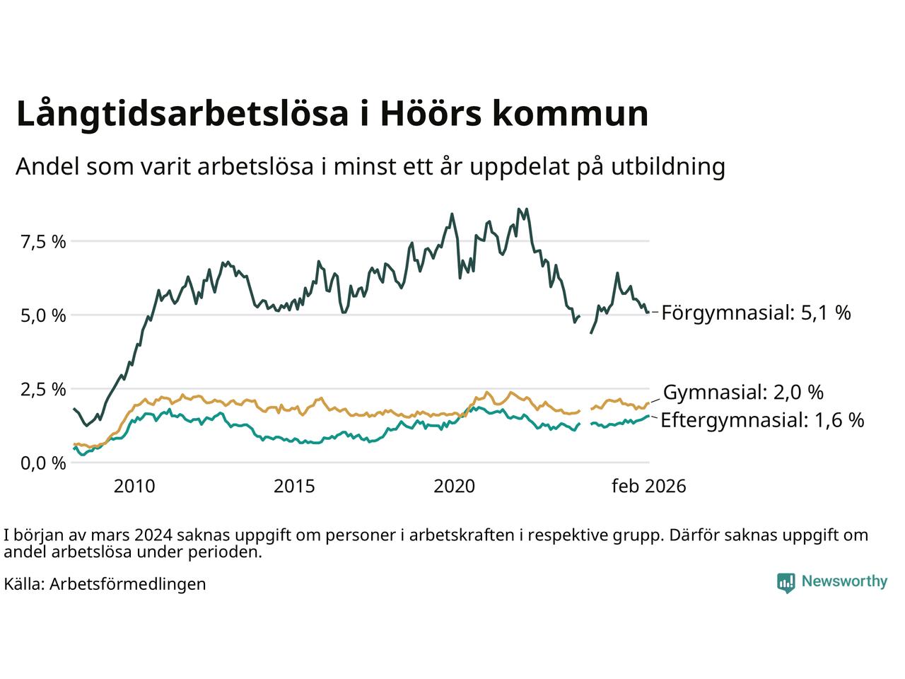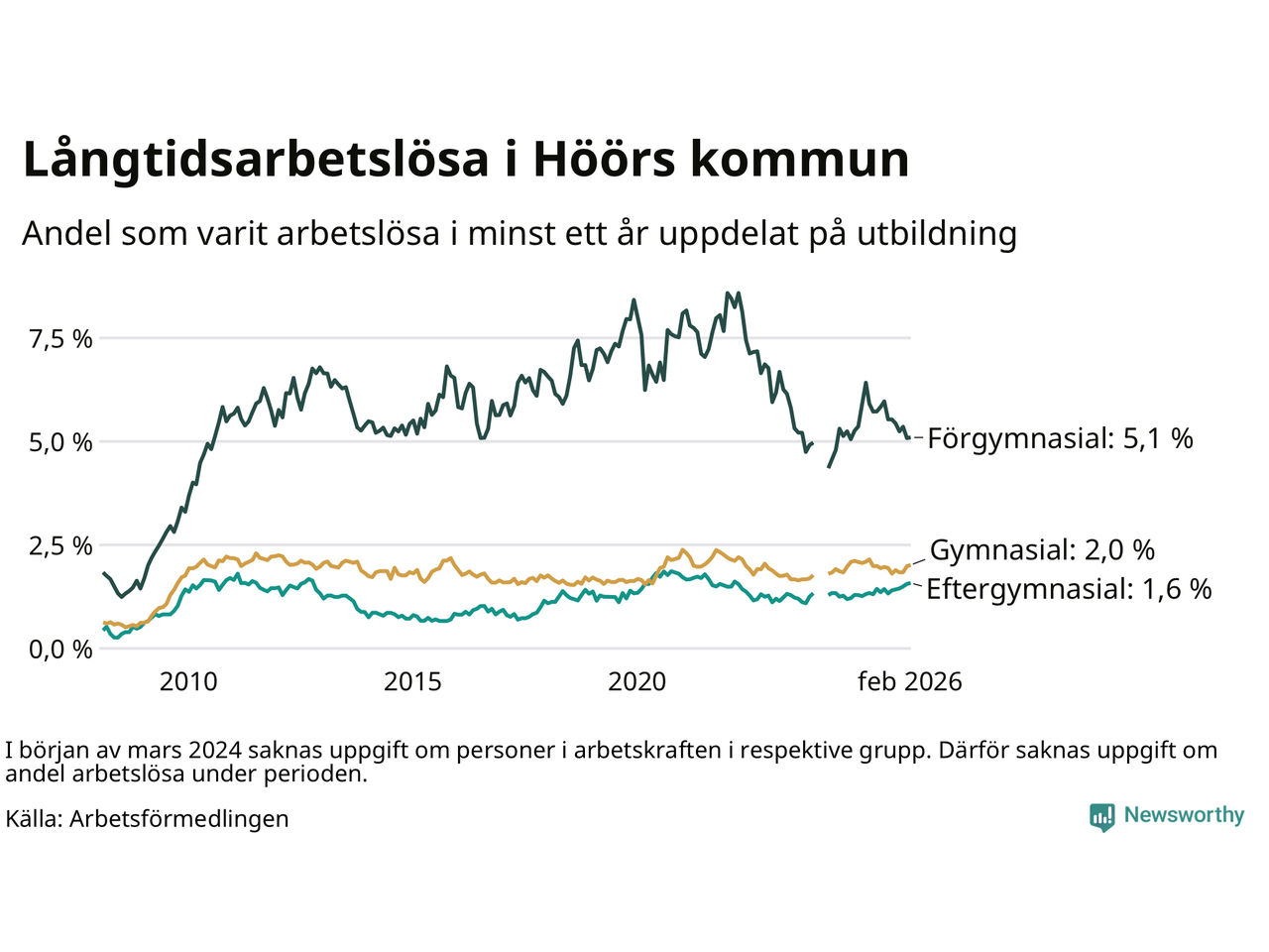 | Andel arbetslösa i minst ett år | 2,2 % | 4,0 % | 2,9 % |