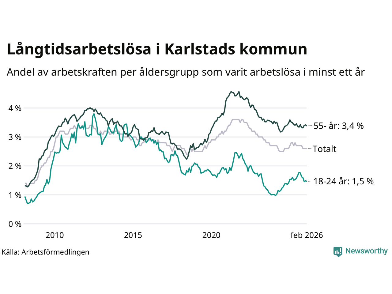 | Andel arbetslösa i minst ett år | 2,6 % | 2,4 % | 2,9 % |