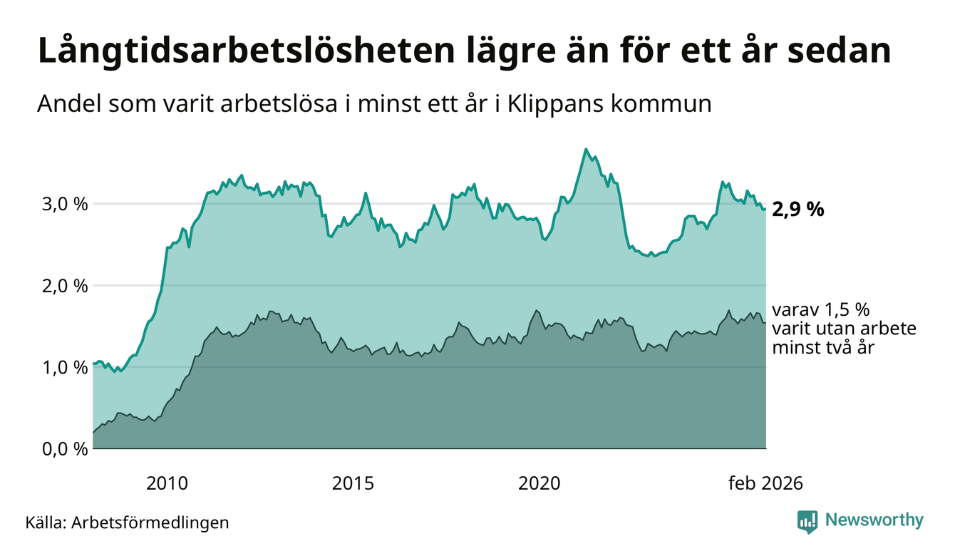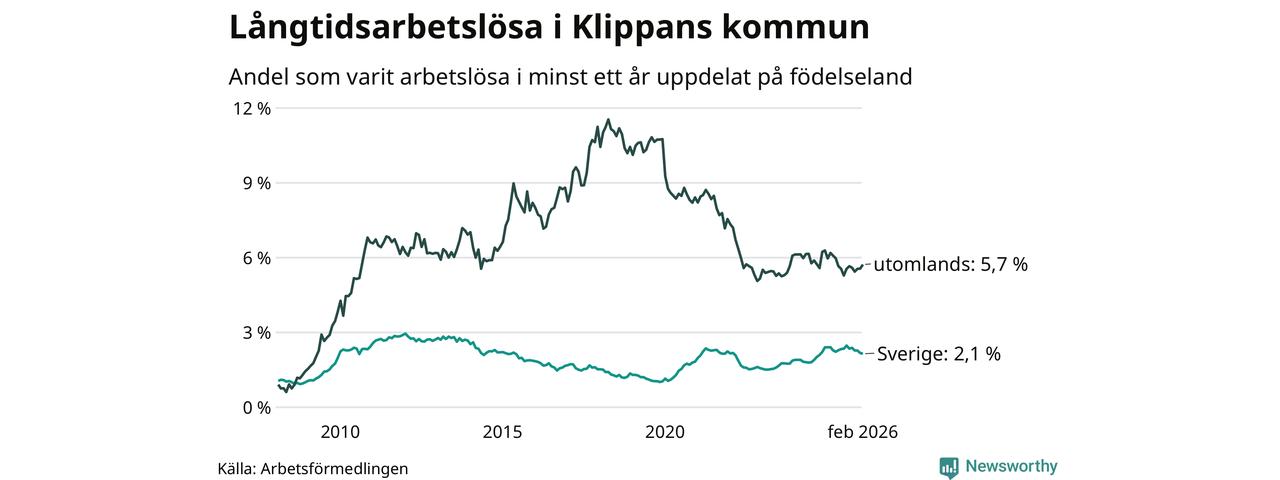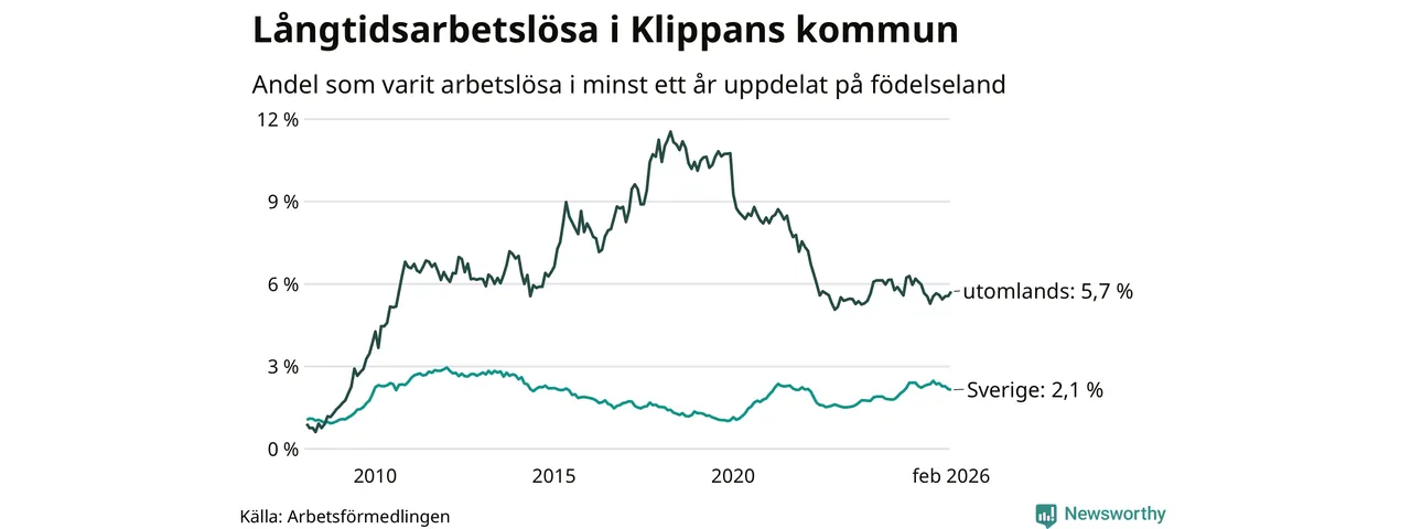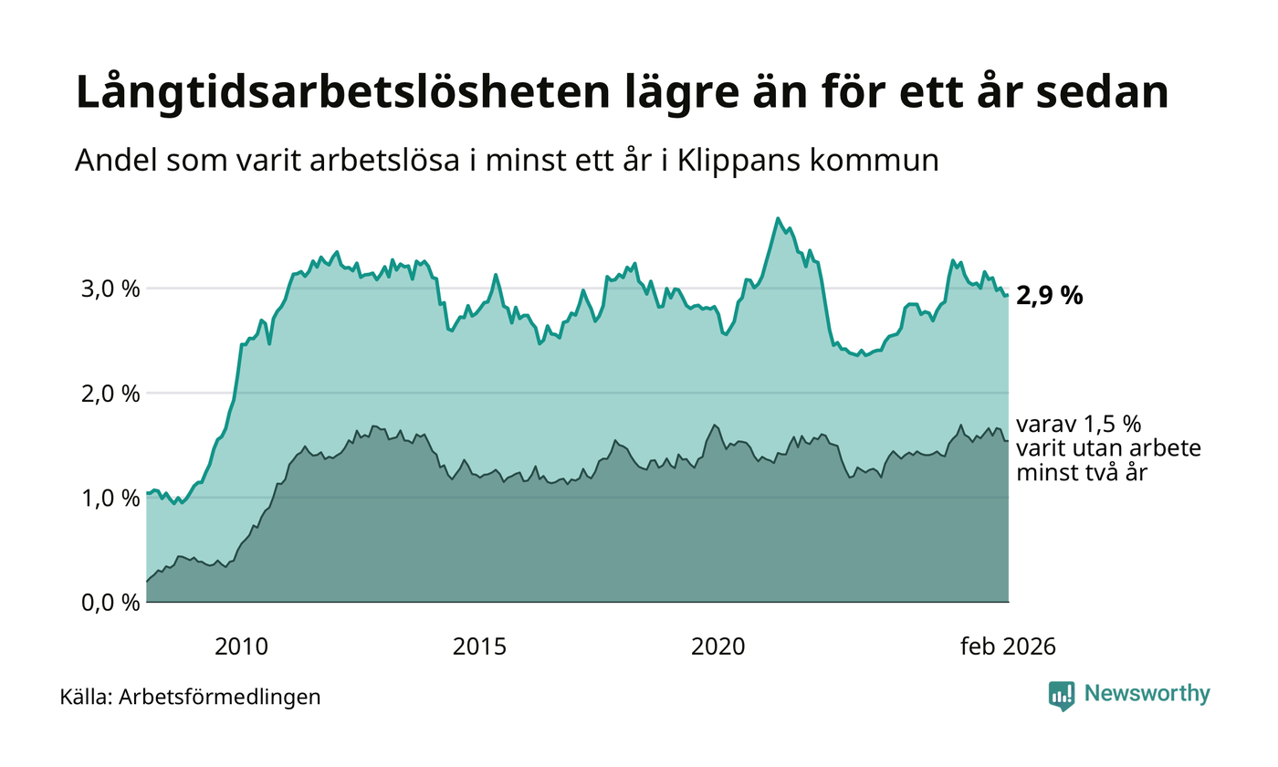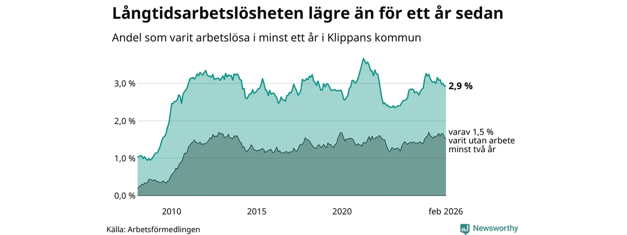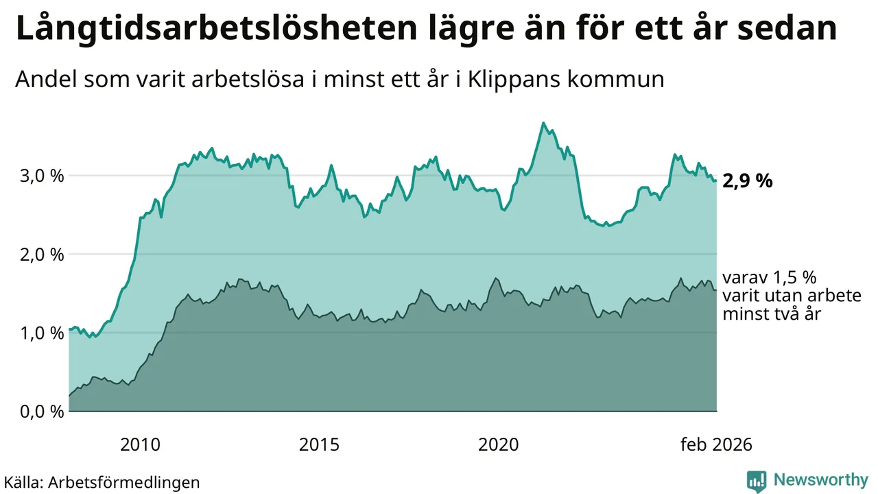 Långtidsarbetslöshet i Klippan i februari 2026