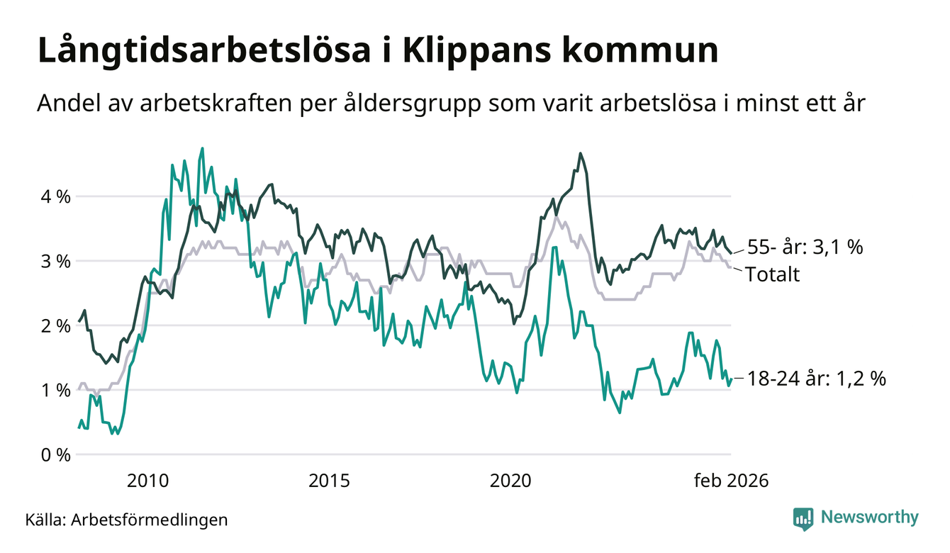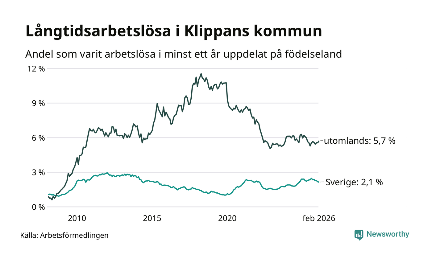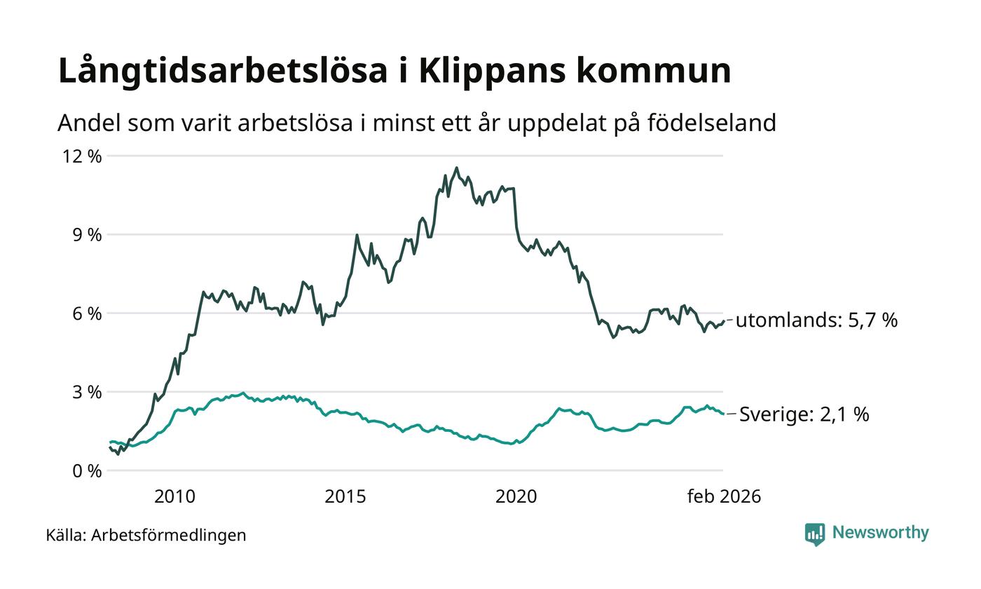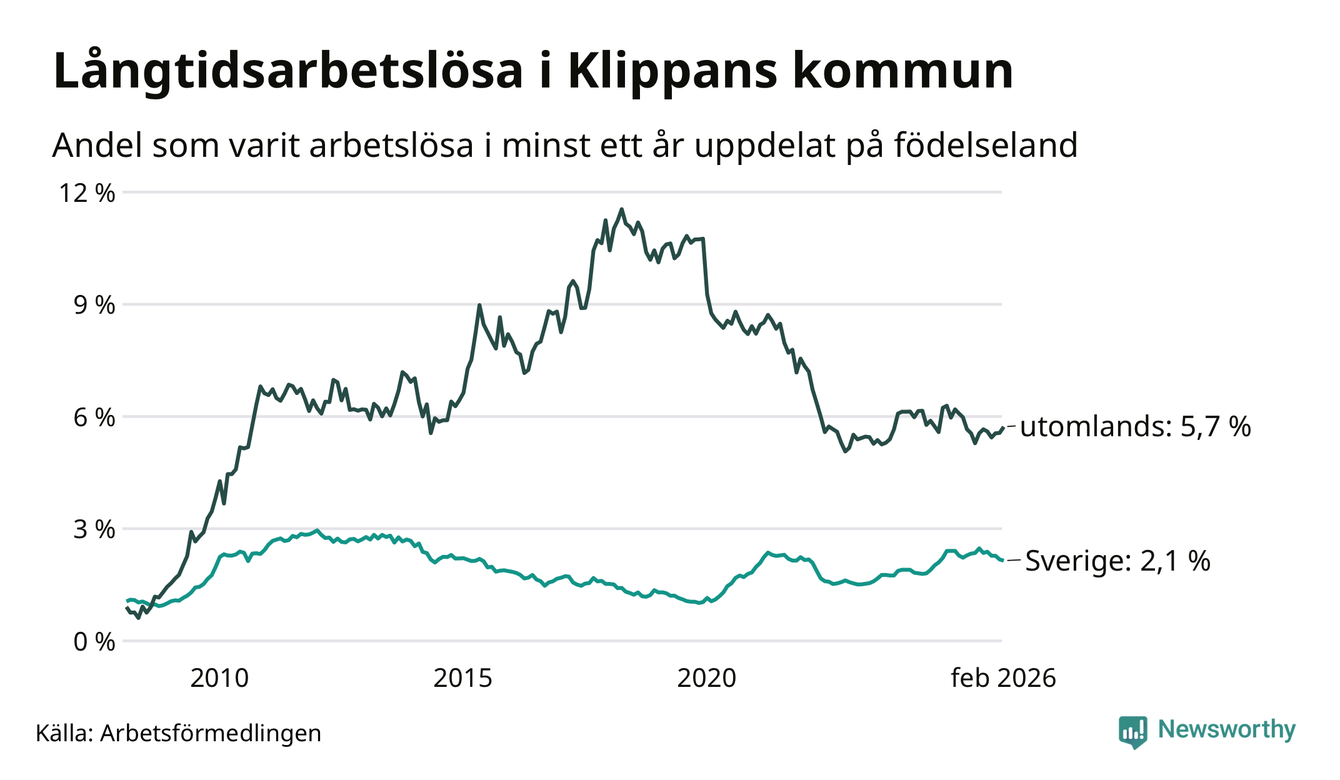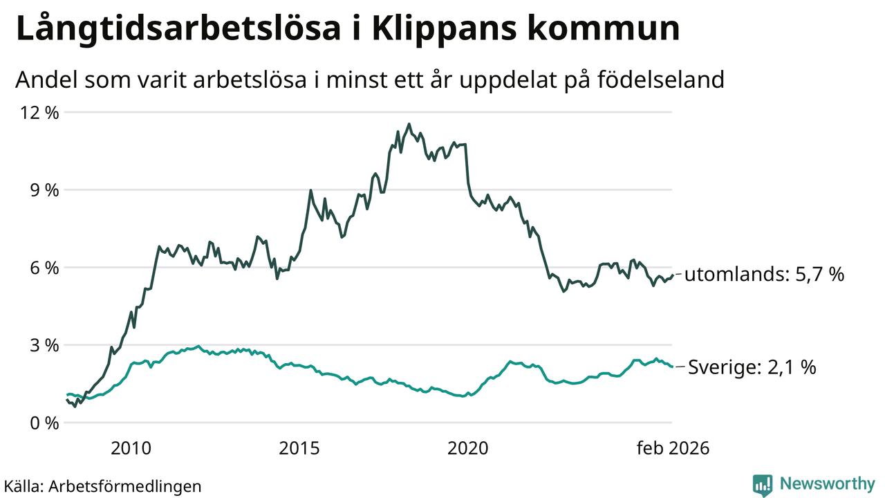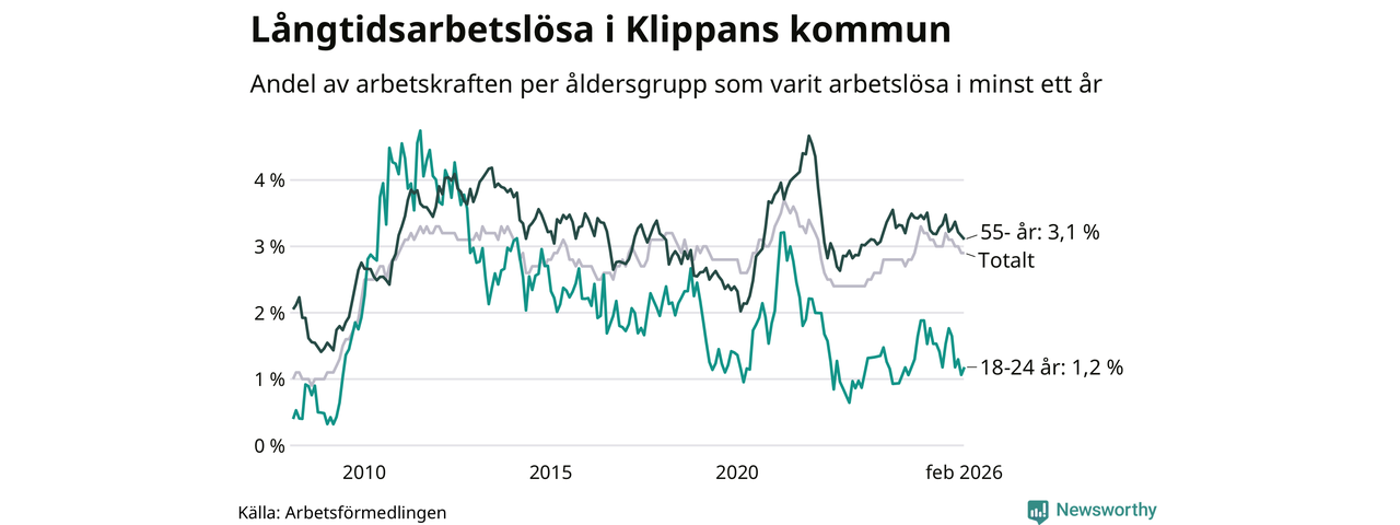 Långtidsarbetslöshet i Klippan i februari 2026