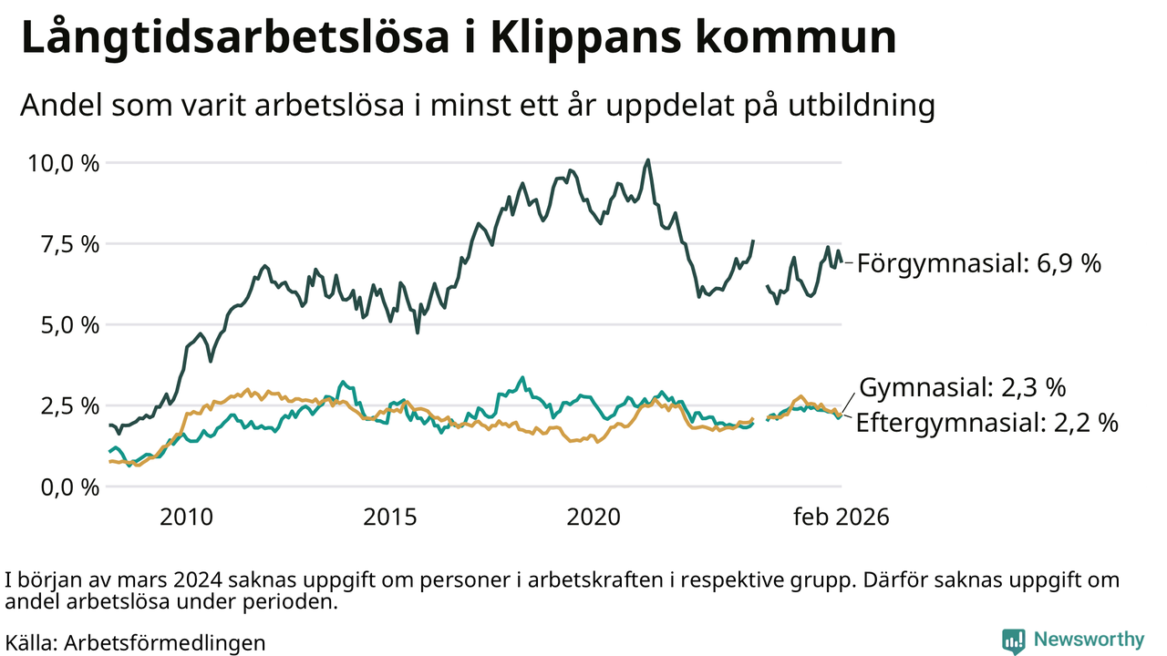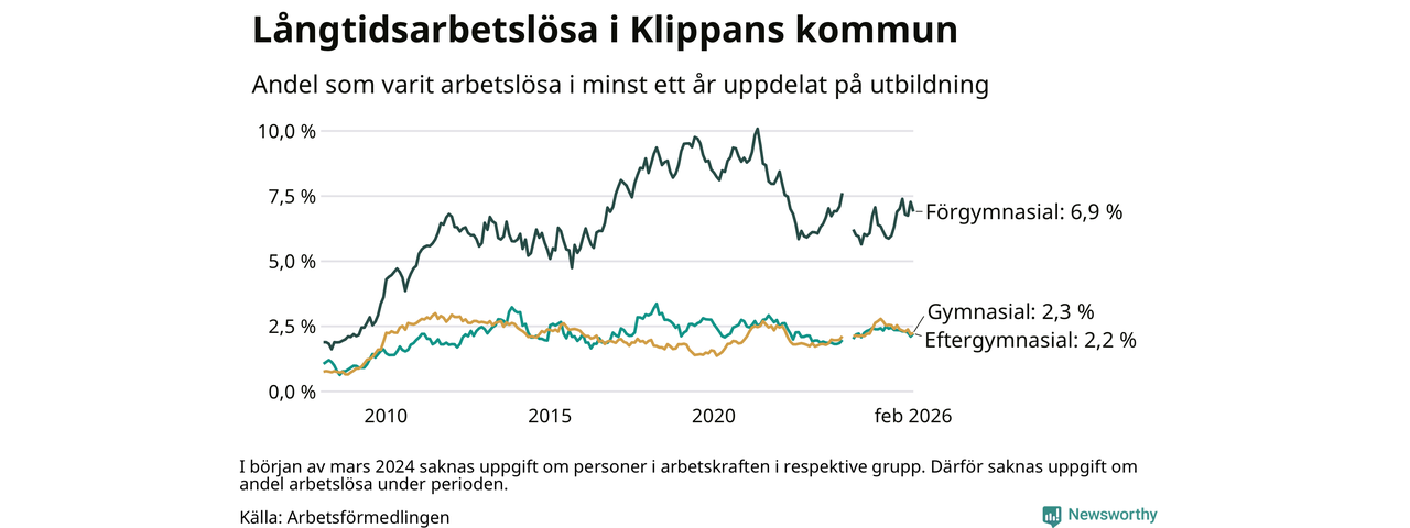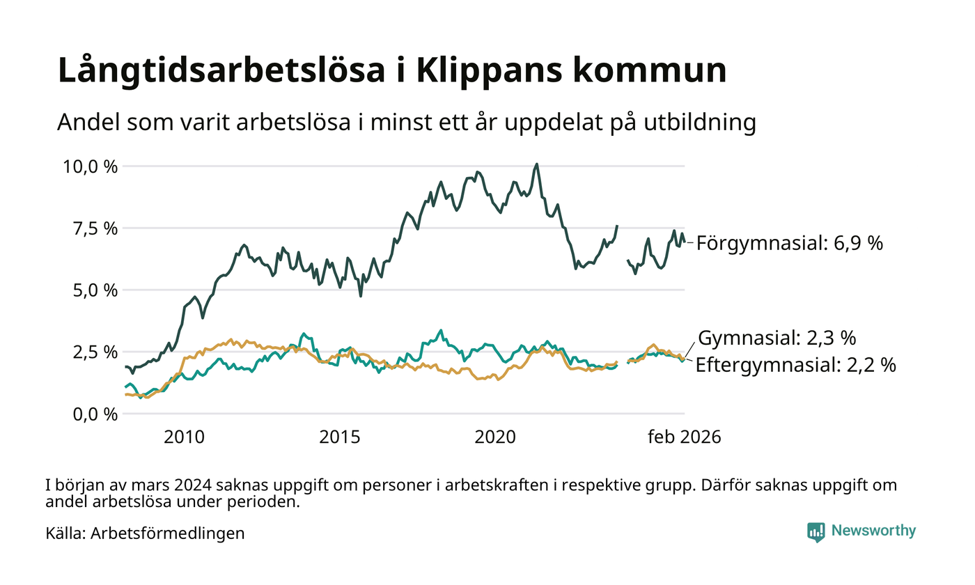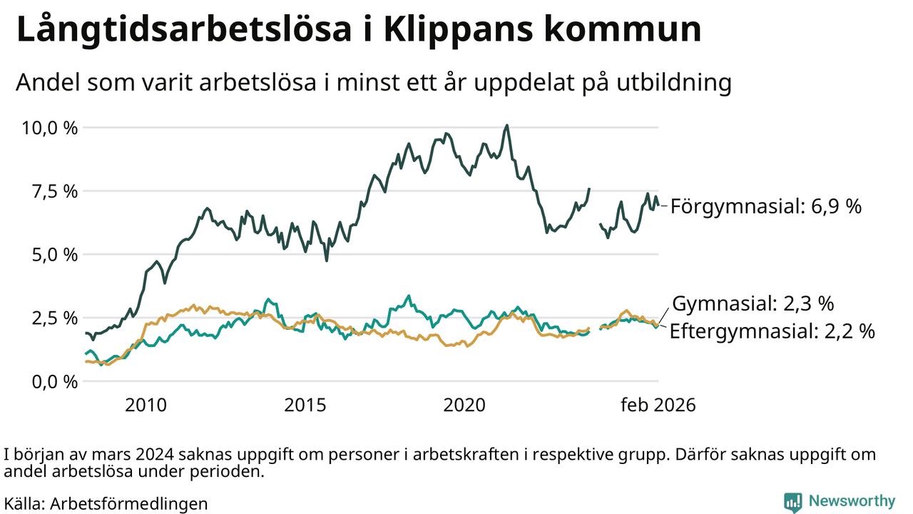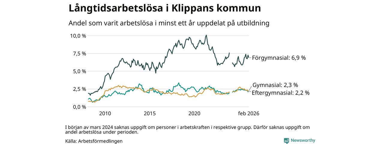 Långtidsarbetslöshet i Klippan i februari 2026