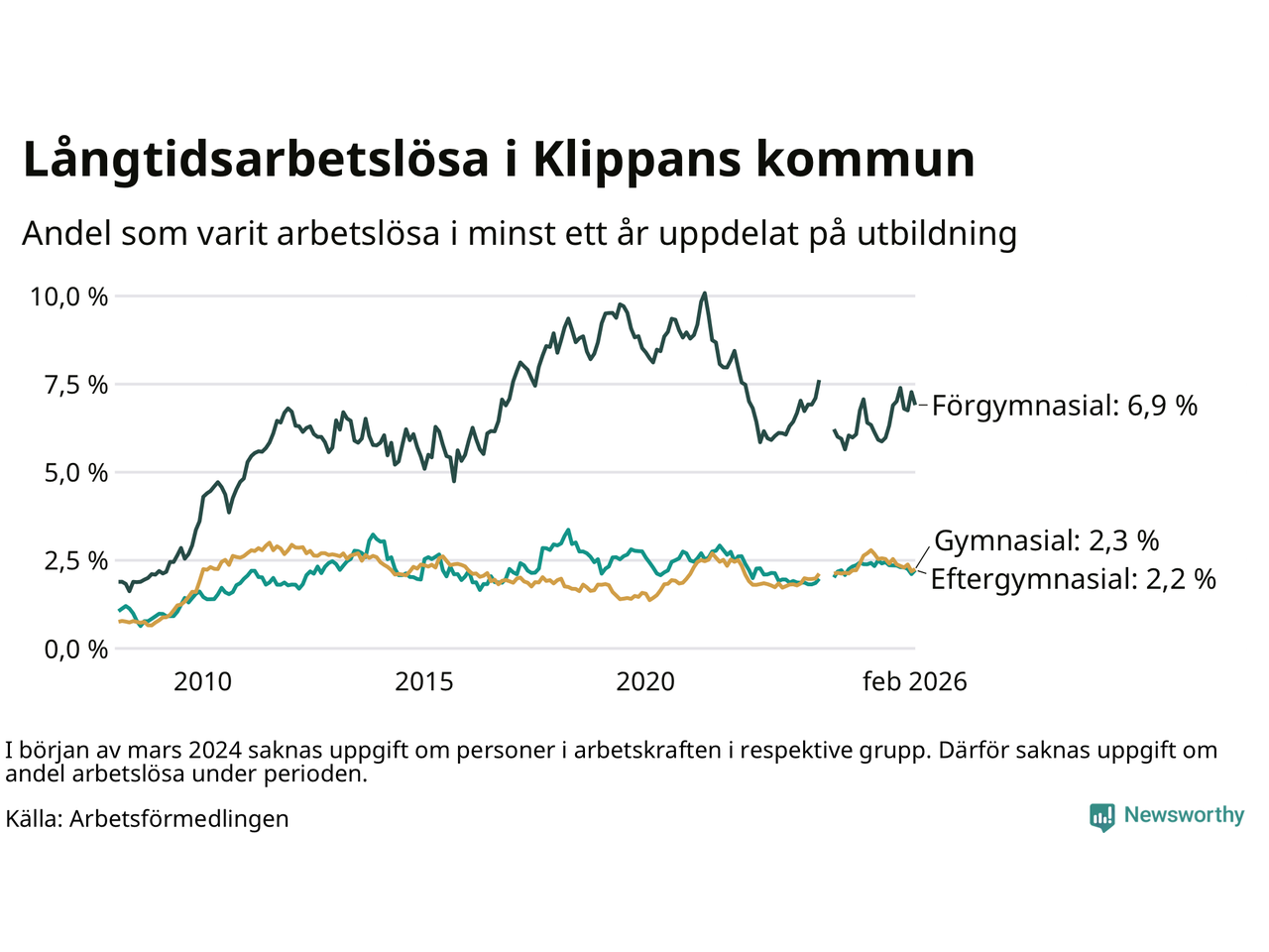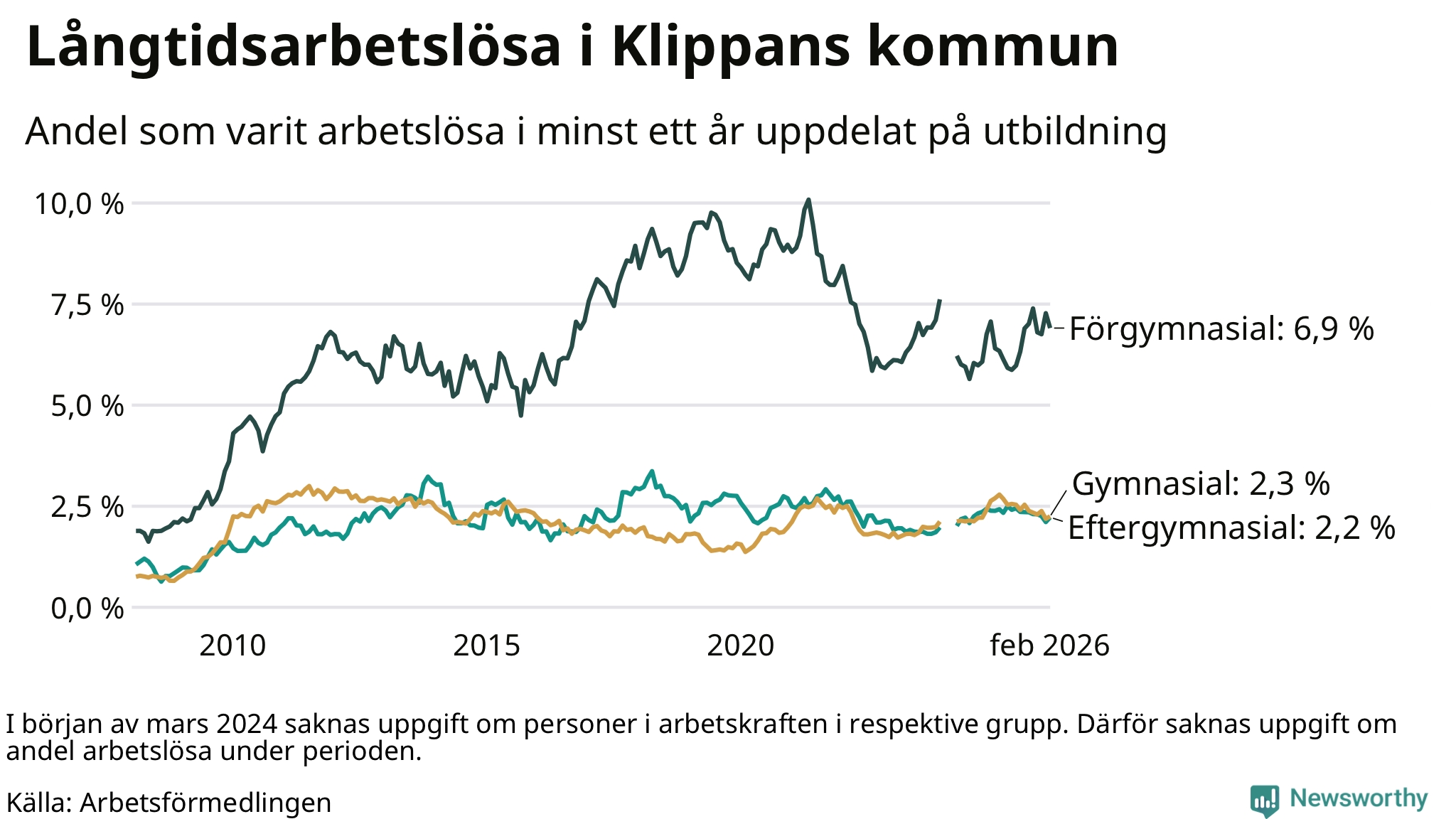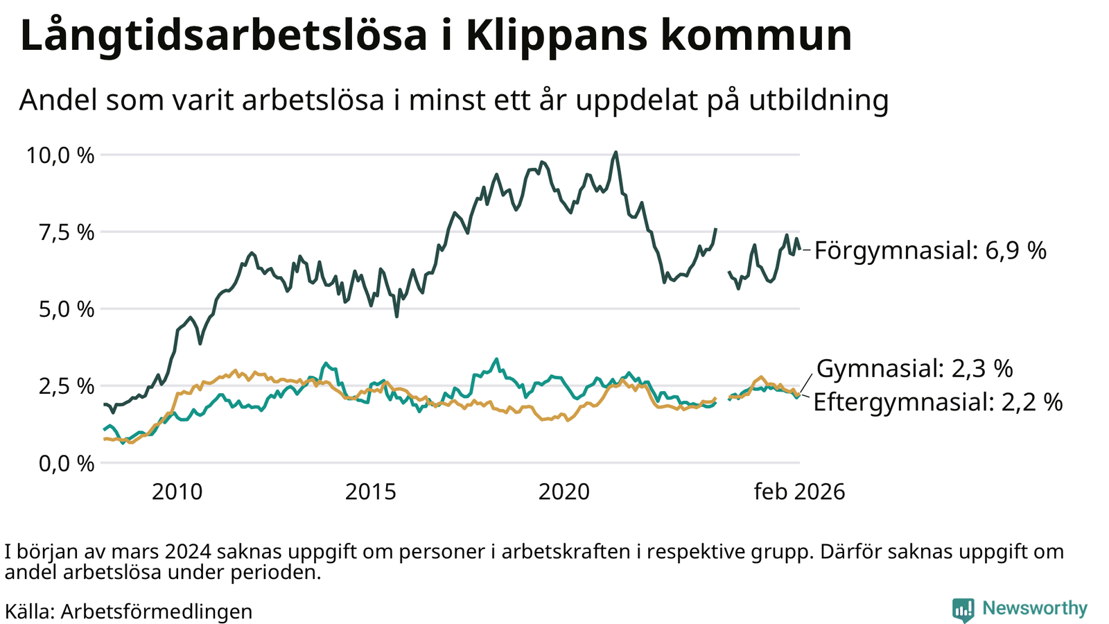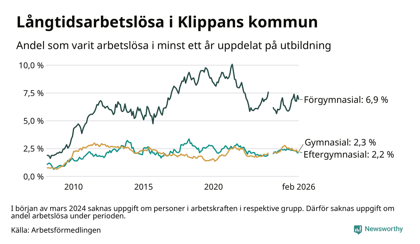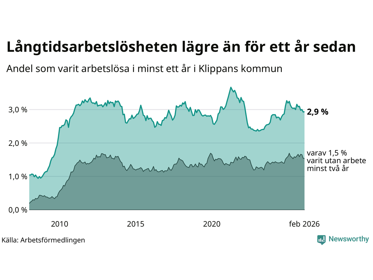 Långtidsarbetslöshet i Klippan i februari 2026