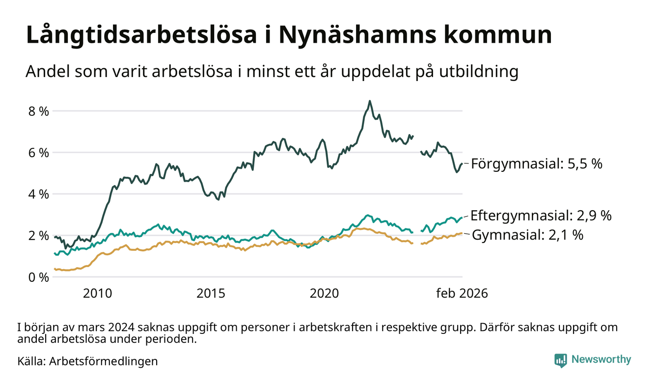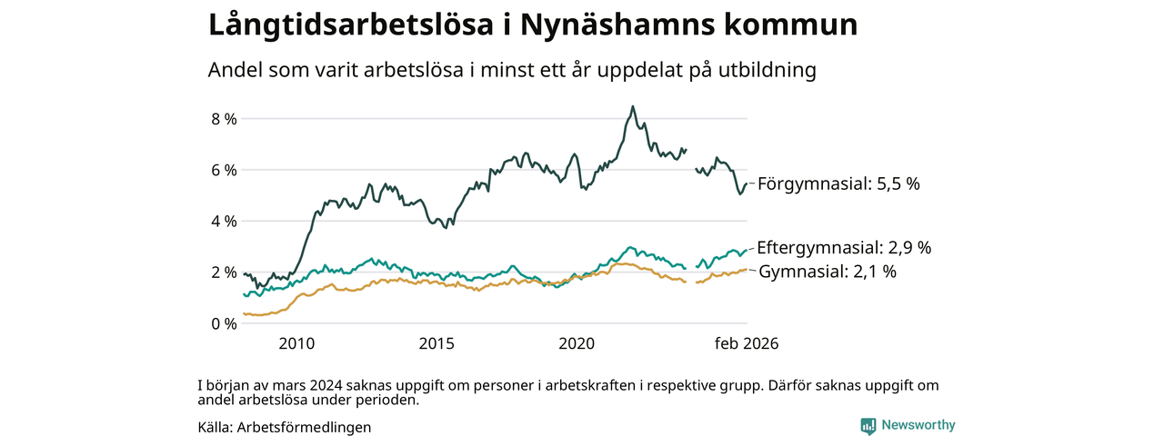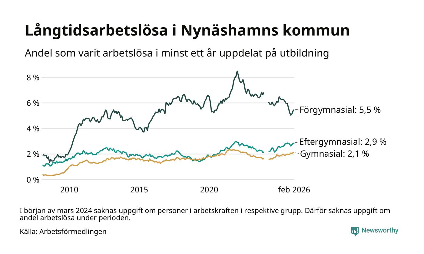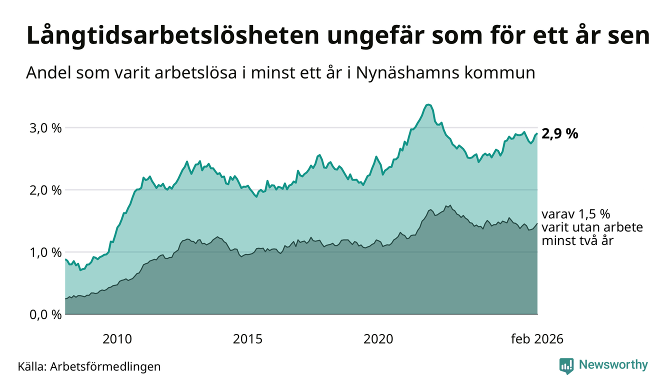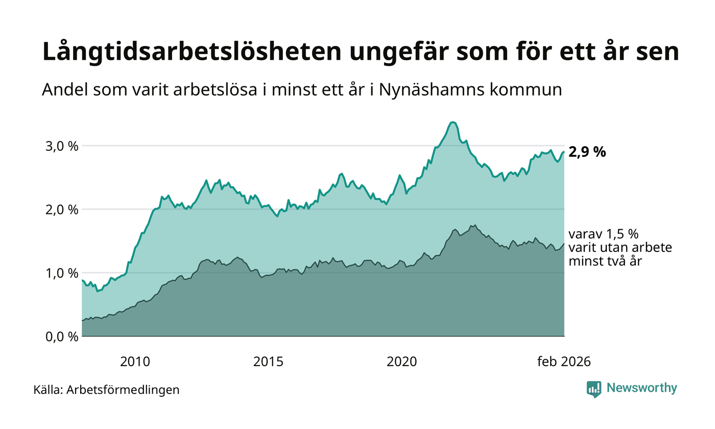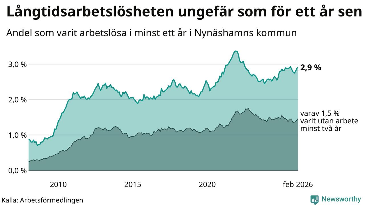 Långtidsarbetslöshet i Nynäshamn i februari 2026