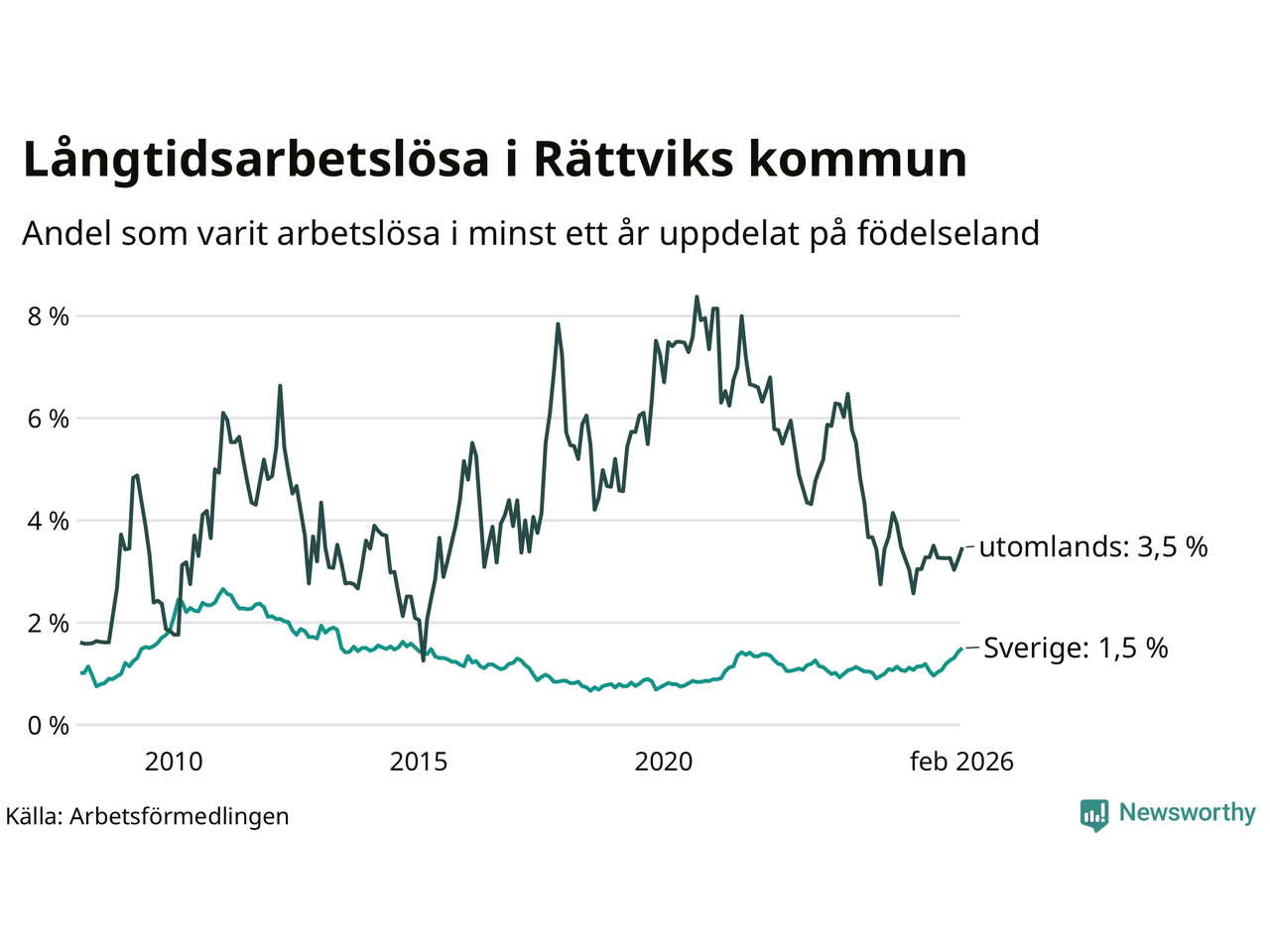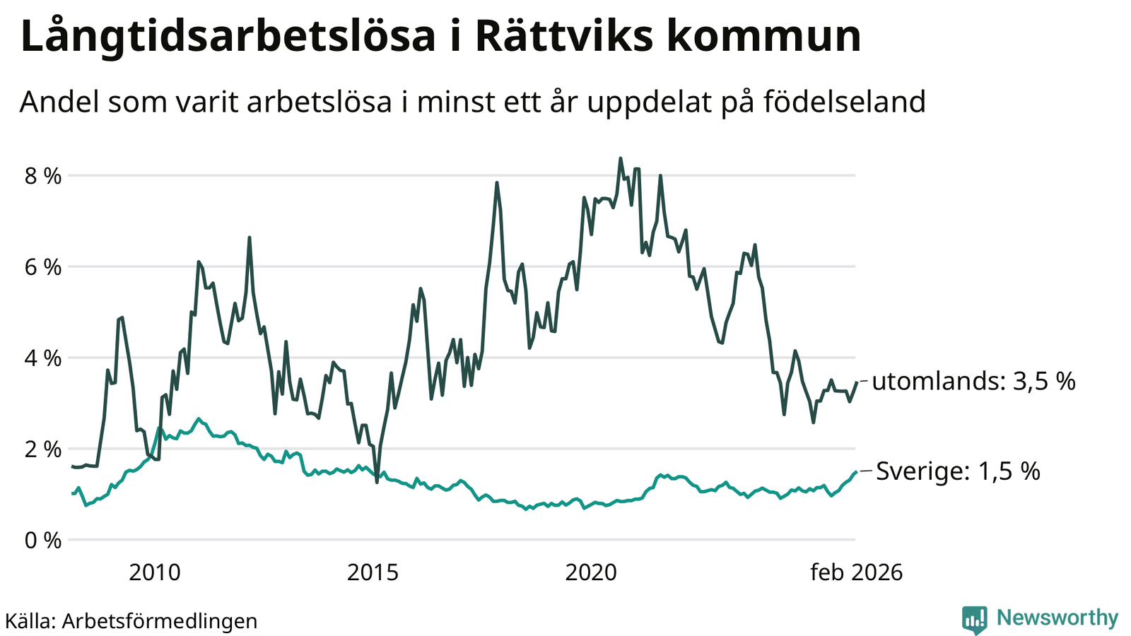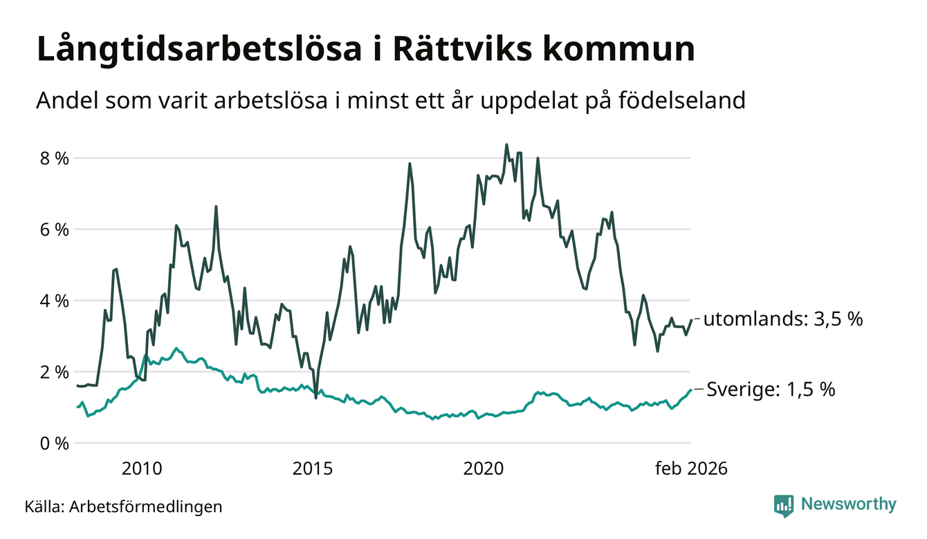 Graf: Andel arbetslösa uppdelat på födelseland i Rättvik