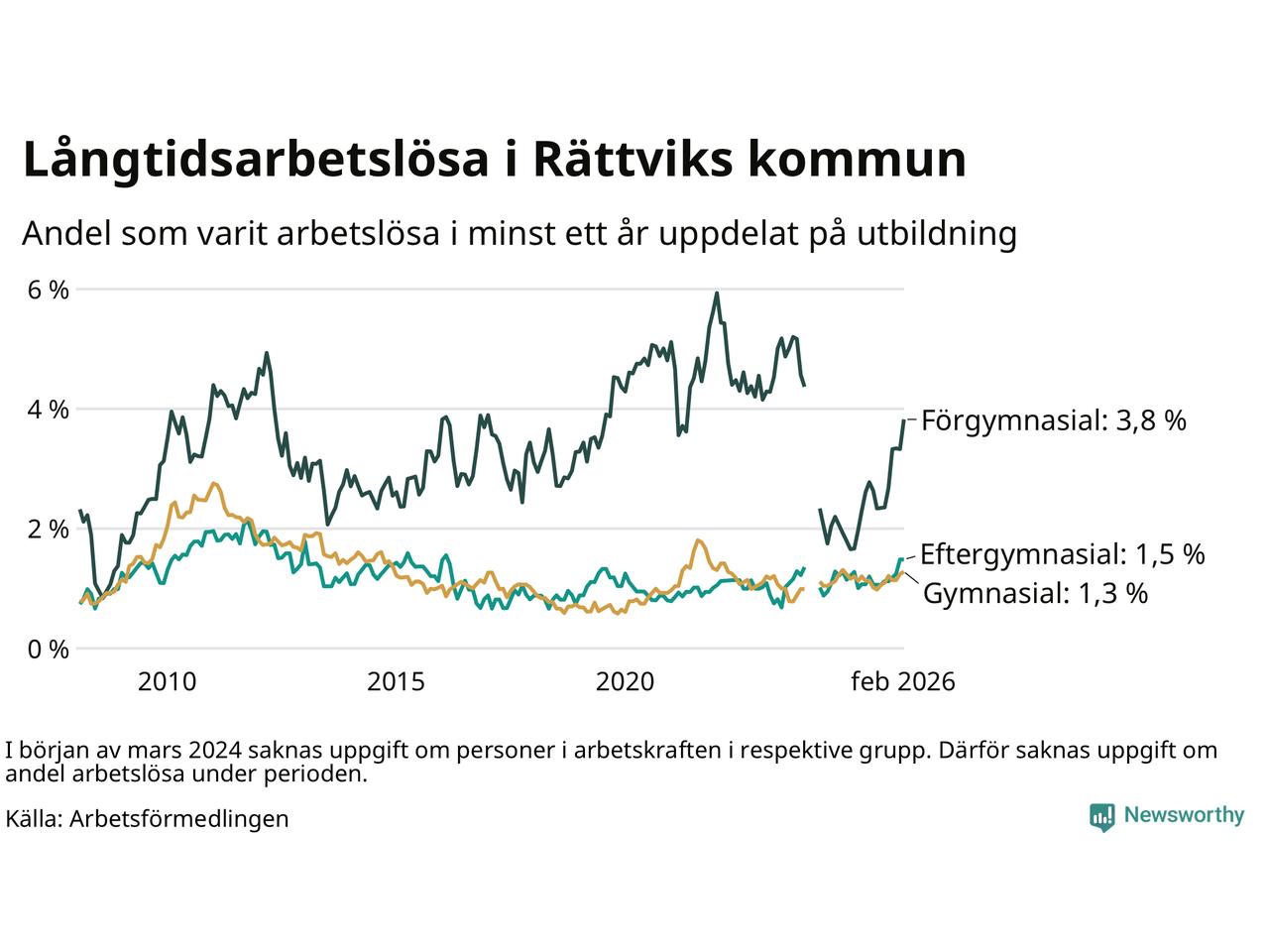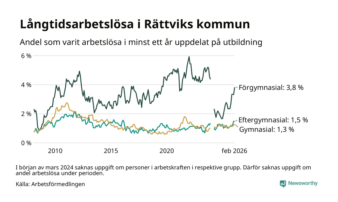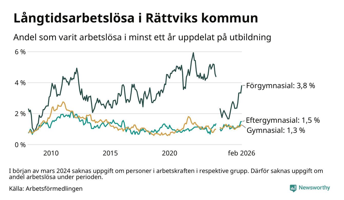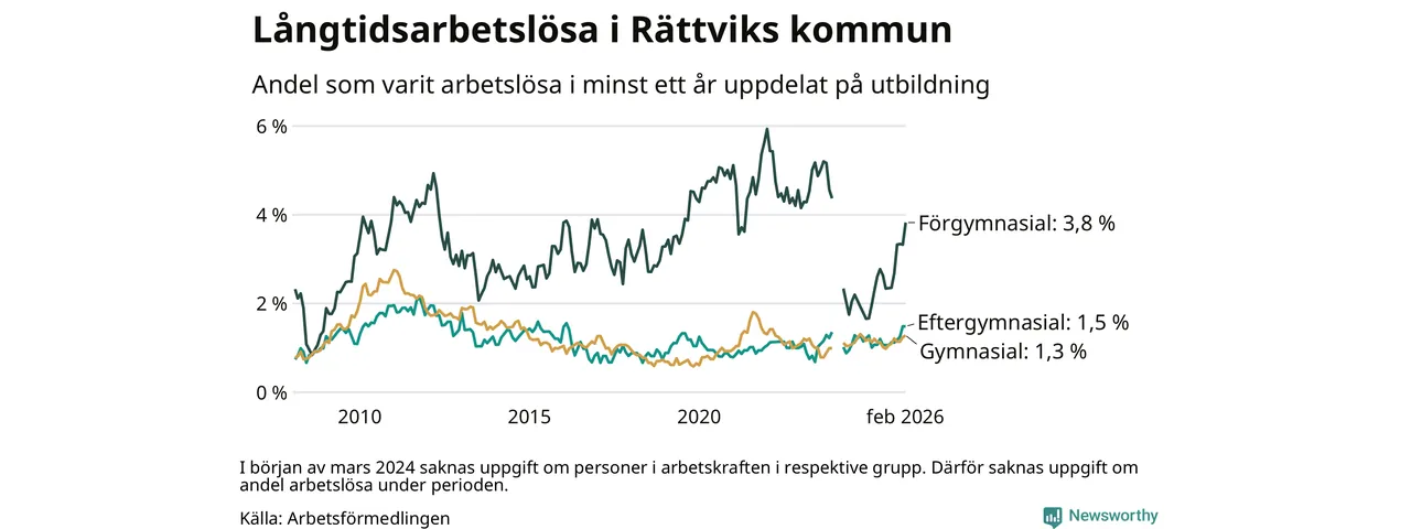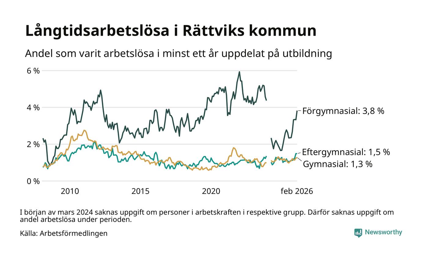 Inte sedan mars 2022 har andelen långtidsarbetslösa varit så hög i Rättvik. Det visar Arbetsförmedlingens senaste månadsstatistik.