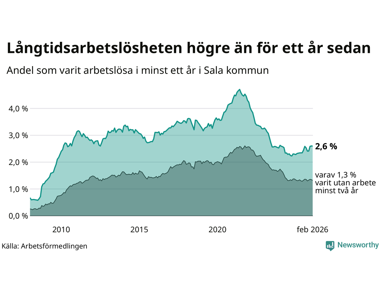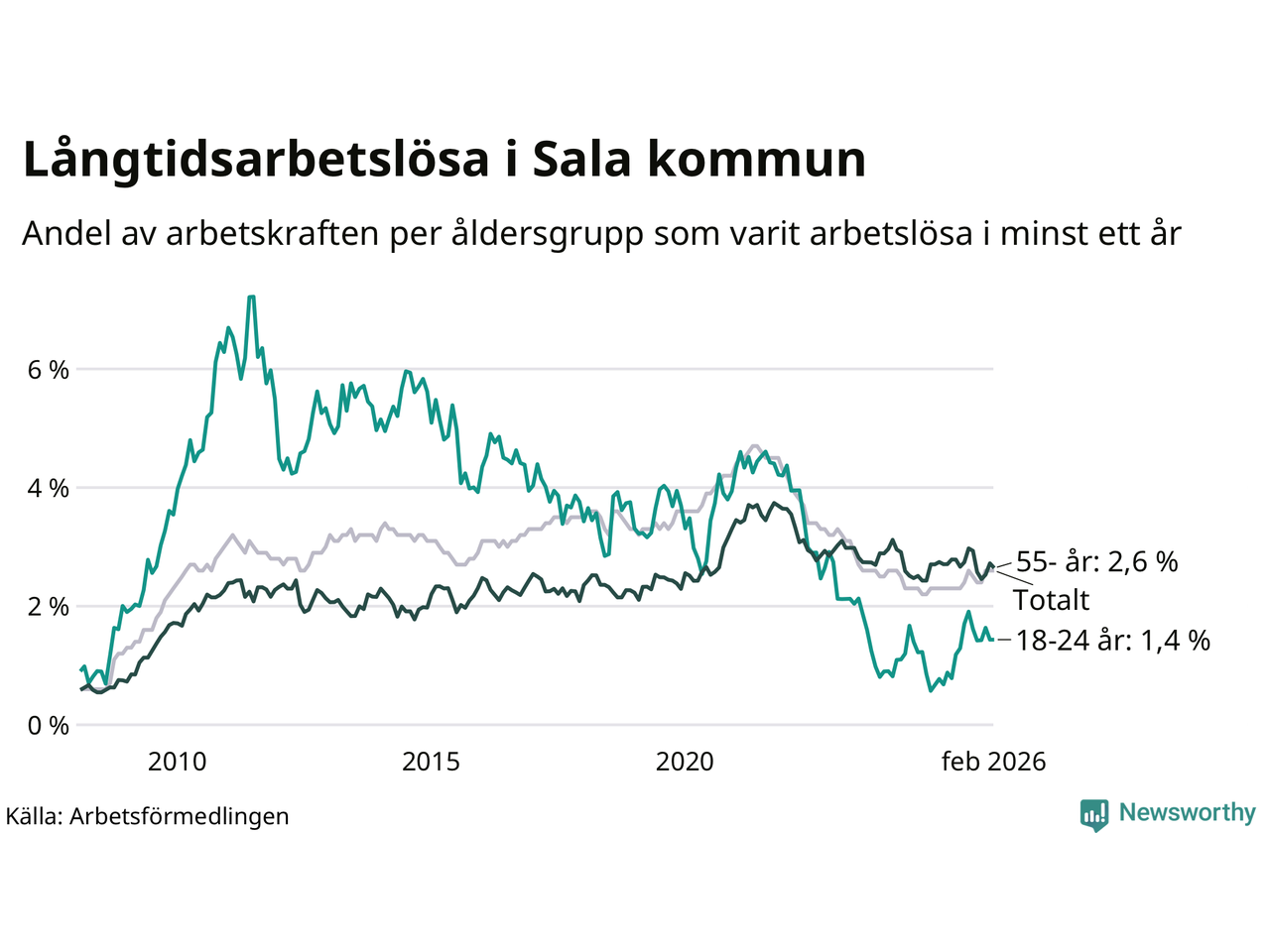 | Andel arbetslösa i minst ett år | 2,6 % | 3,6 % | 2,9 % |