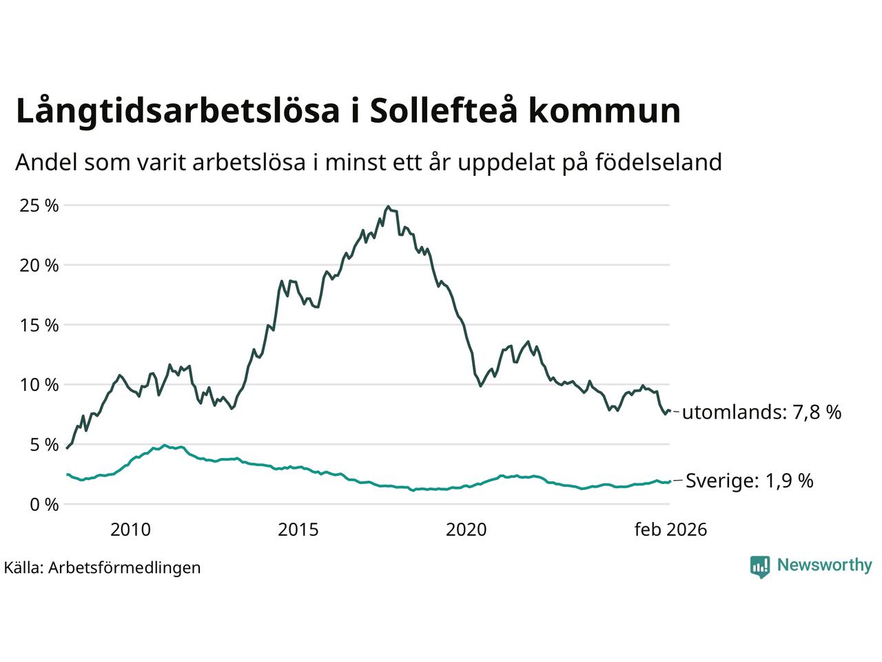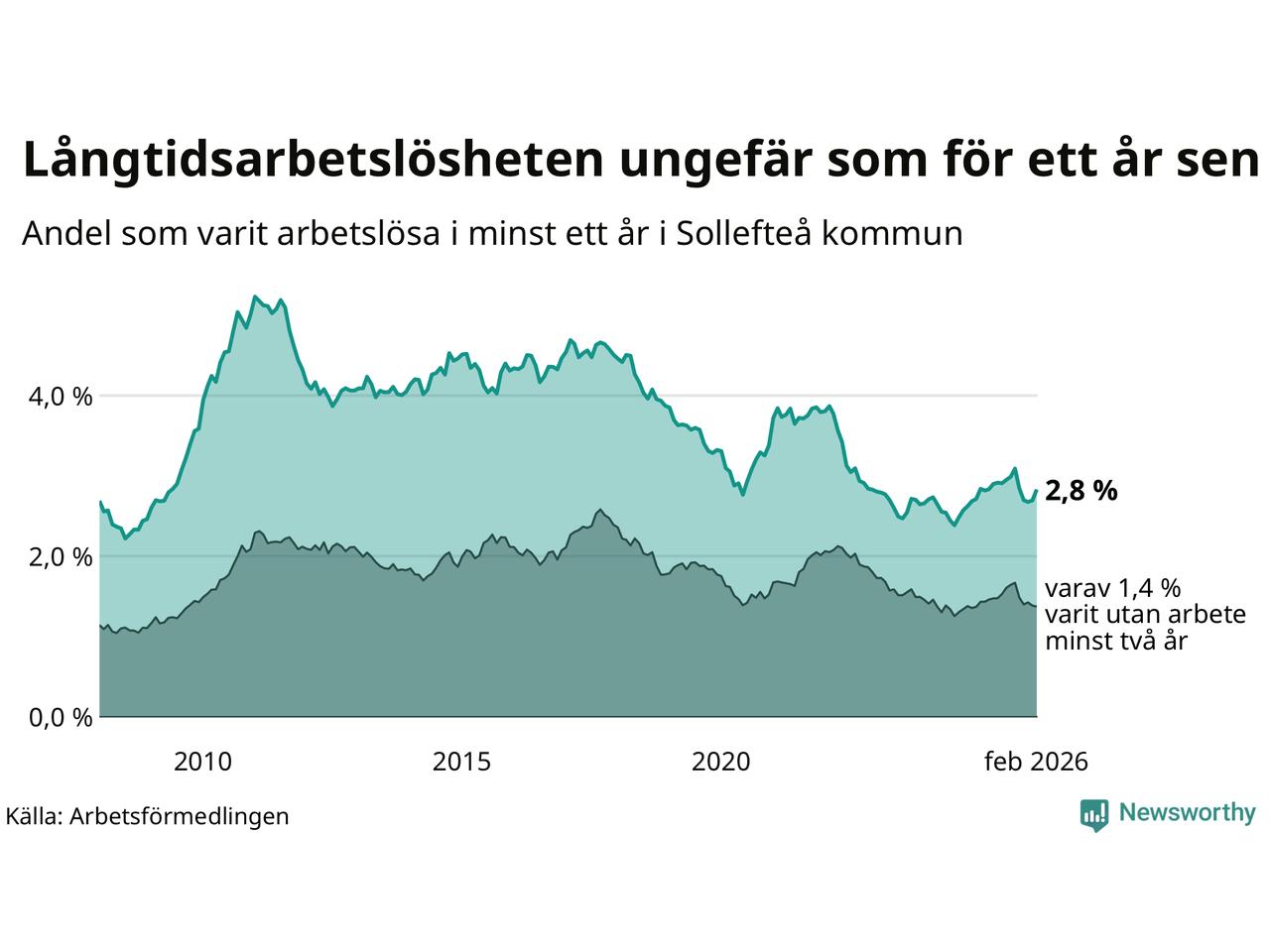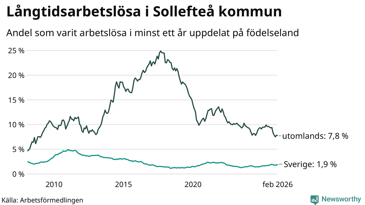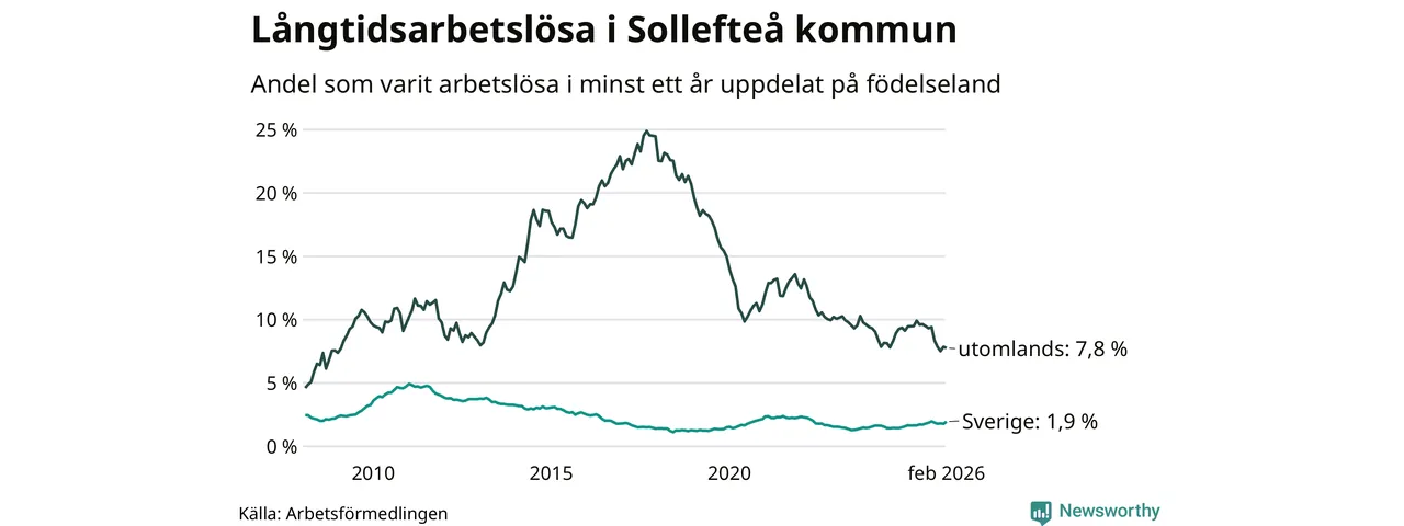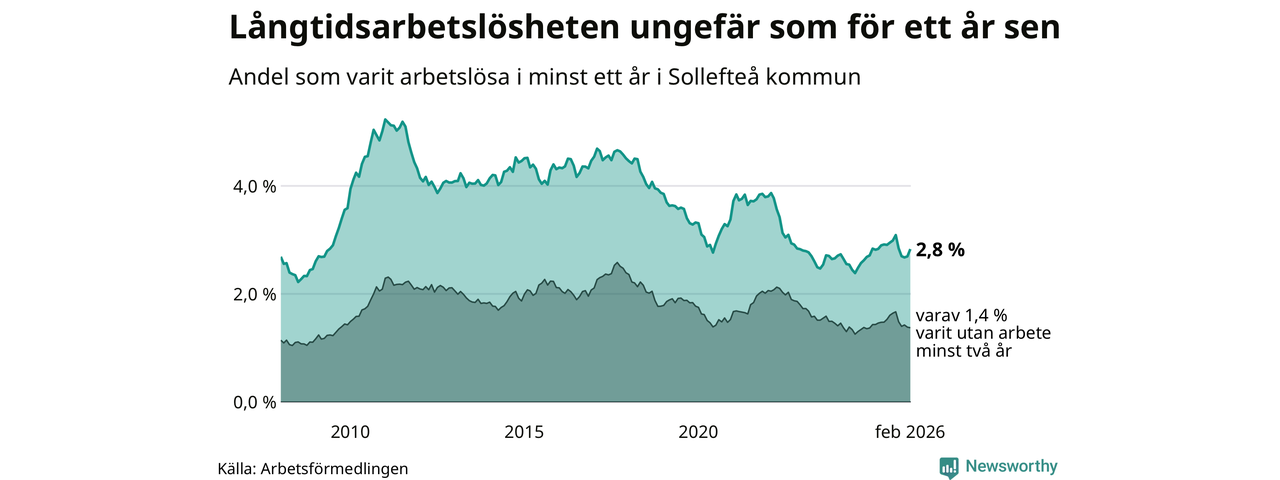 Långtidsarbetslöshet i Sollefteå i februari 2026