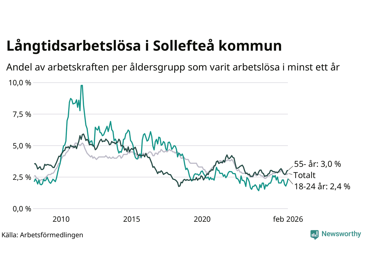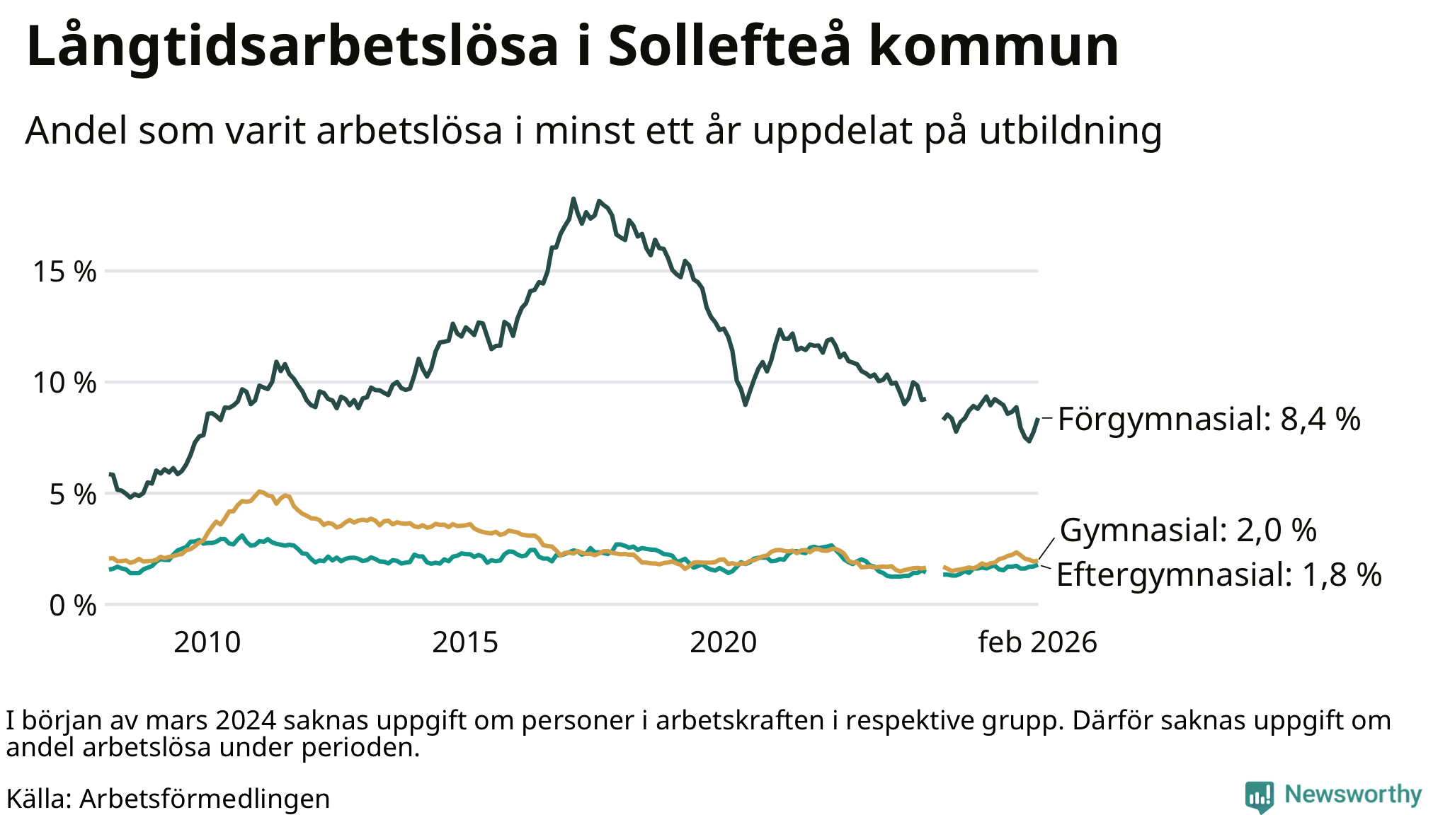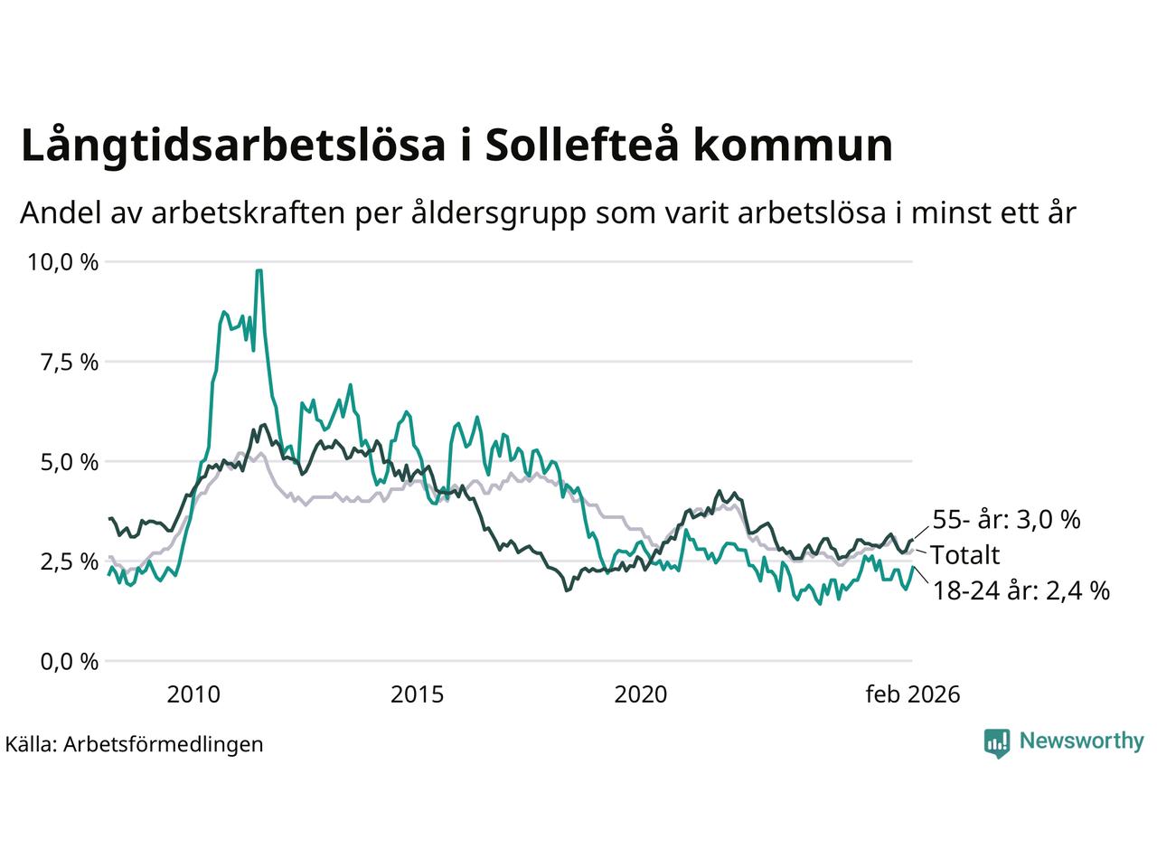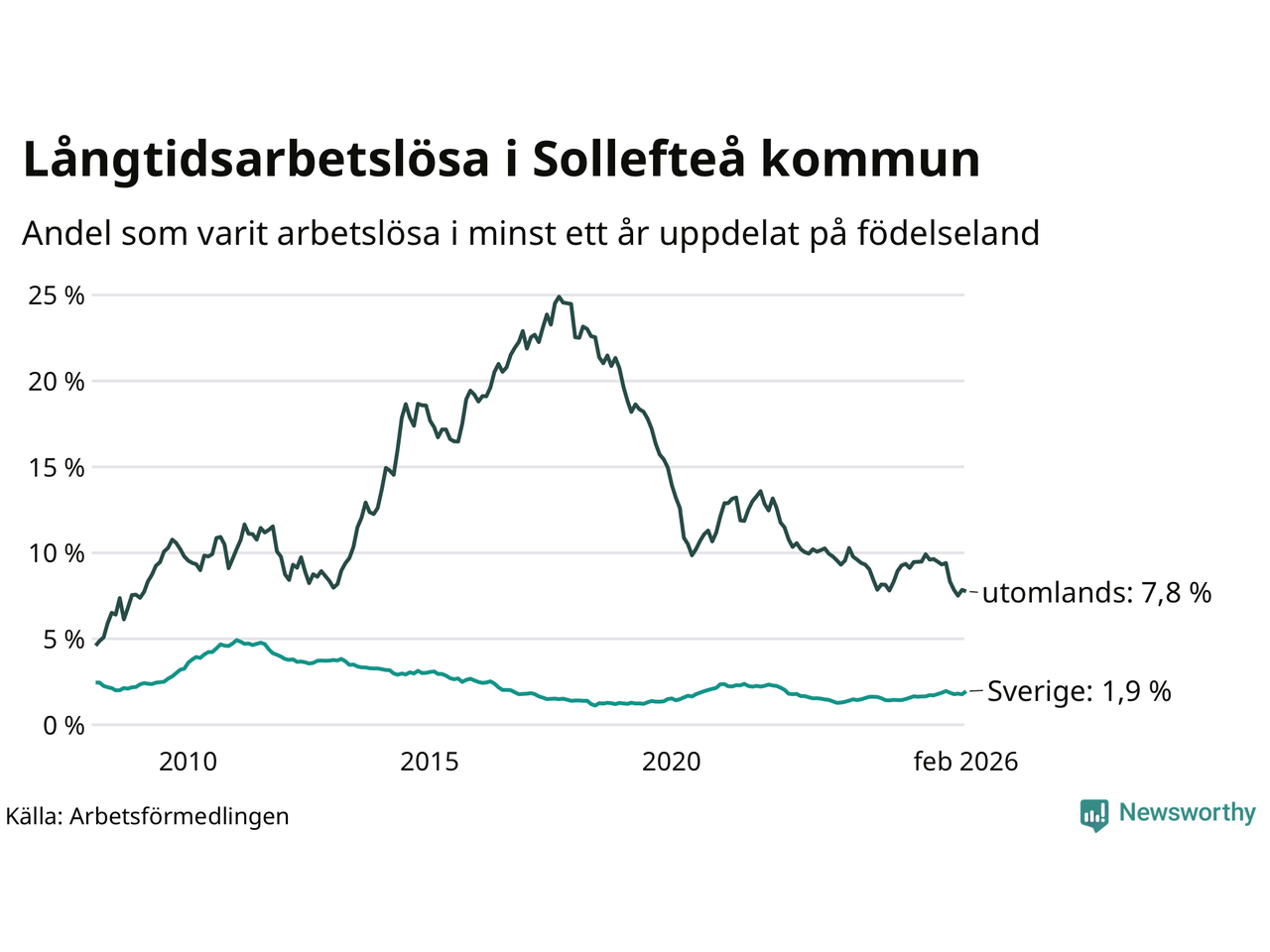 Långtidsarbetslöshet i Sollefteå i februari 2026