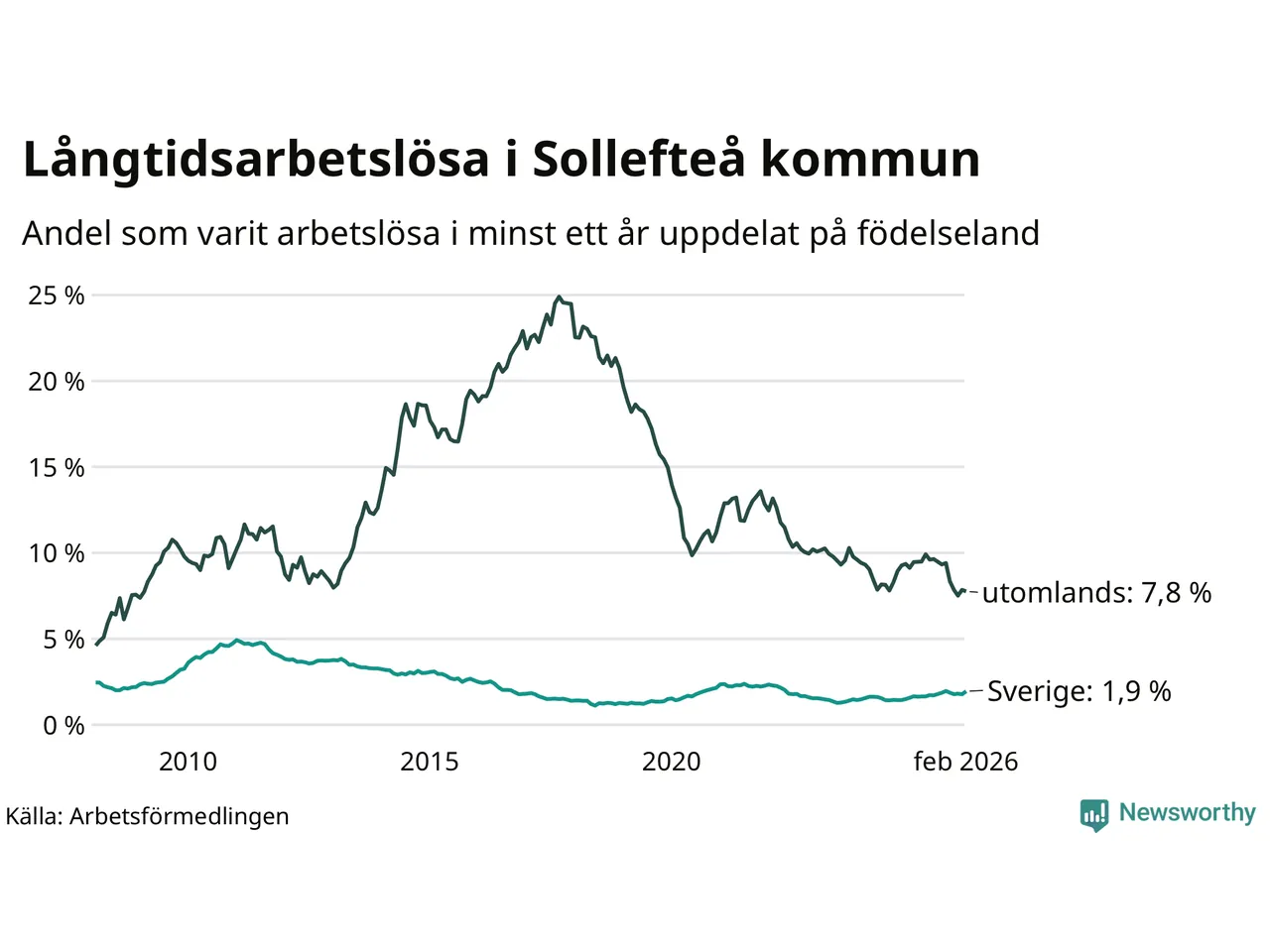 Graf: Andel arbetslösa uppdelat på födelseland i Sollefteå