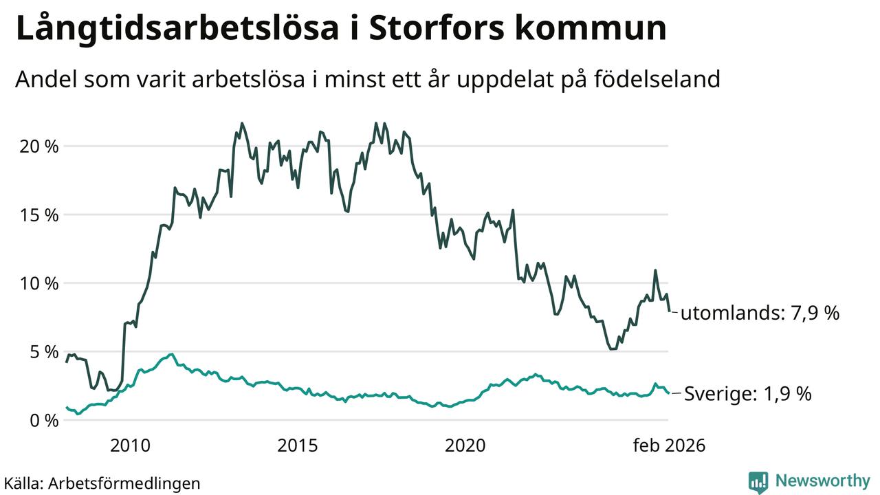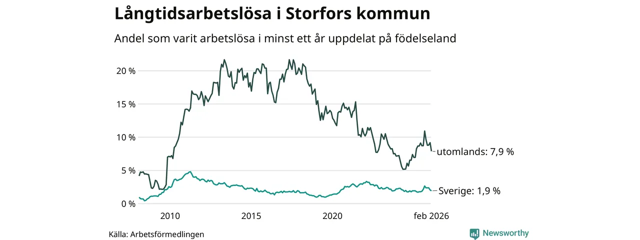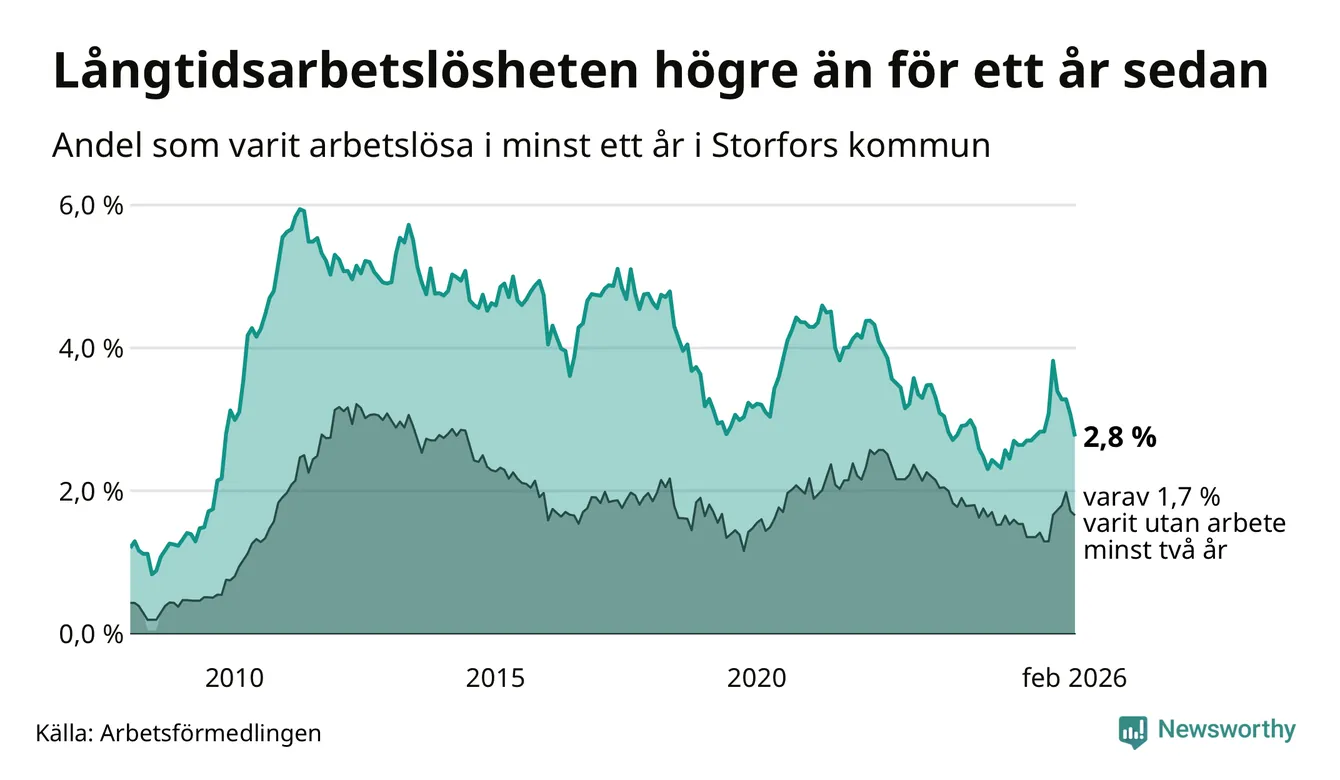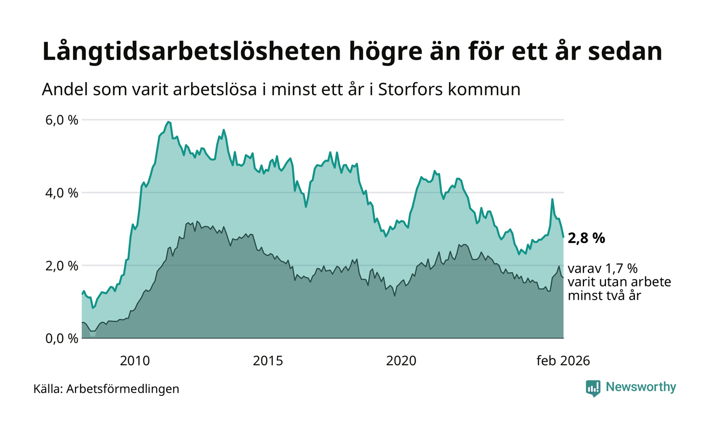 Långtidsarbetslöshet i Storfors i februari 2026