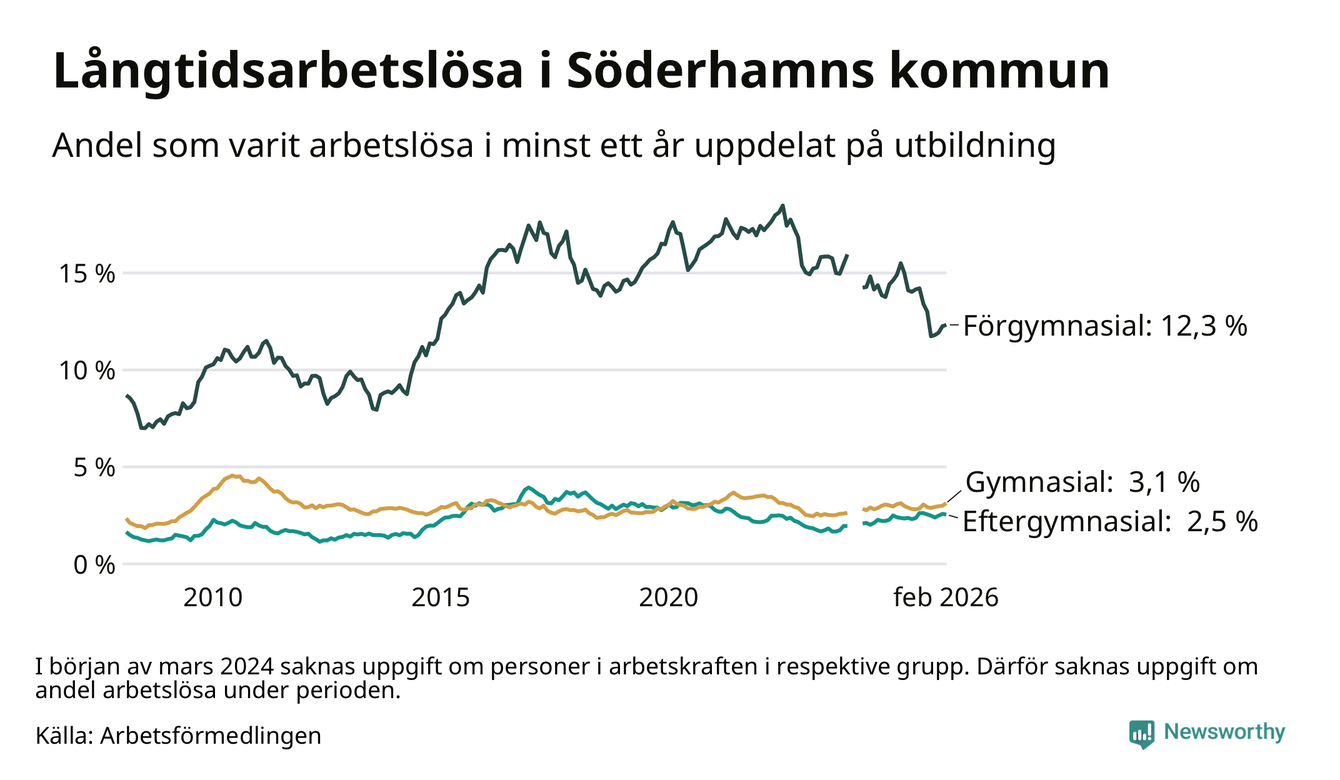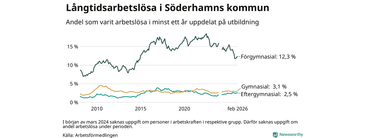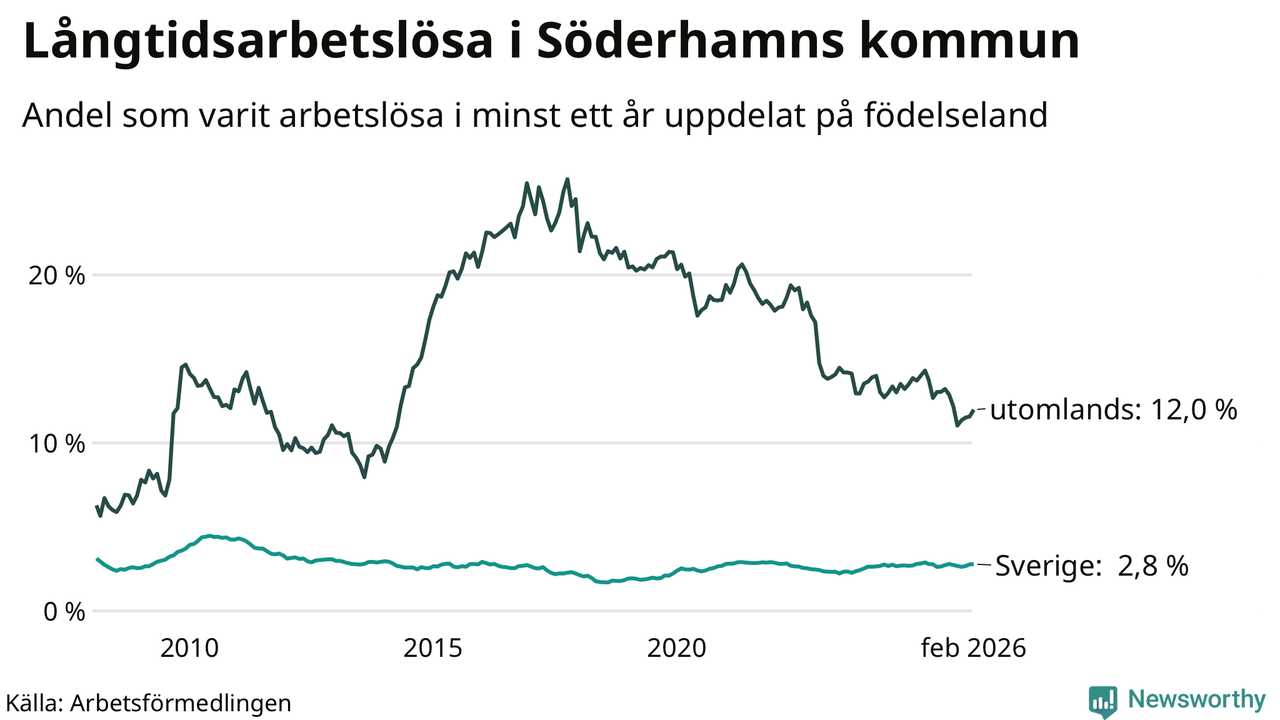 Långtidsarbetslöshet i Söderhamn i februari 2026
