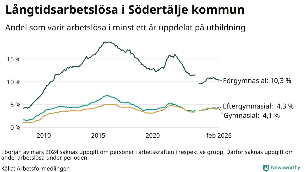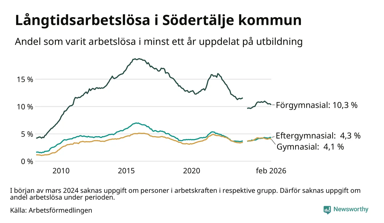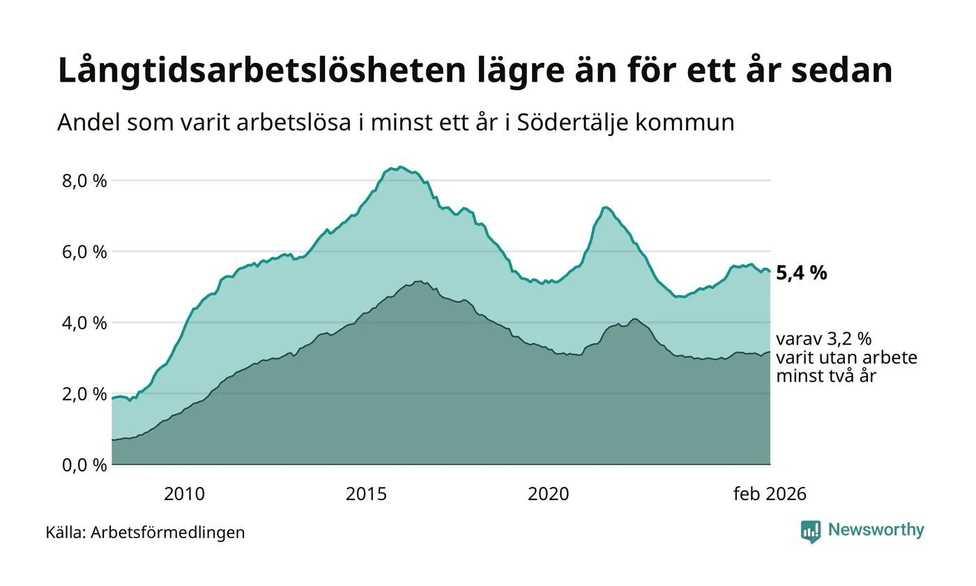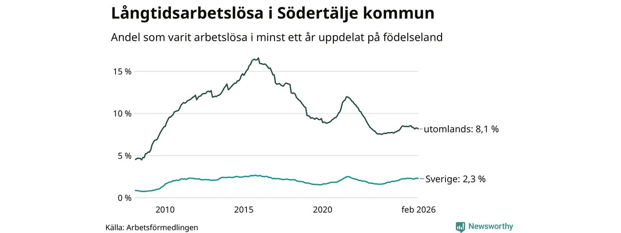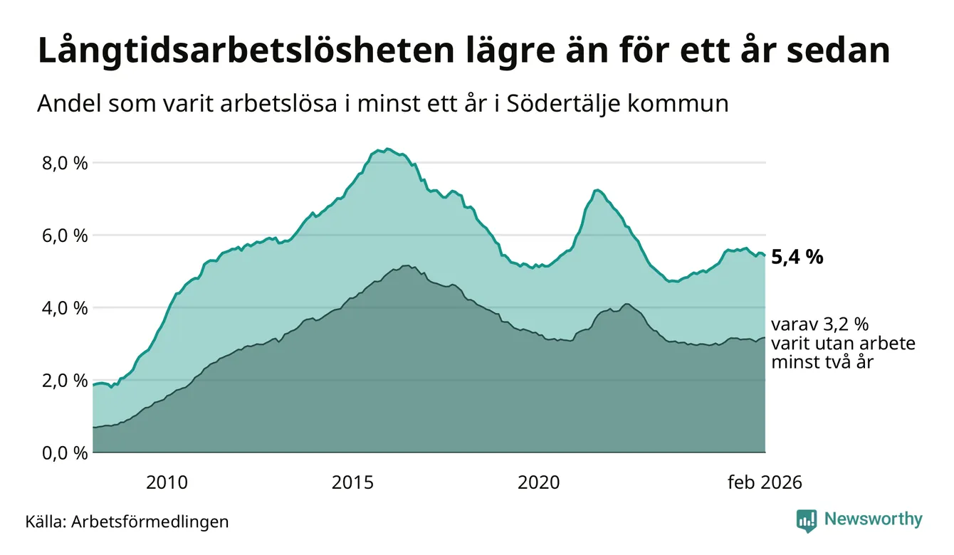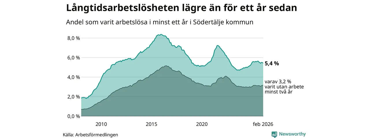 Långtidsarbetslöshet i Södertälje i februari 2026