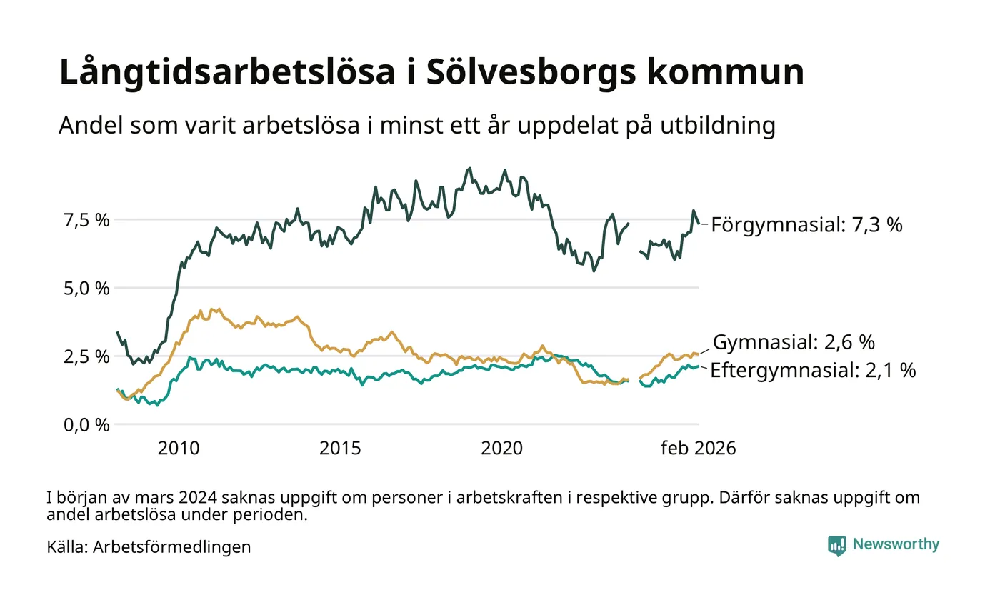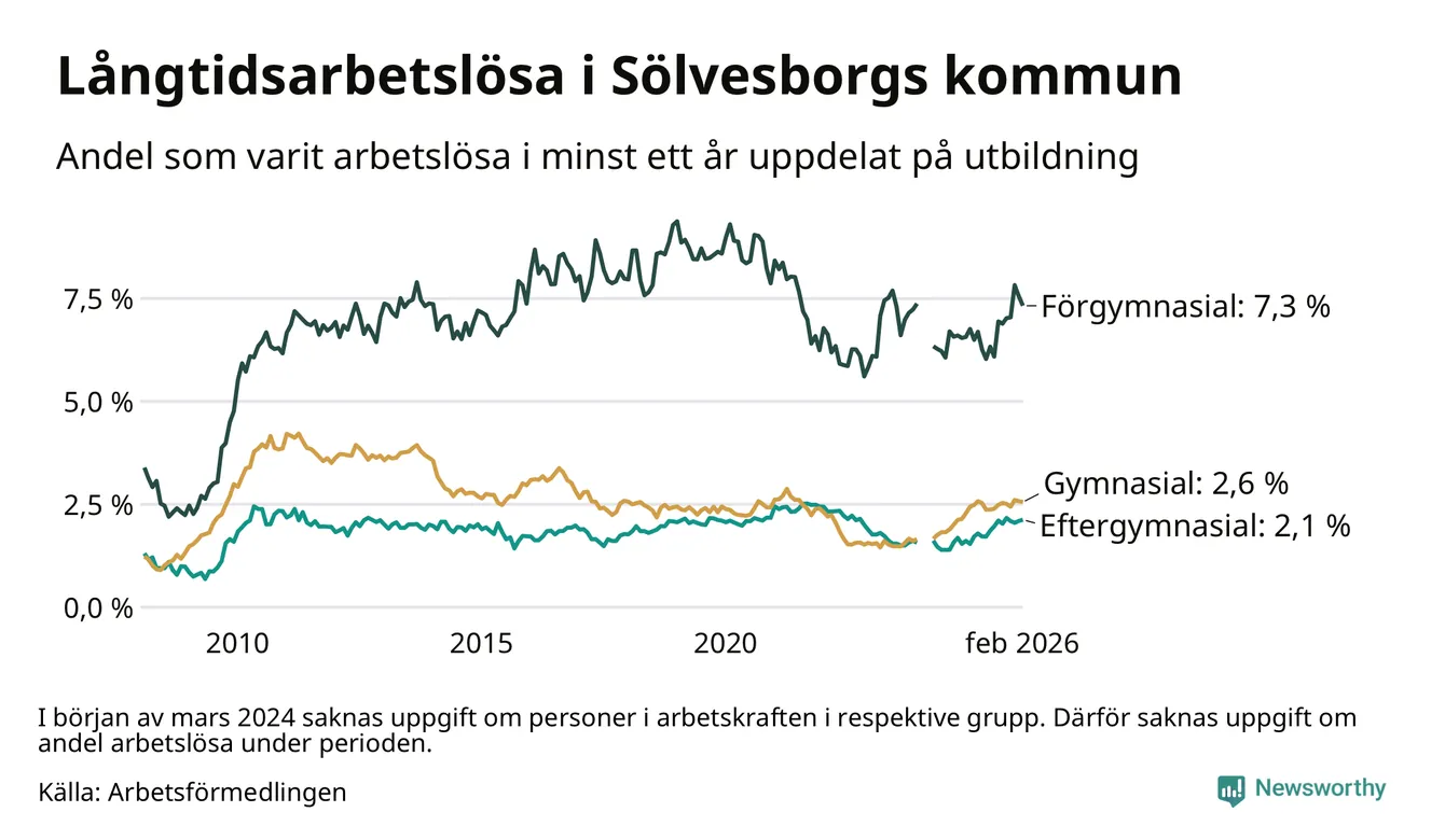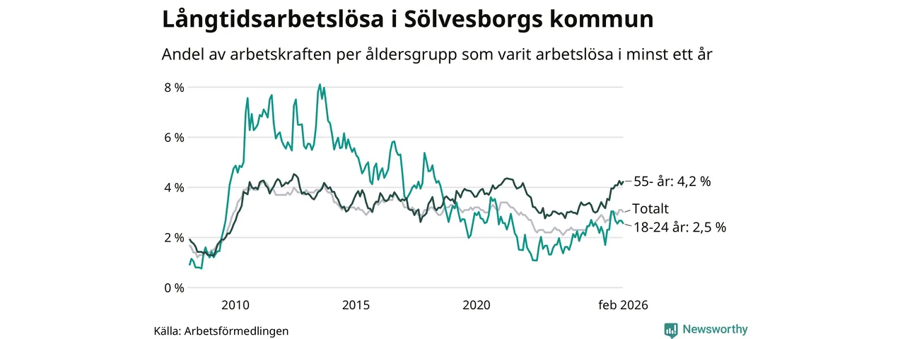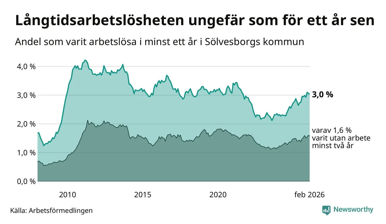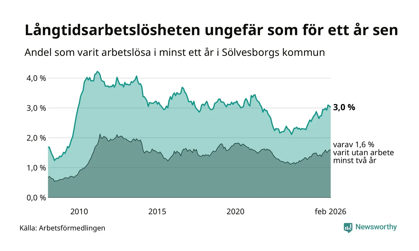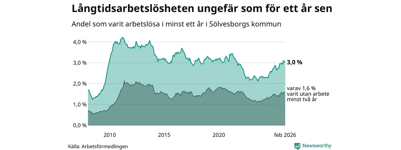 Långtidsarbetslöshet i Sölvesborg i februari 2026