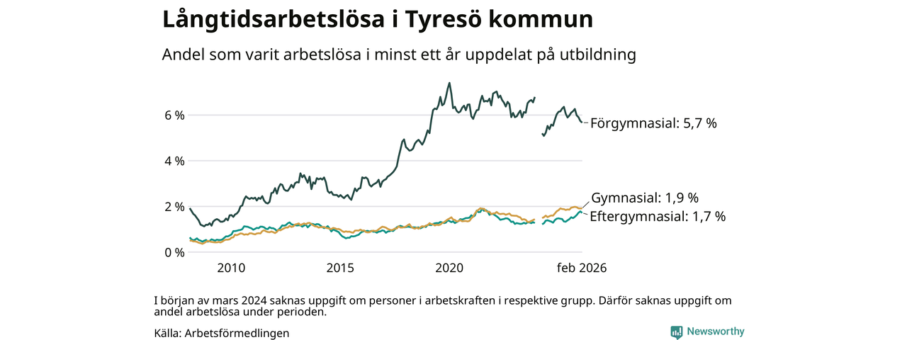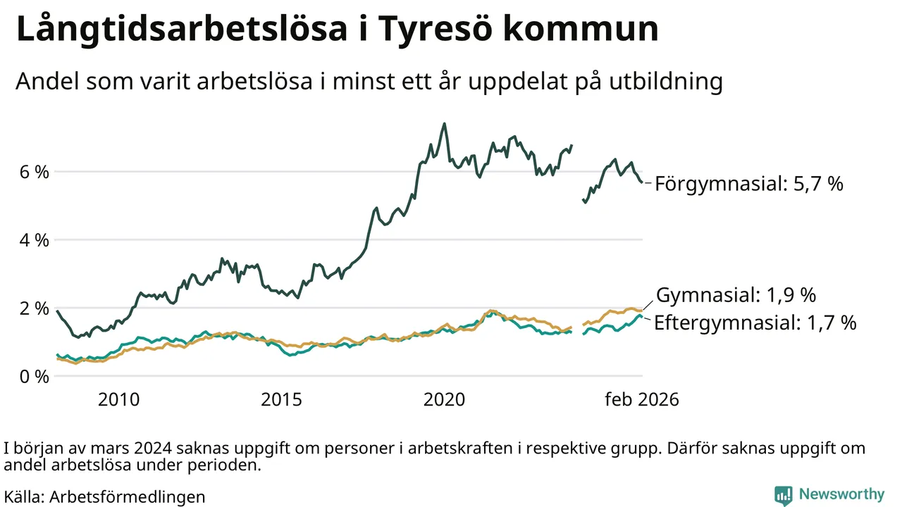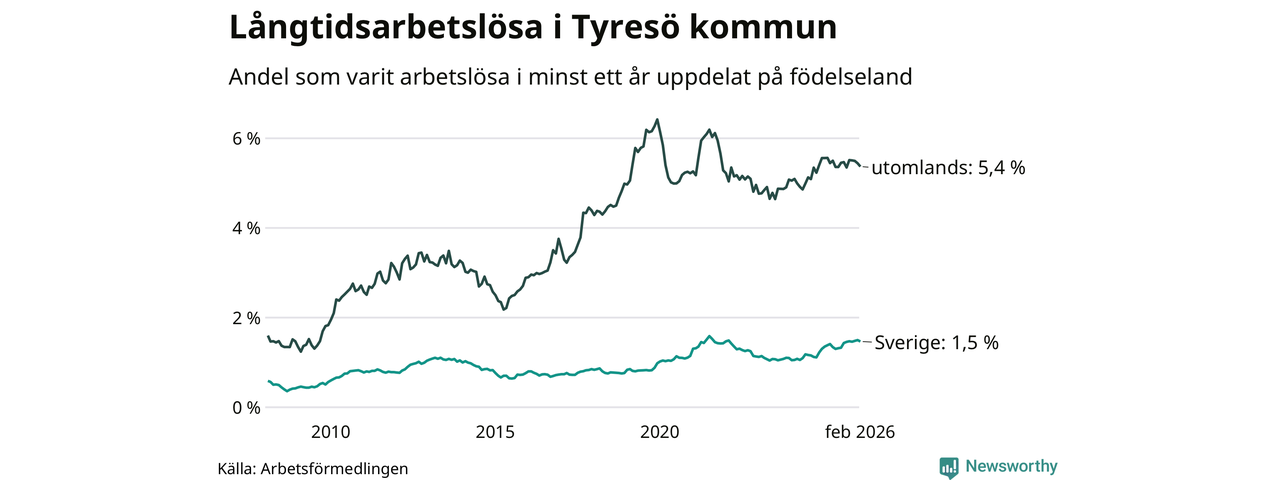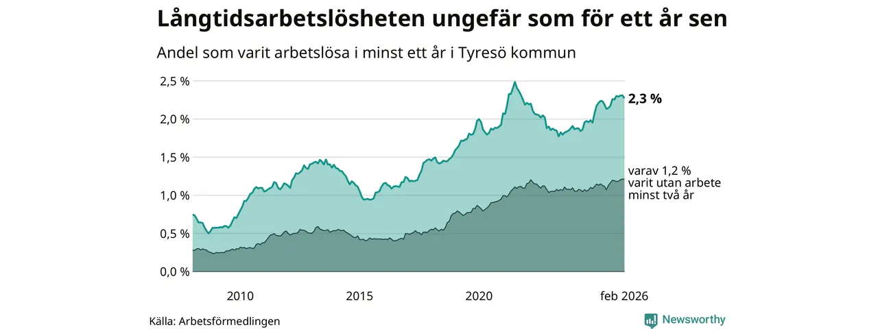 Långtidsarbetslöshet i Tyresö i februari 2026