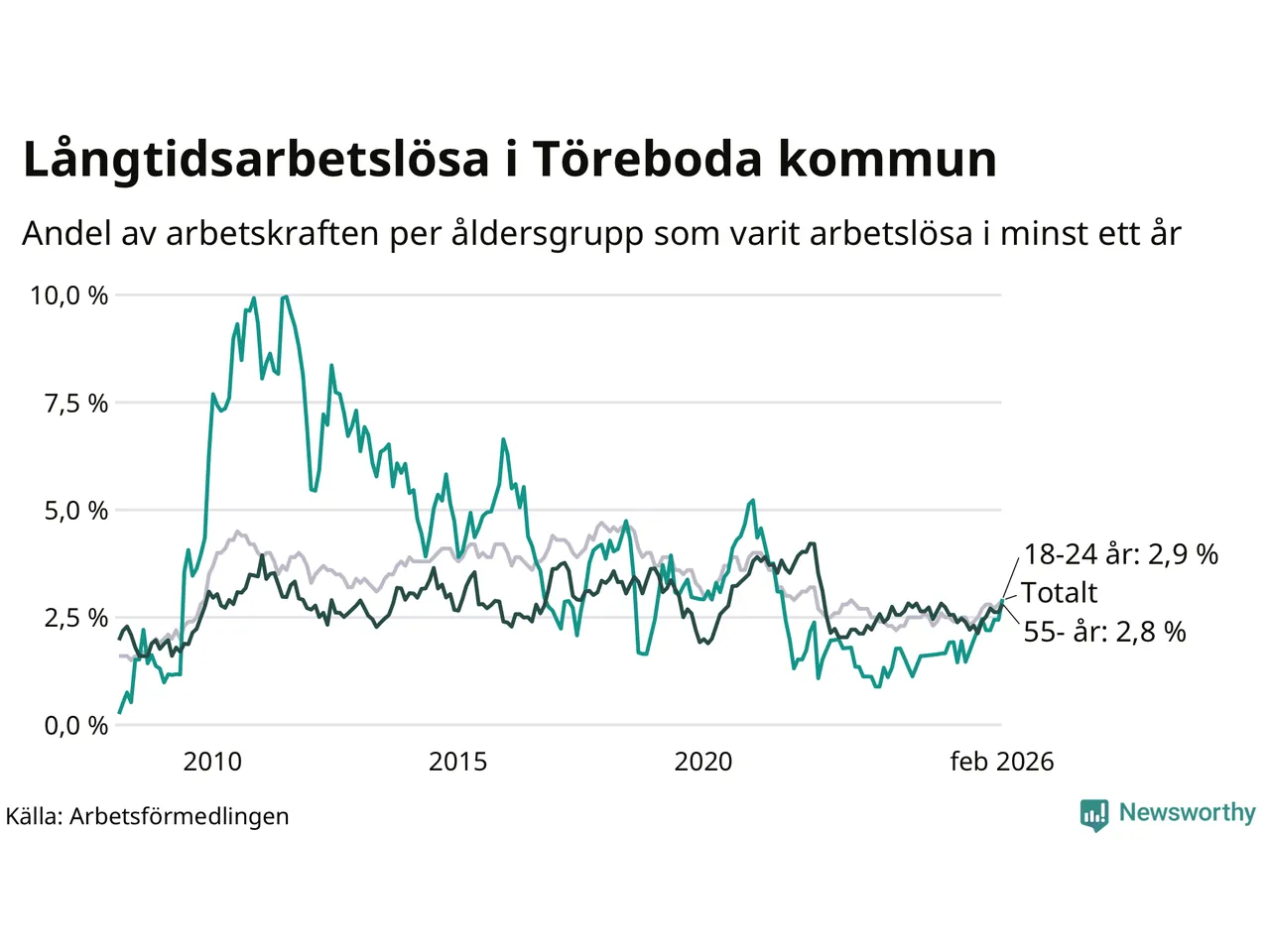 | Andel arbetslösa i minst ett år | 2,9 % | 2,5 % | 2,9 % |