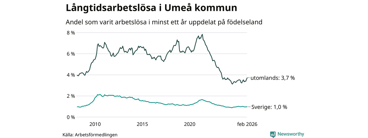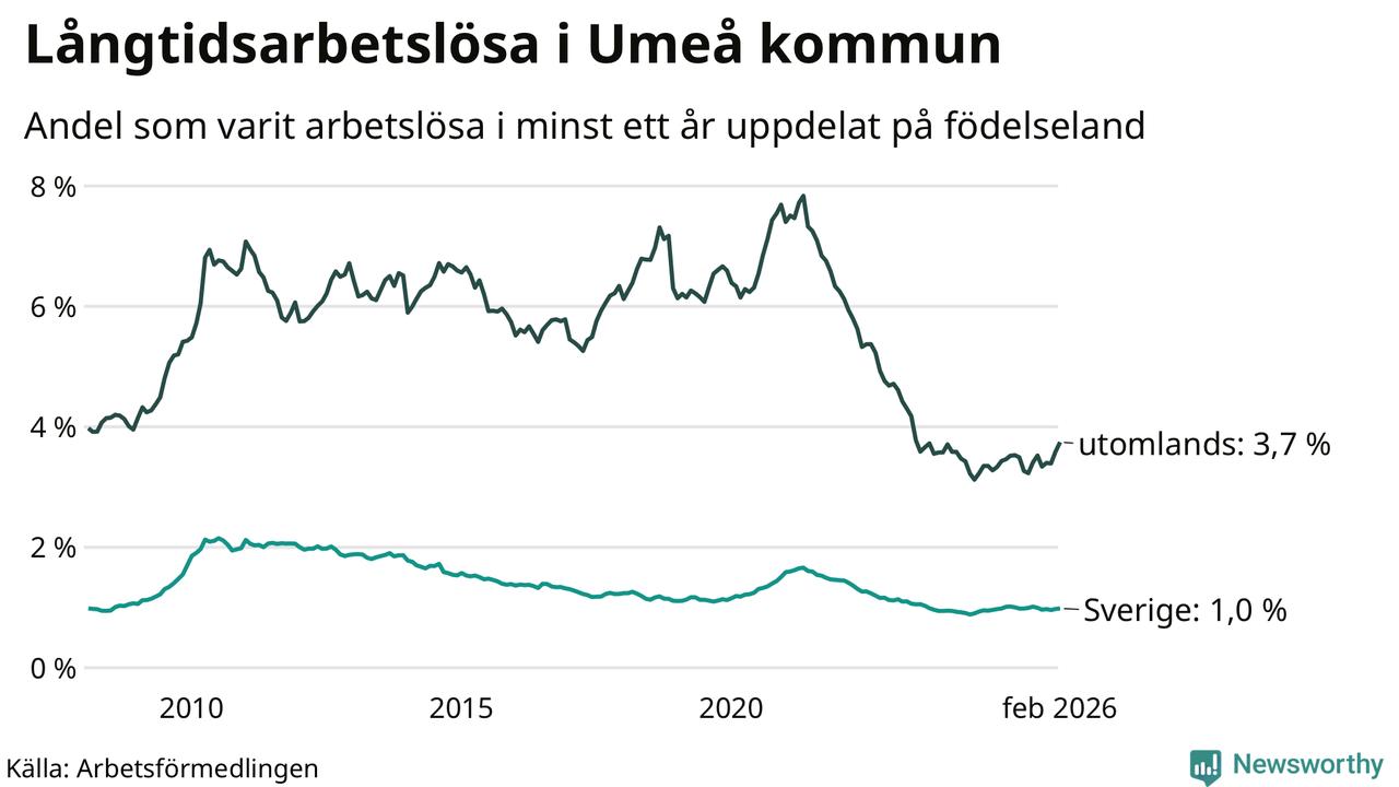 Långtidsarbetslöshet i Umeå i februari 2026