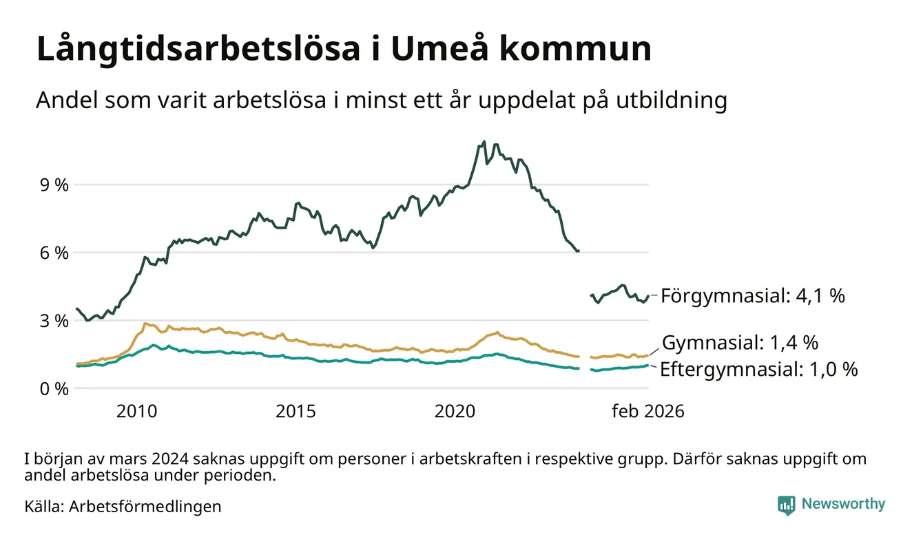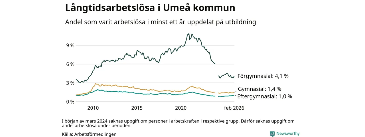 Så många är långtids­arbetslösa i Umeå