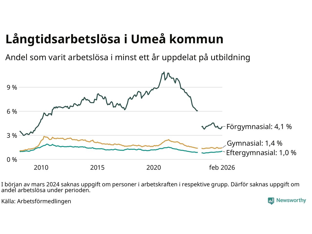 Andel arbetslösa i minst ett år1,4 %1,4 %2,9 %
