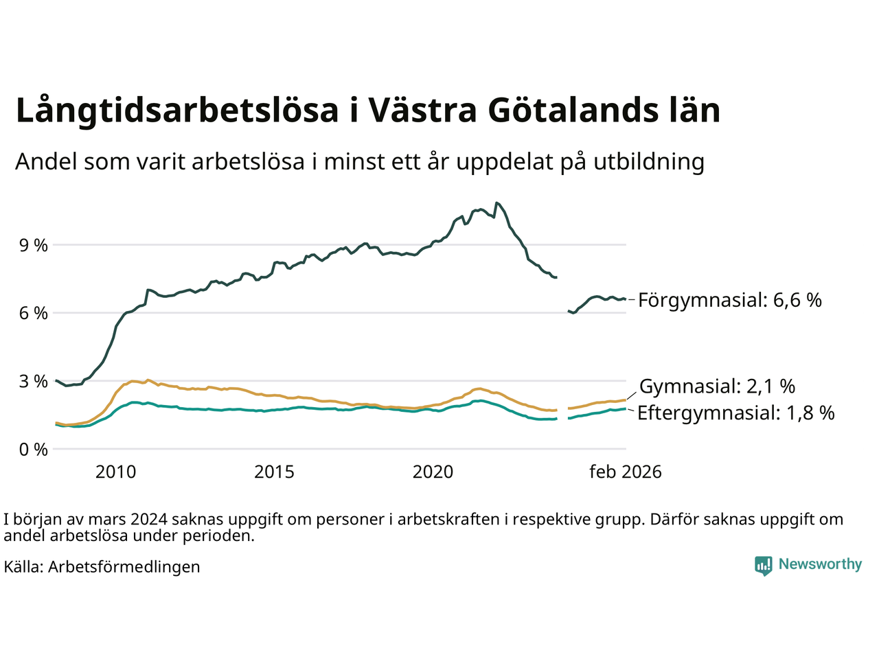 | Andel arbetslösa i minst ett år | 2,5 % | 2,9 % |
