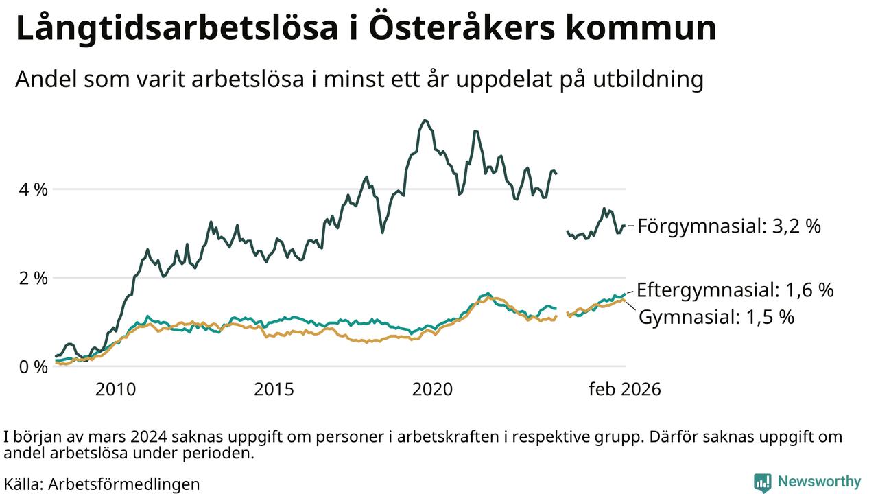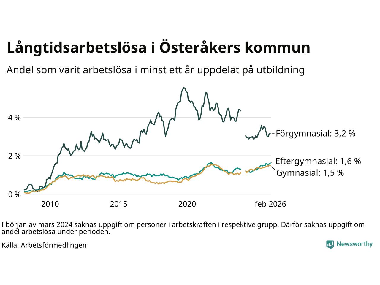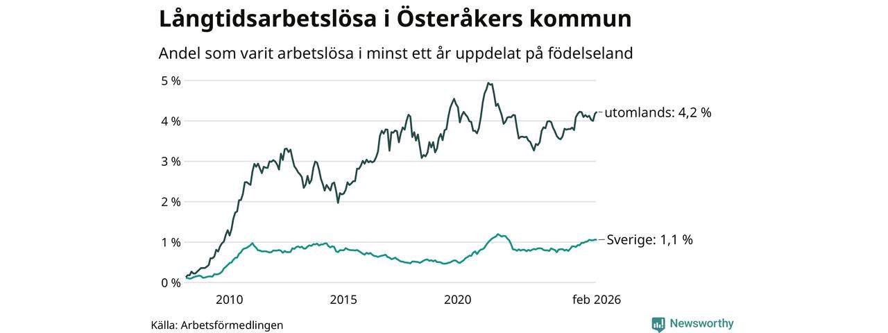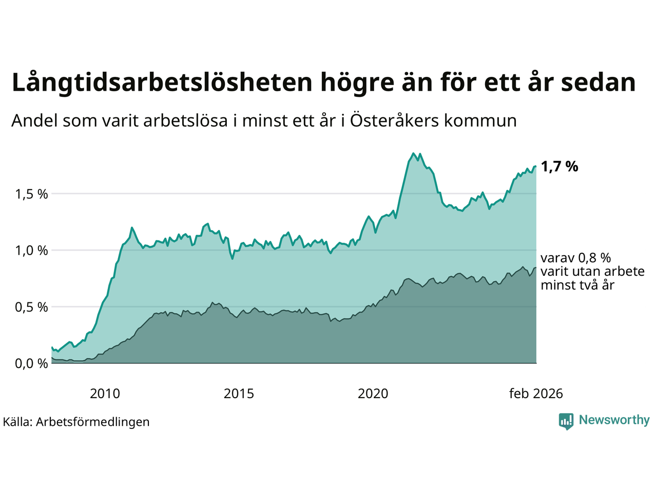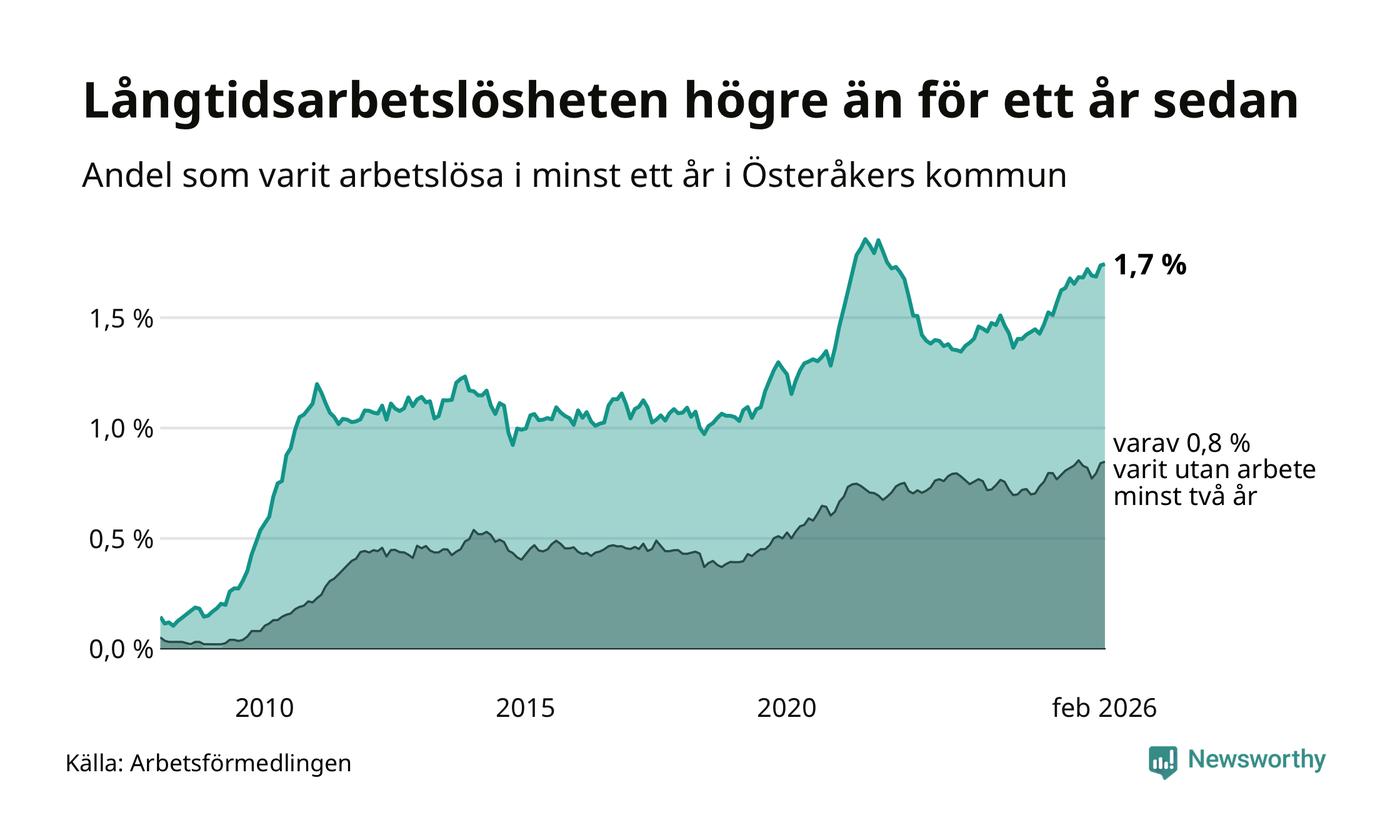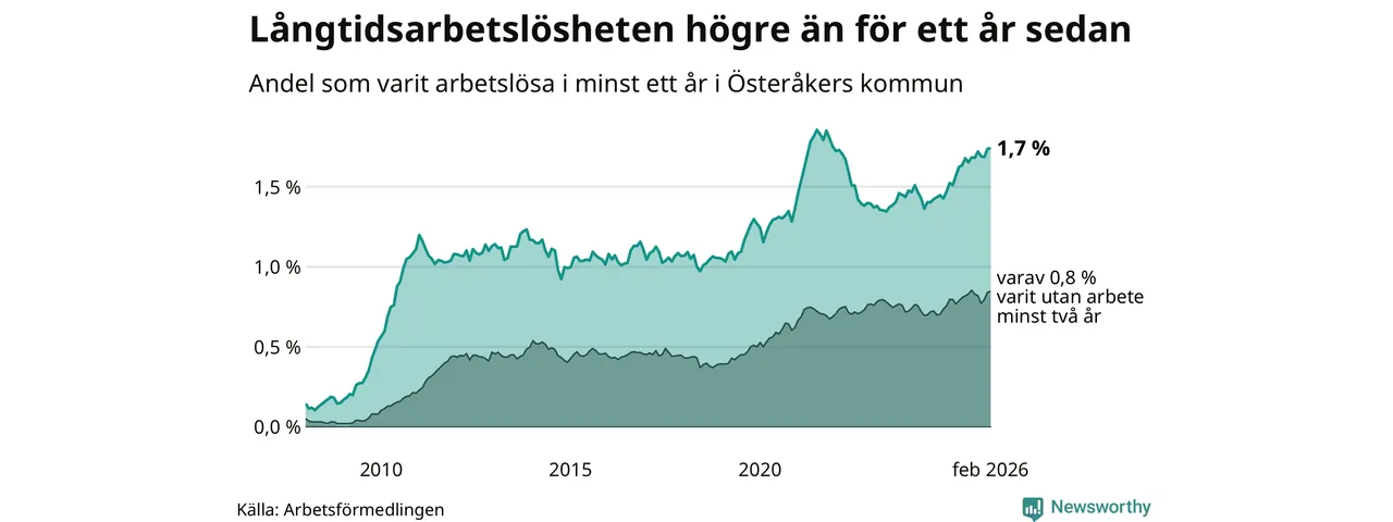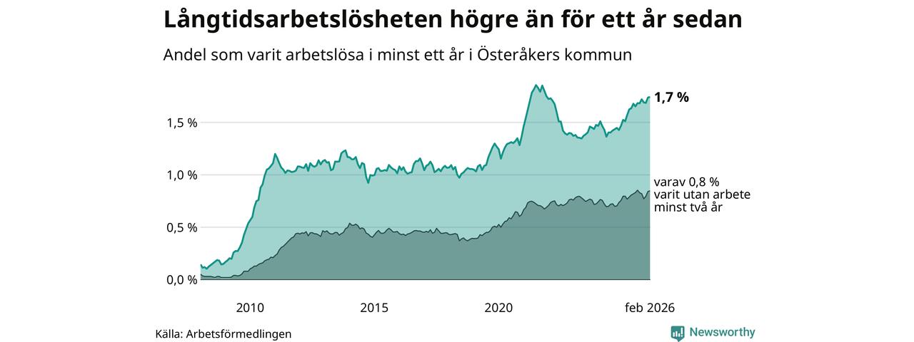 Österåker: Högsta långtids­arbets­lösheten sedan december 2021