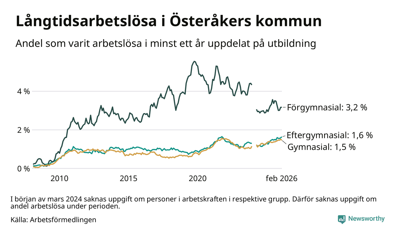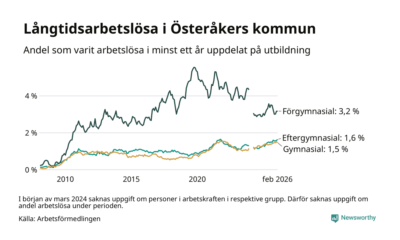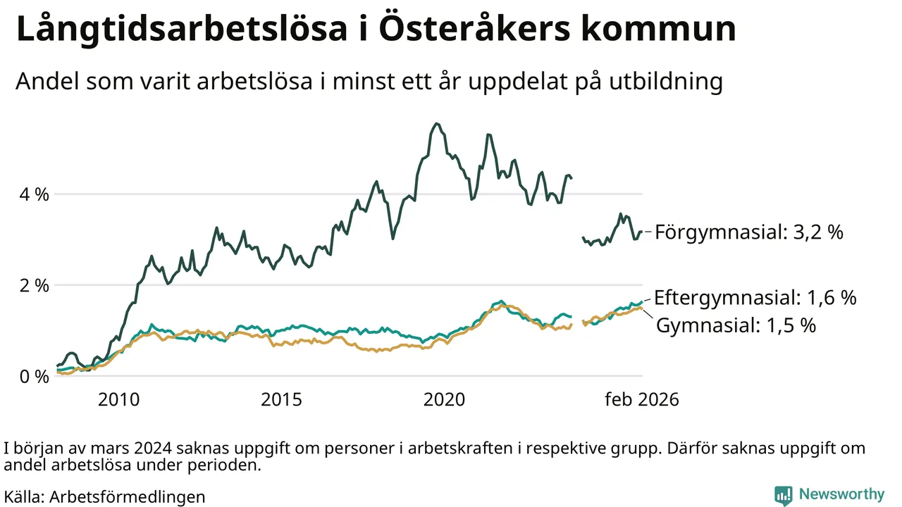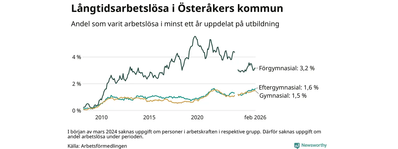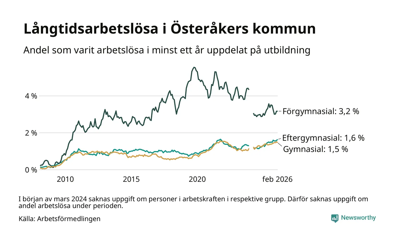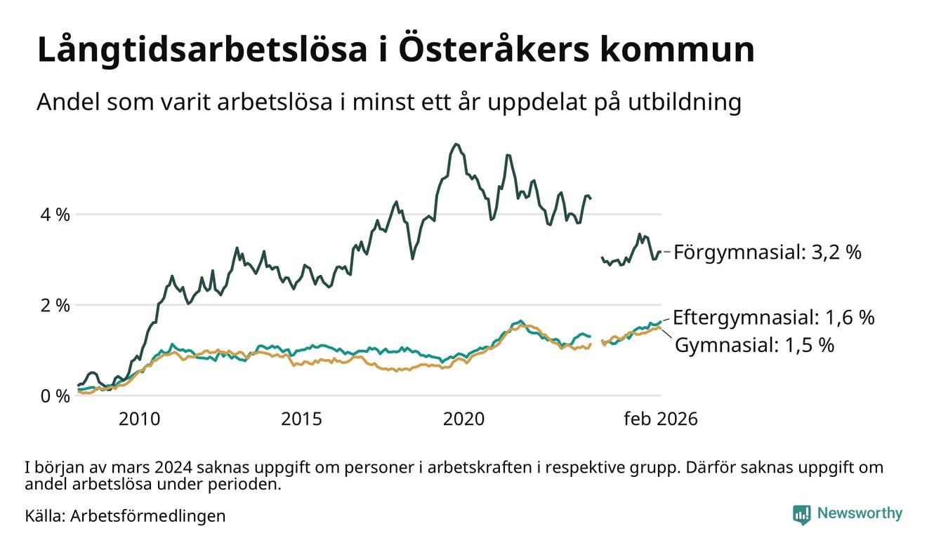 Österåker: Högsta långtids­arbets­lösheten sedan december 2021