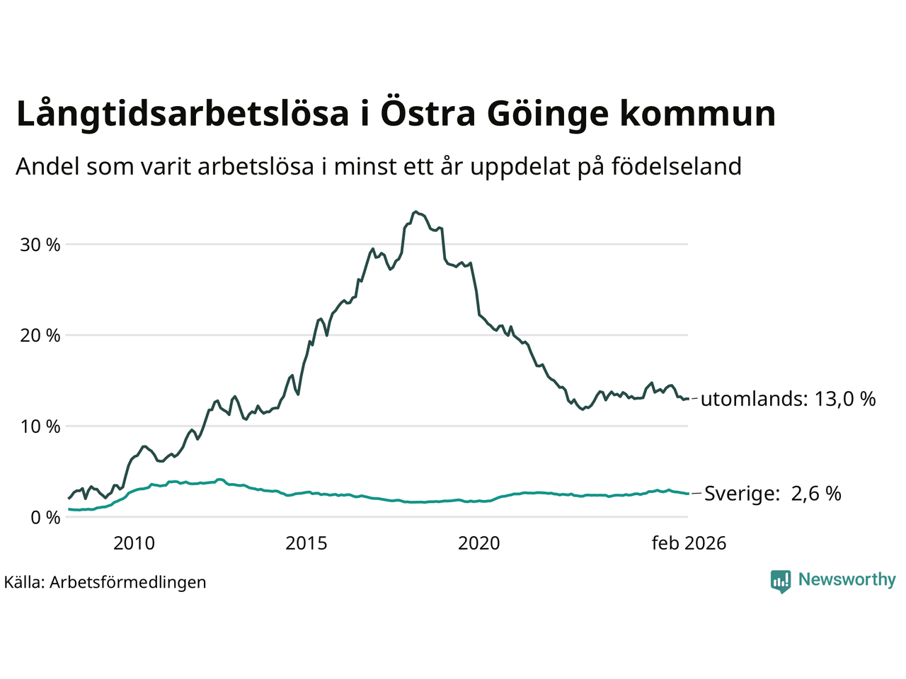 | Bland födda utomlands | 13,0 % | 8,8 % | 7,0 % |