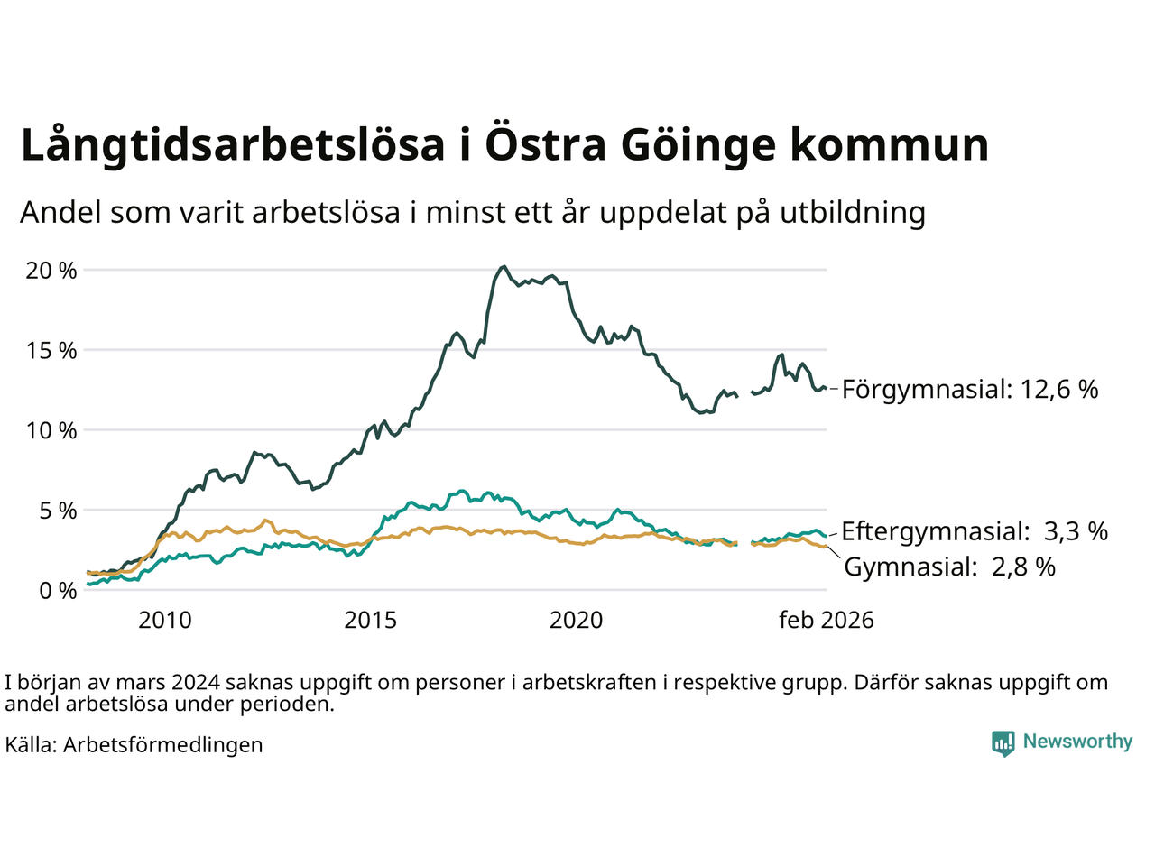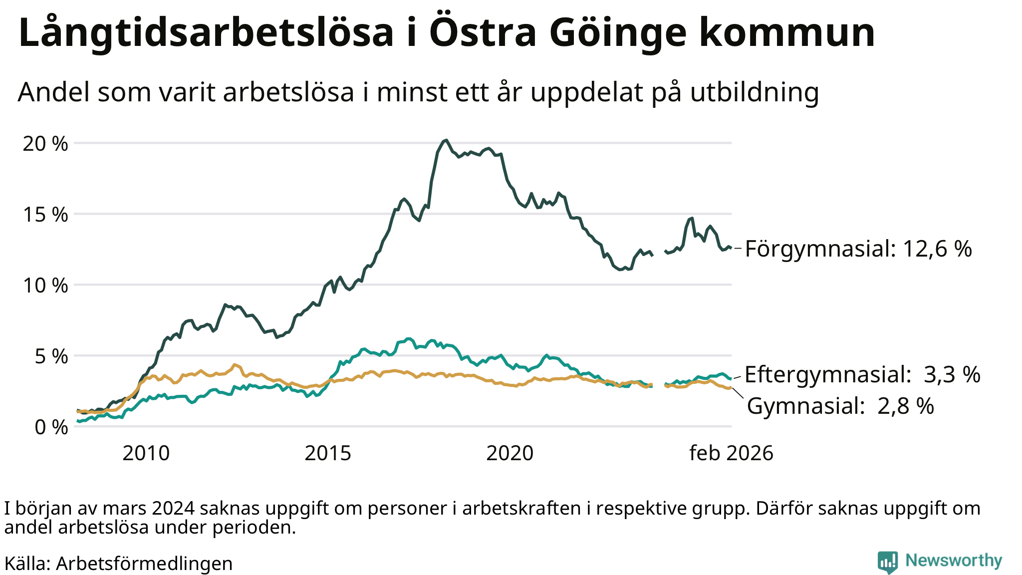 | Bland dem med eftergymnasial utbildning | 3,3 % | 2,5 % | 1,9 % |