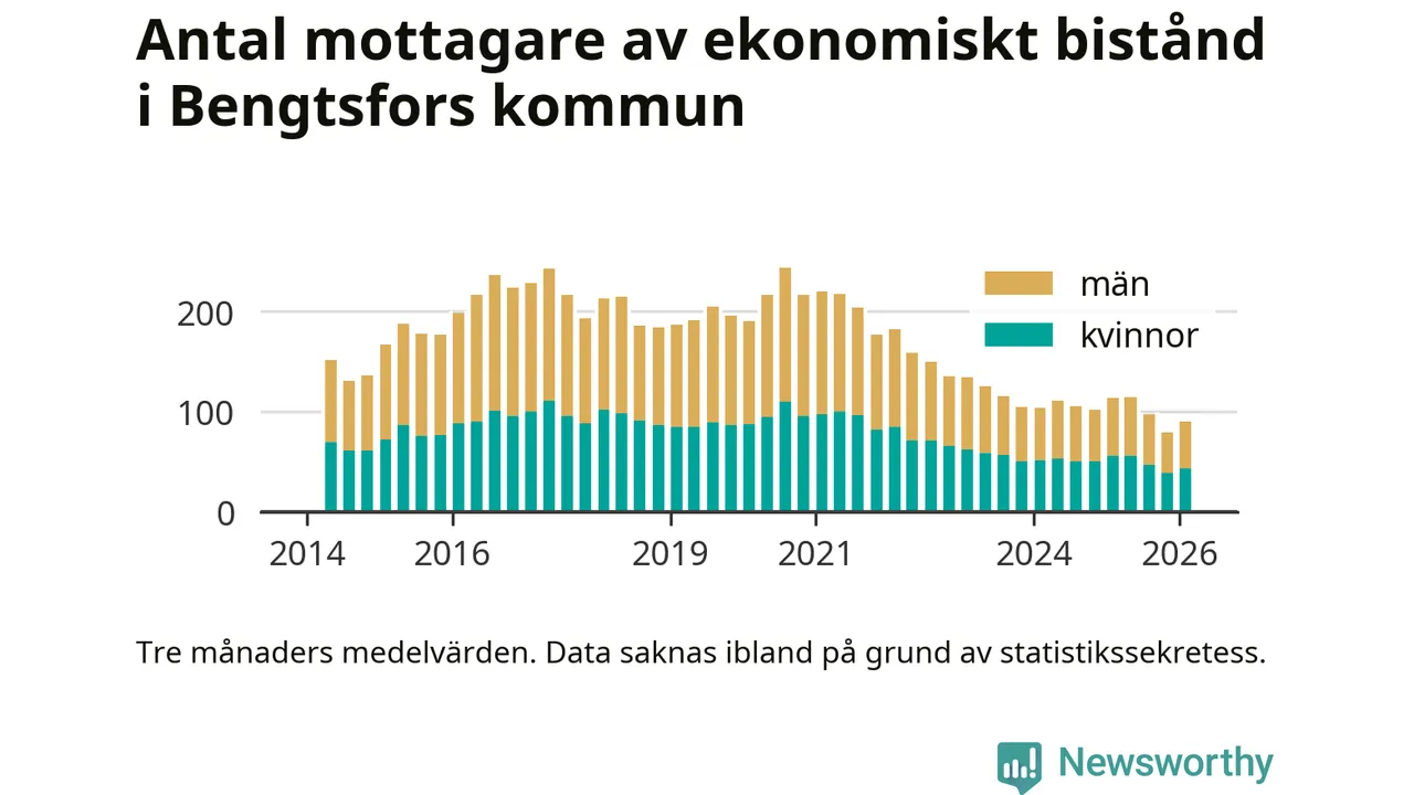 Andelen invånare med ekonomiskt bistånd i Bengtsfors kommun var lägre under vintern jämfört med motsvarande period året innan. Det visar den senaste, preliminära statistiken från Socialstyrelsen.