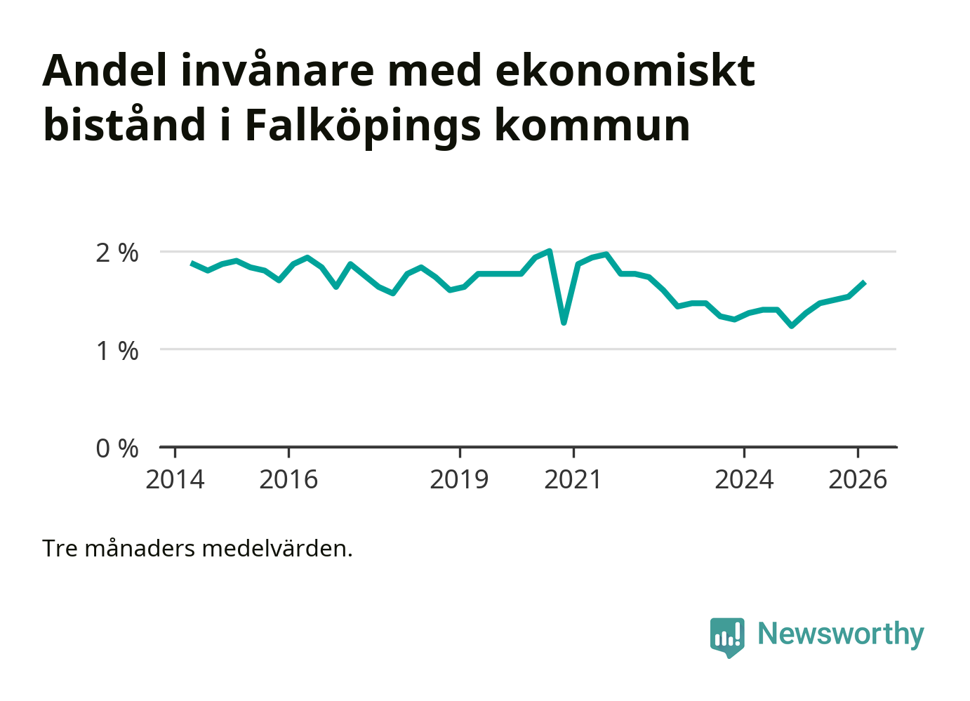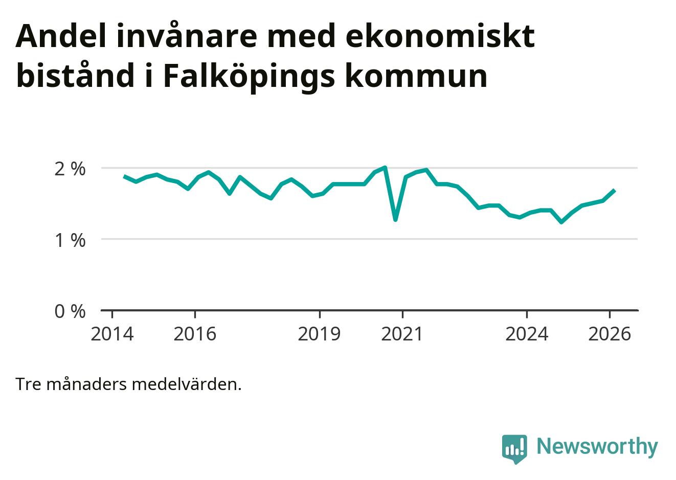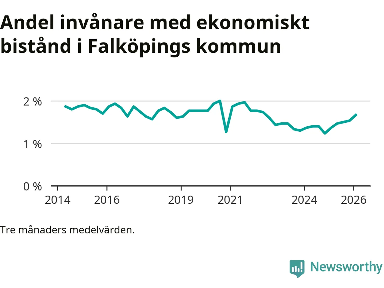 Vinterns 1,7 procent är den högsta andelen biståndstagare i kommunen sedan våren 2022.