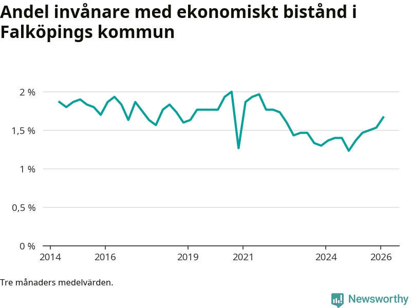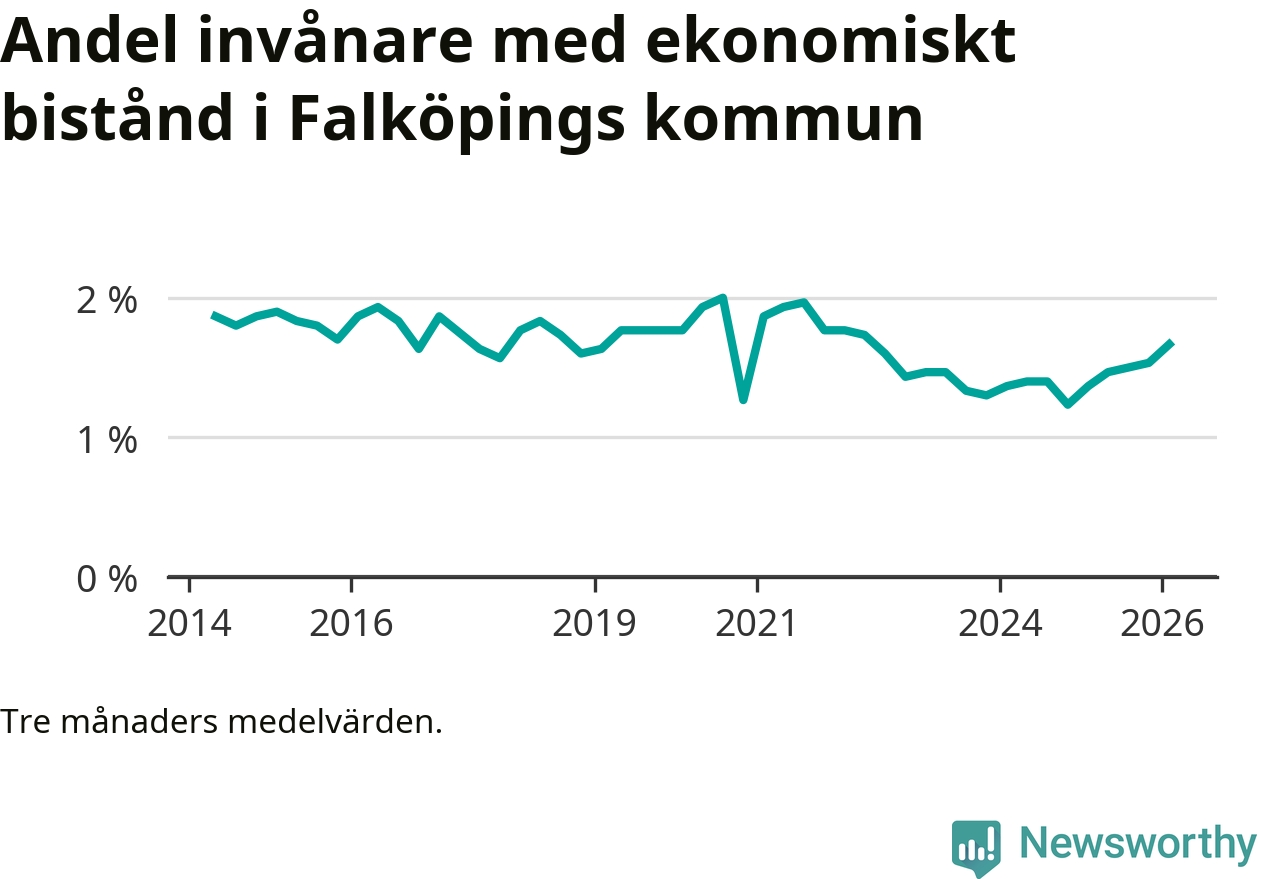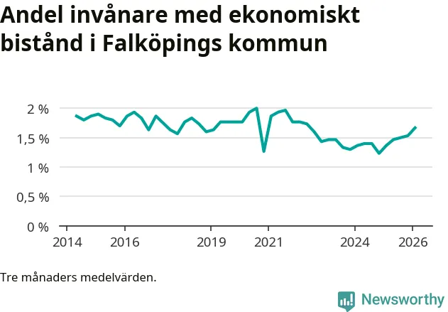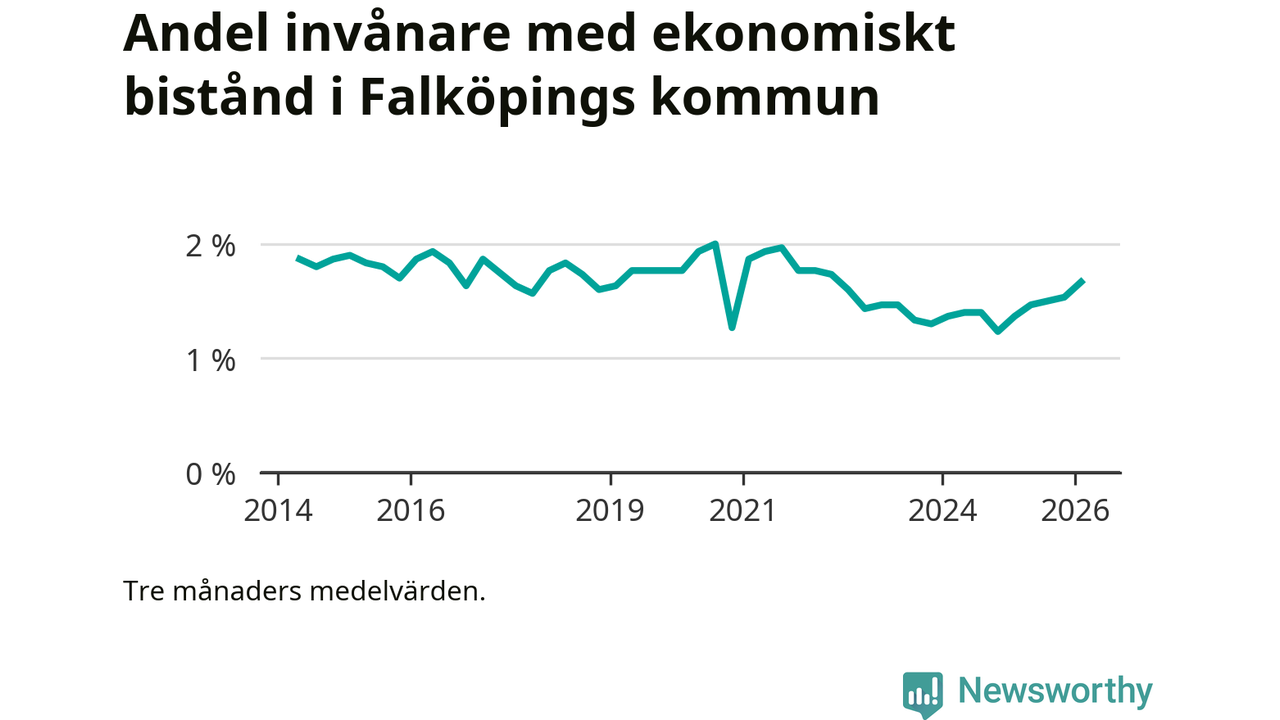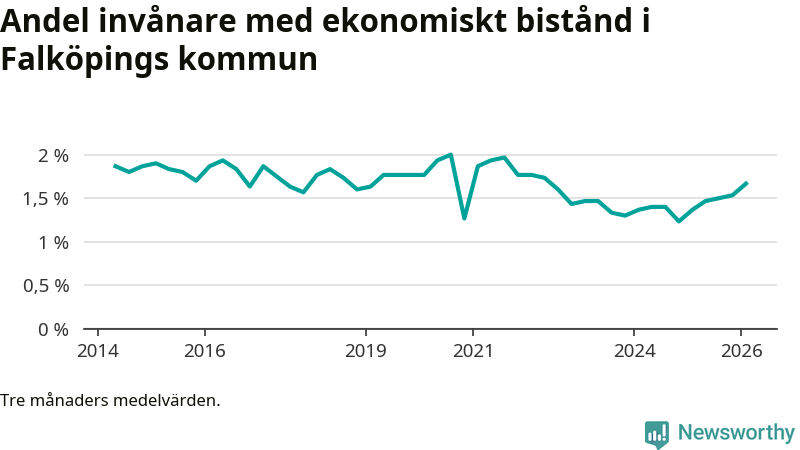 Vinterns 1,7 procent är den högsta andelen biståndstagare i kommunen sedan våren 2022.