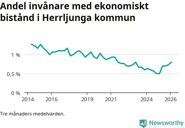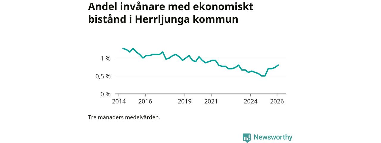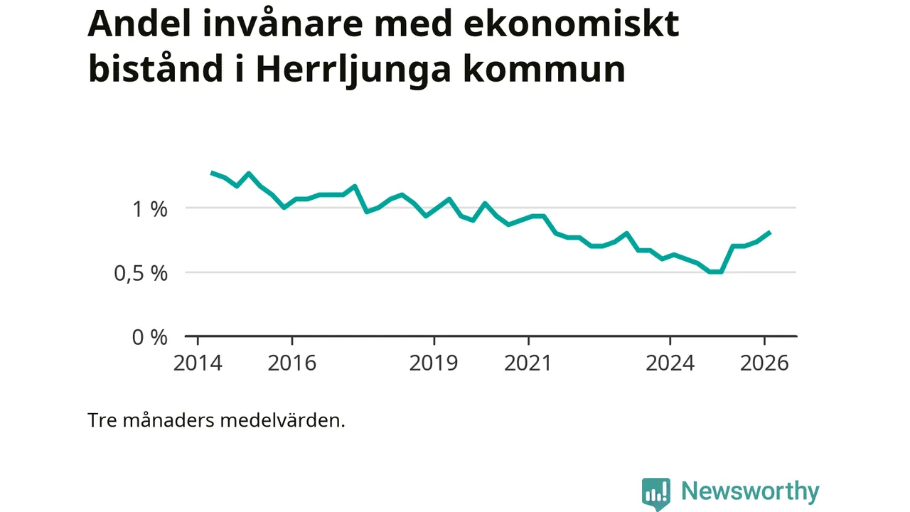 Andelen invånare med ekonomiskt bistånd i Herrljunga kommun var högre under vintern jämfört med motsvarande period året innan. Det visar den senaste, preliminära statistiken från Socialstyrelsen.