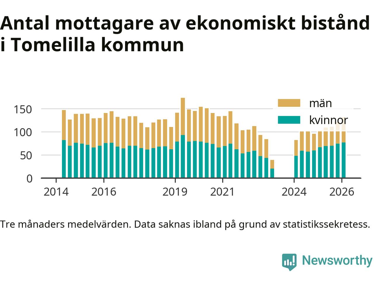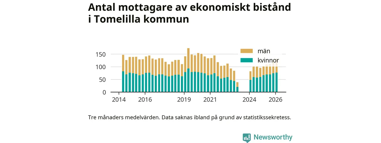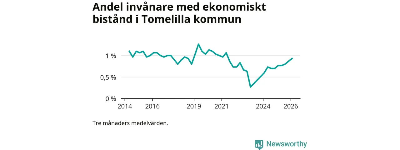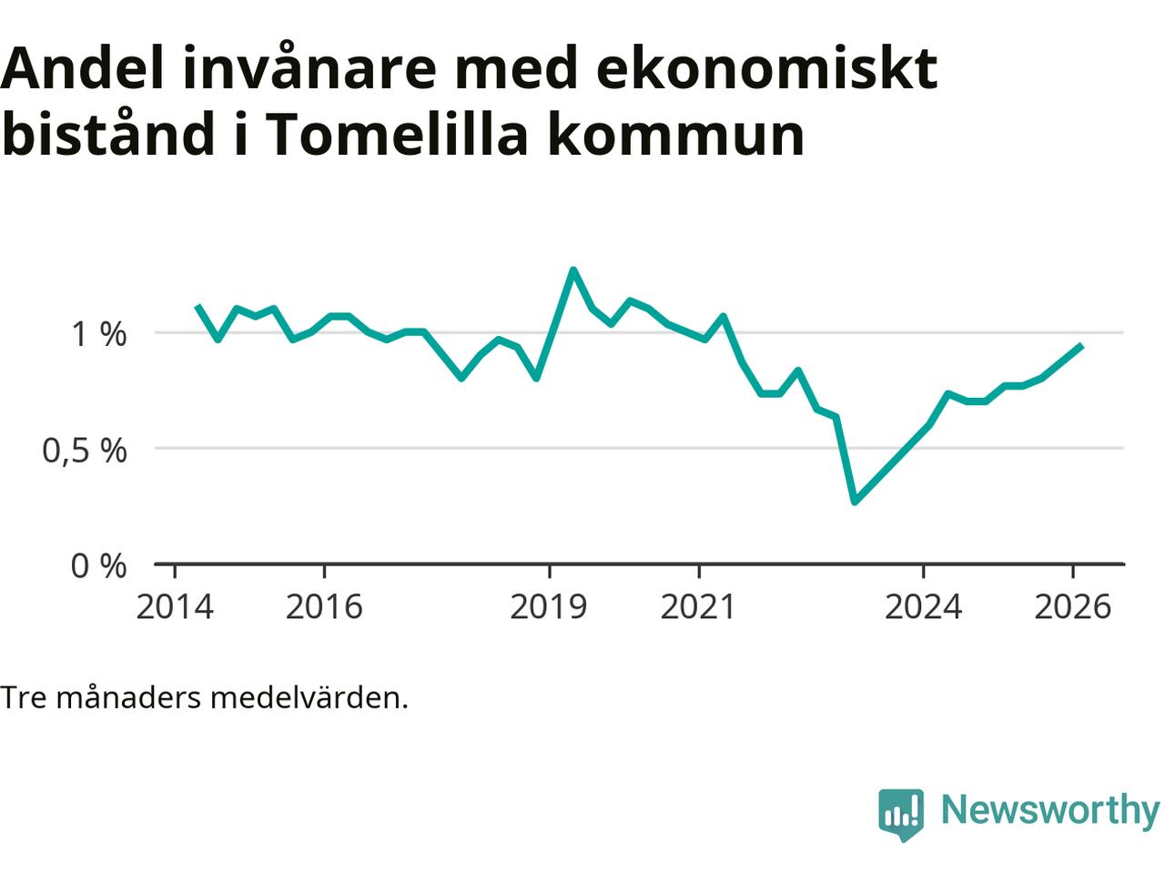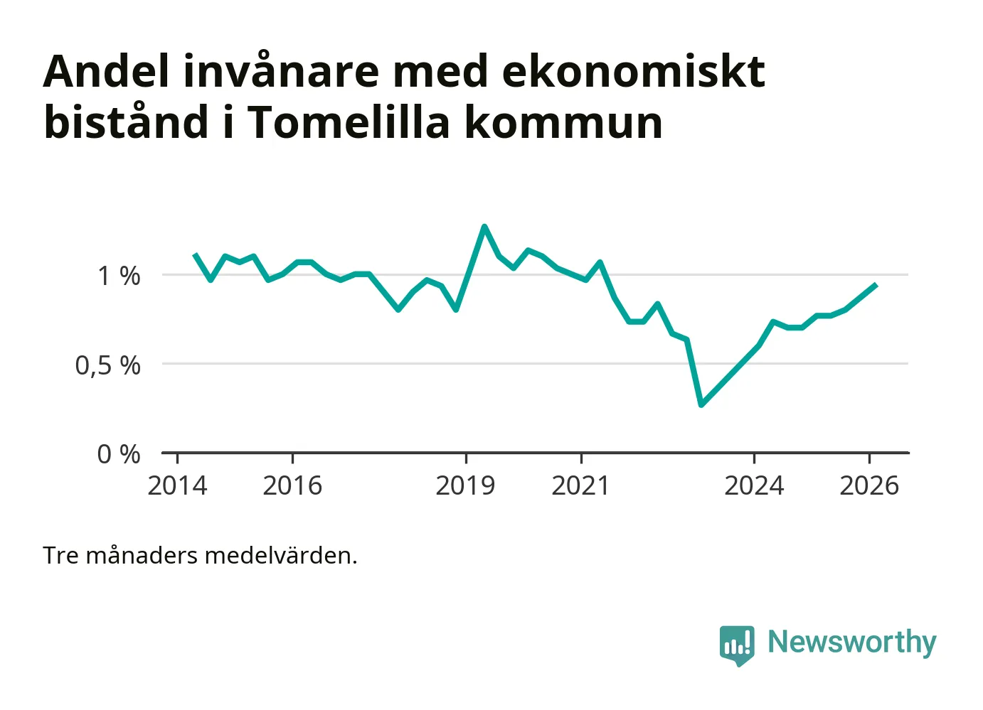 I genomsnitt 131 personer per månad fick ekonomiskt bistånd i Tomelilla kommun under vintermånaderna (december till februari), vilket motsvarar 0,9 procent av den vuxna befolkningen. Det är marginellt mer än i höstas, och något större andel än under vintern för ett år sedan.