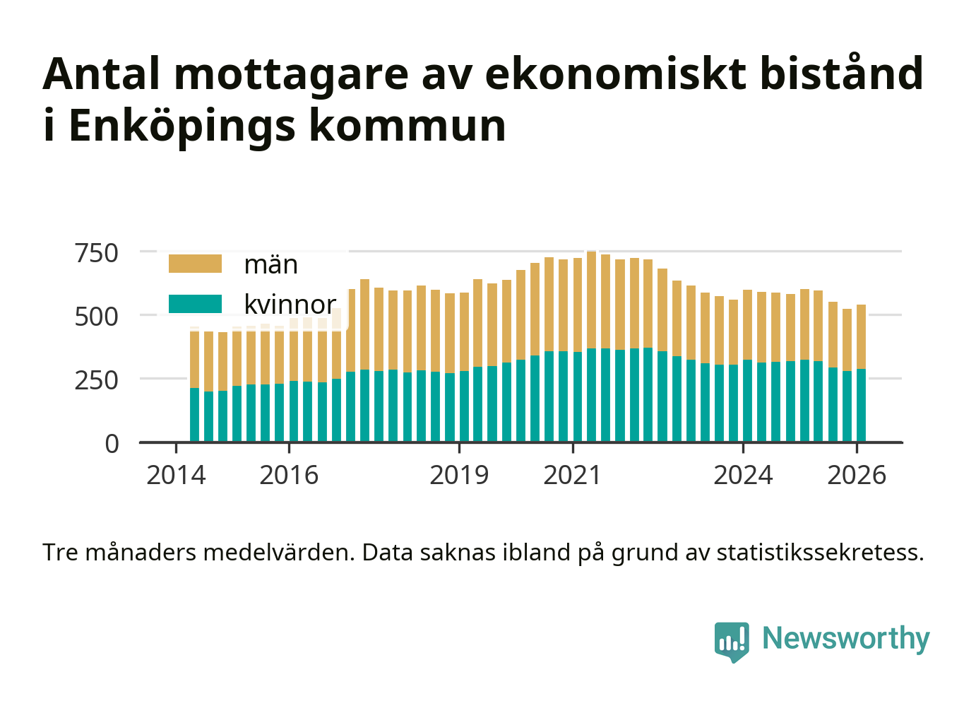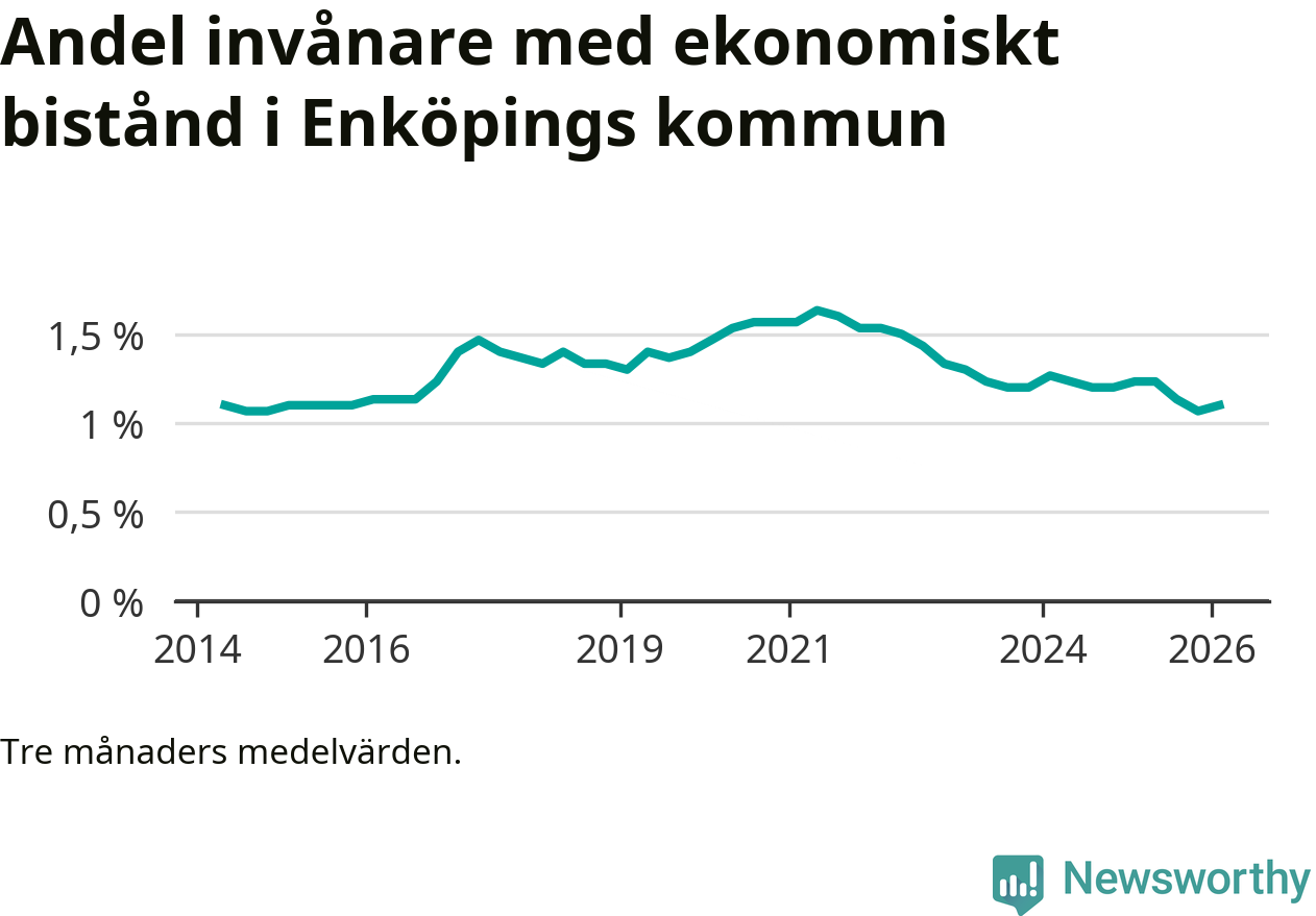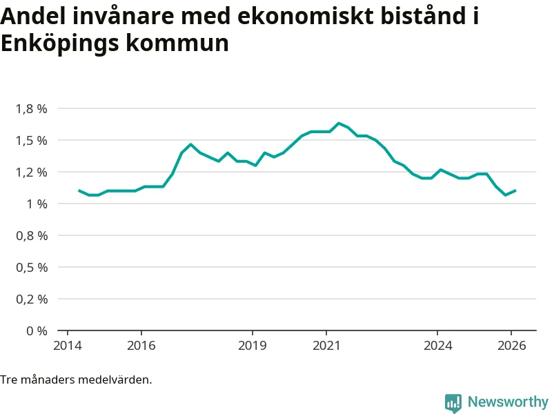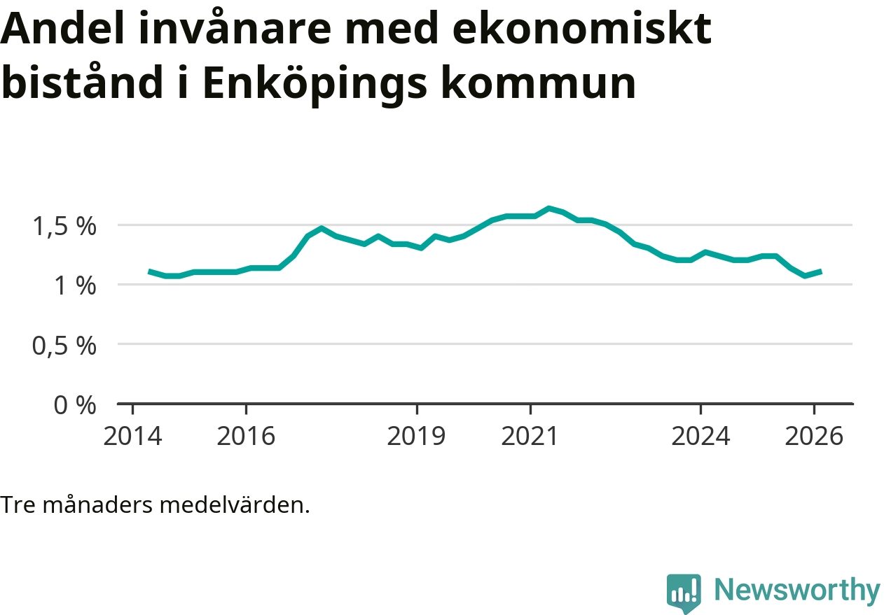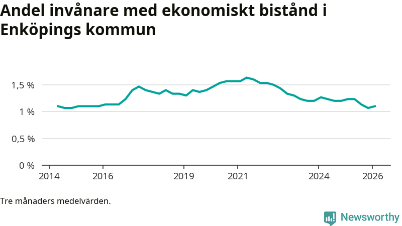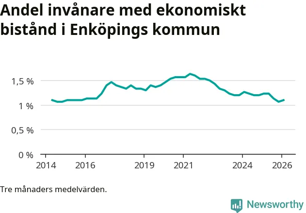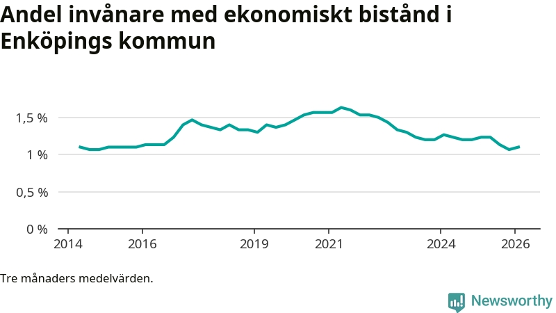 I genomsnitt 539 personer per månad fick ekonomiskt bistånd i Enköpings kommun