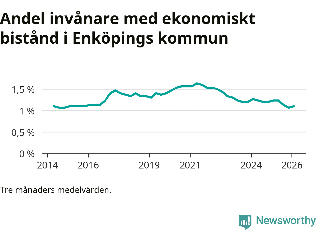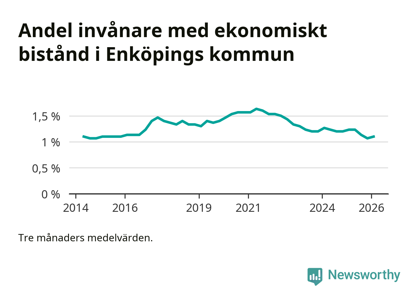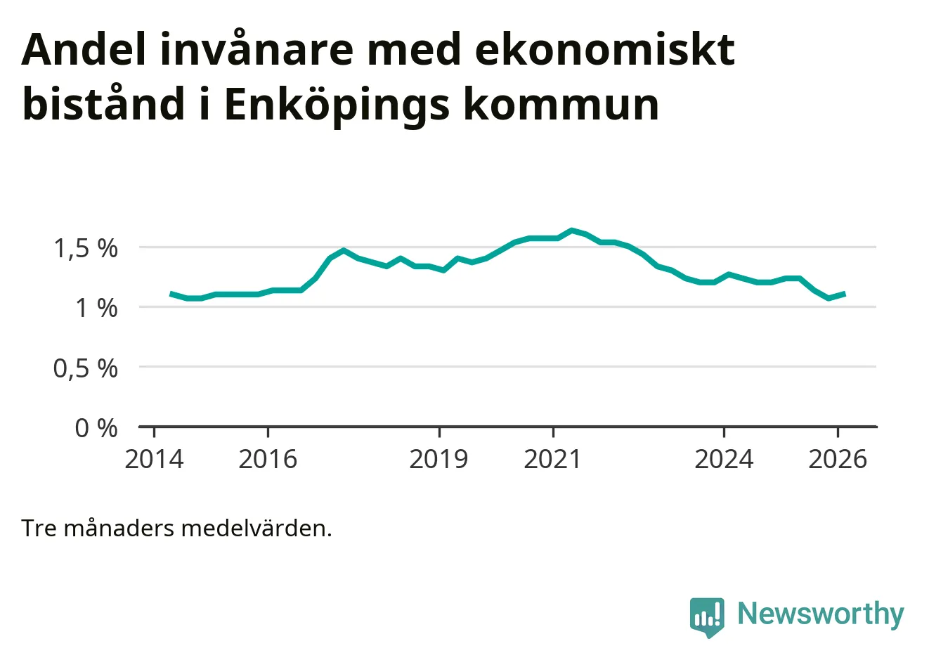 Andelen invånare med ekonomiskt bistånd i Enköpings kommun
