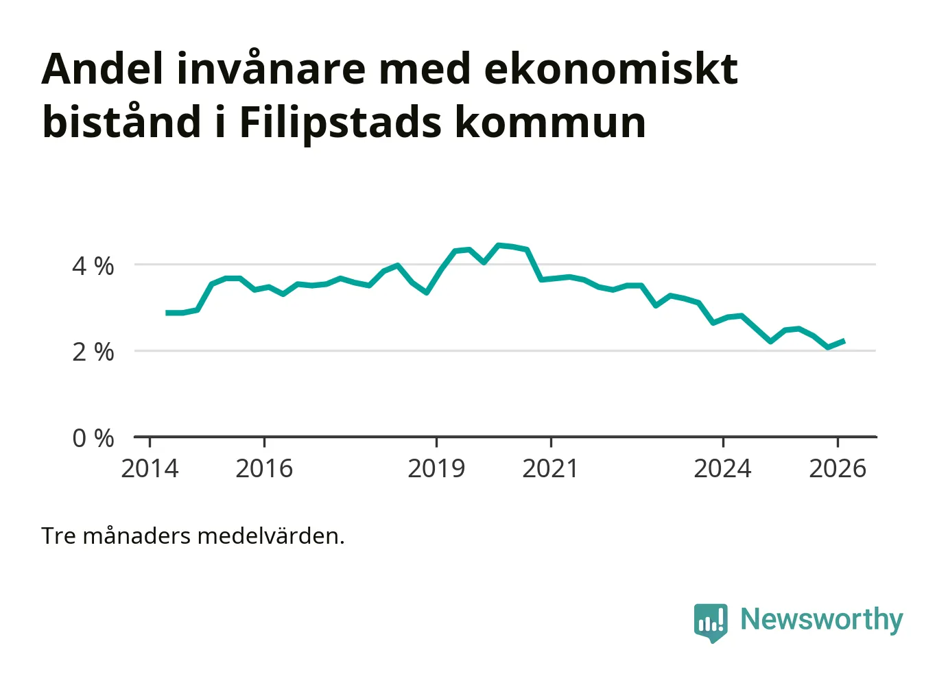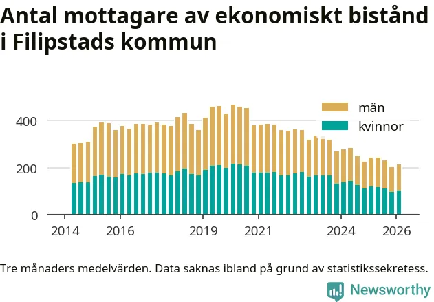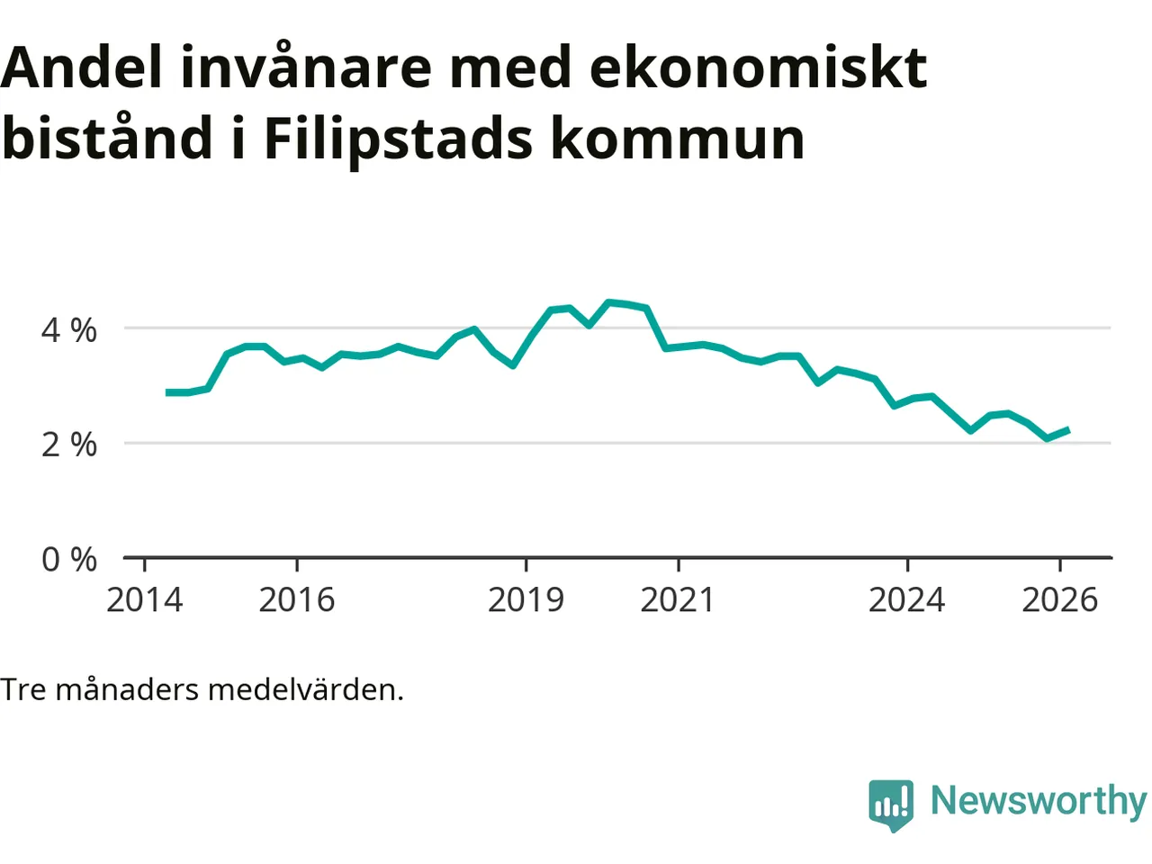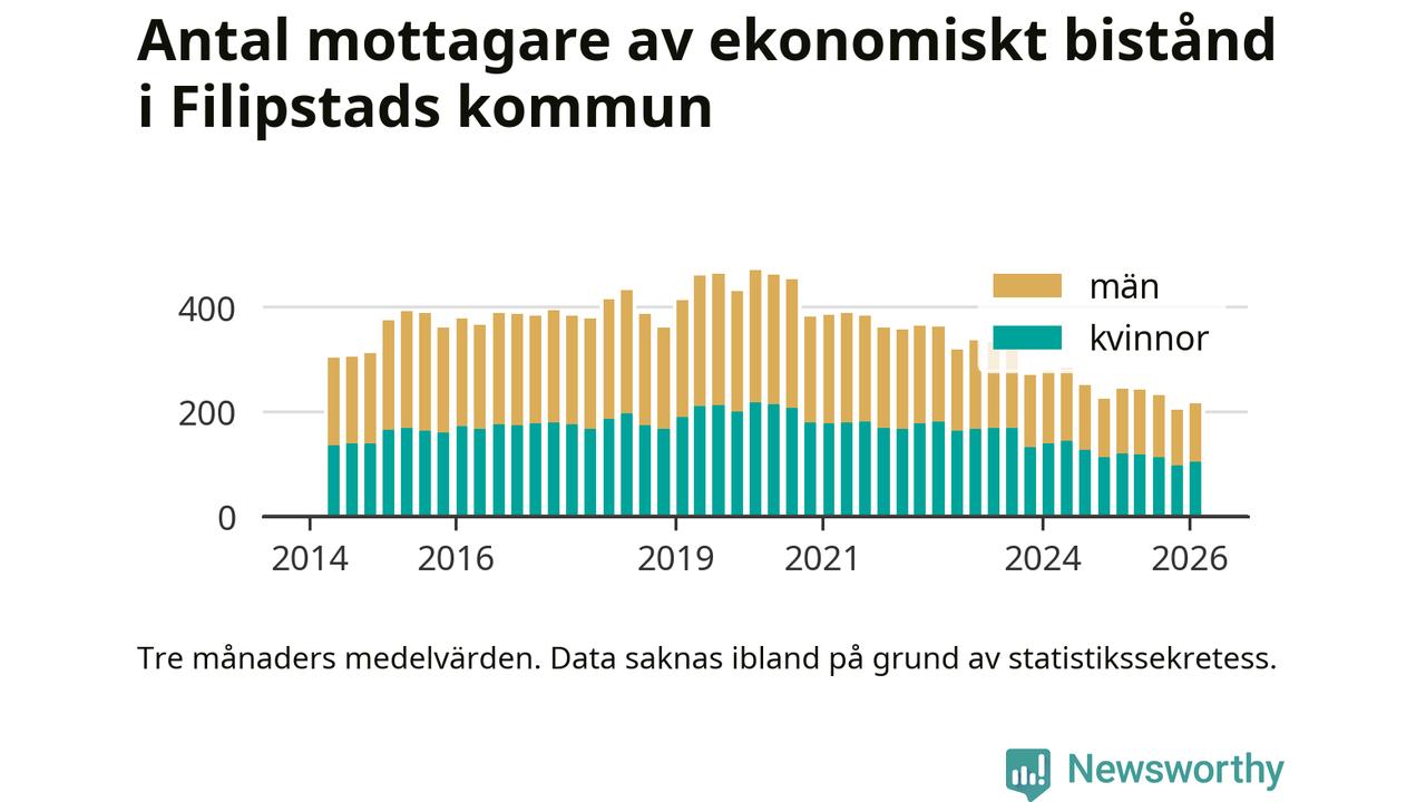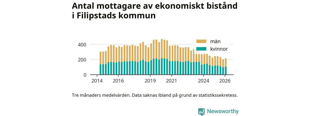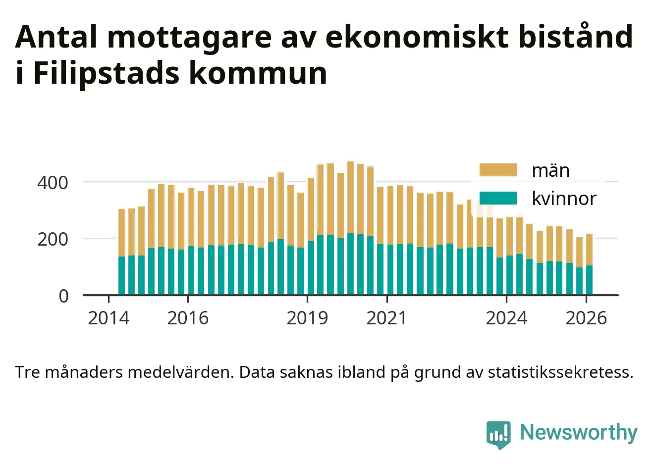I genomsnitt 215 personer per månad fick ekonomiskt bistånd i Filipstads kommun