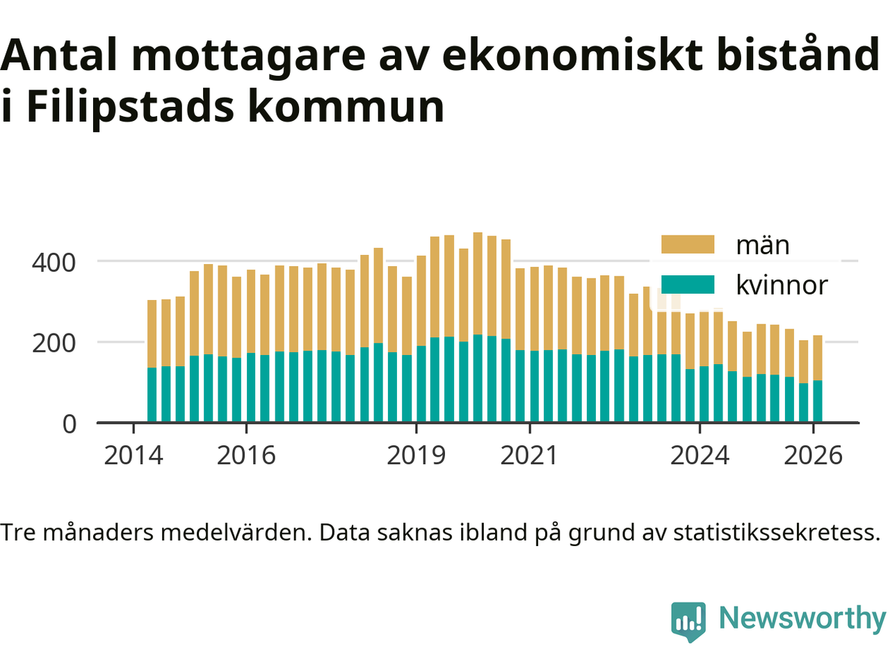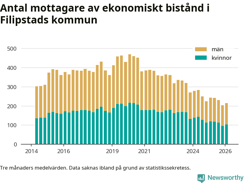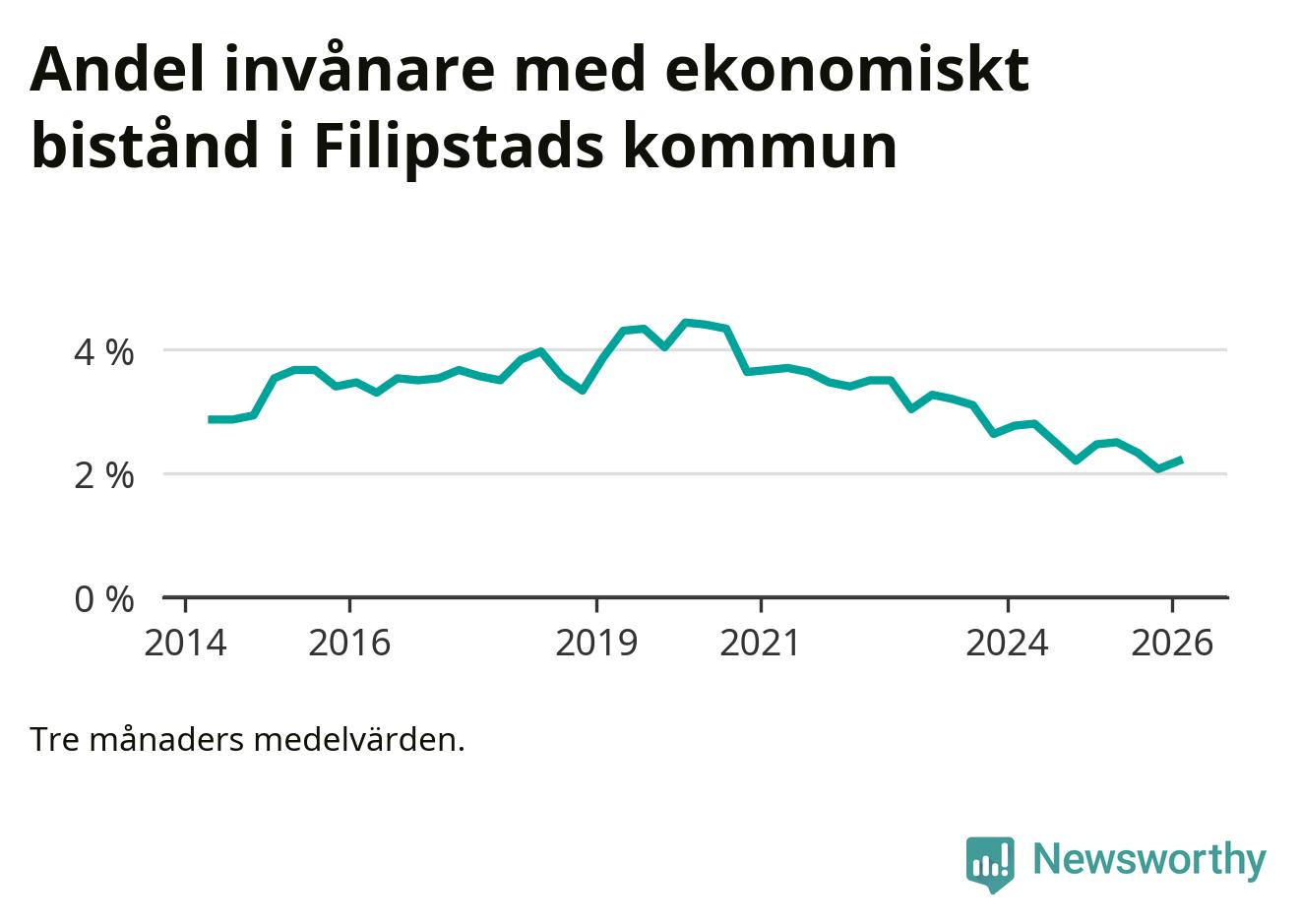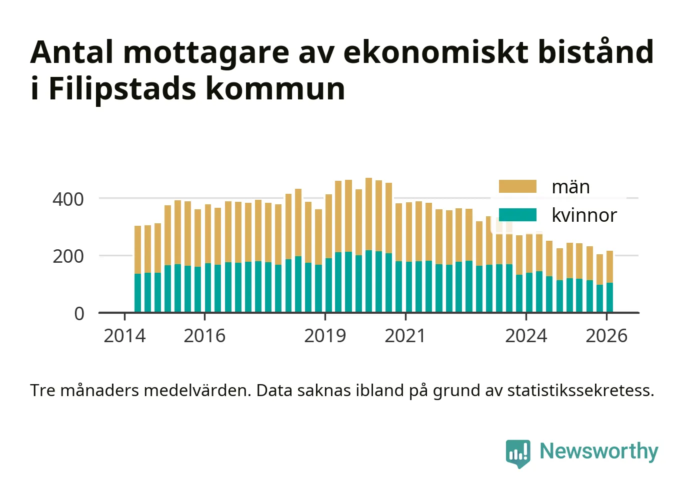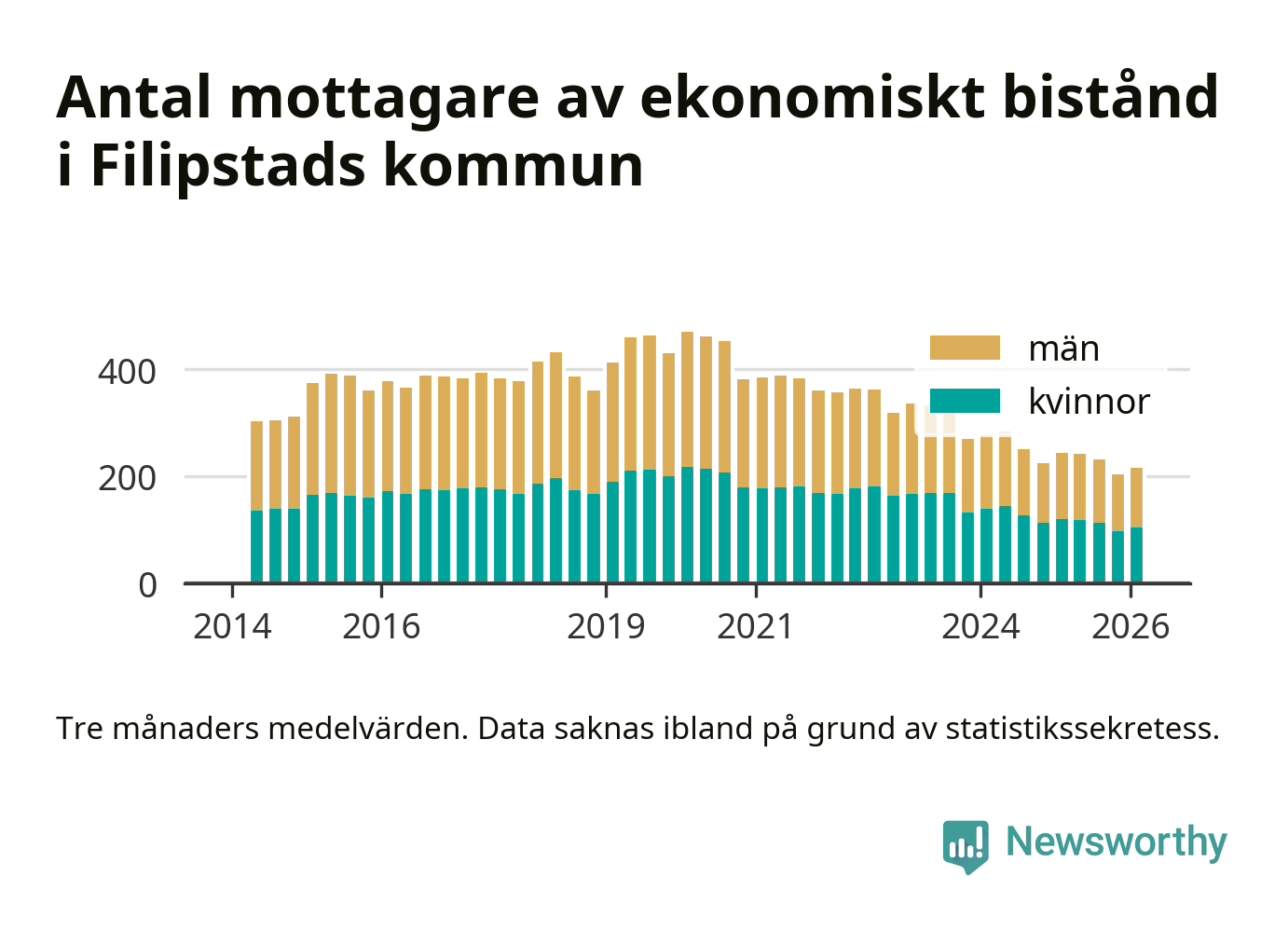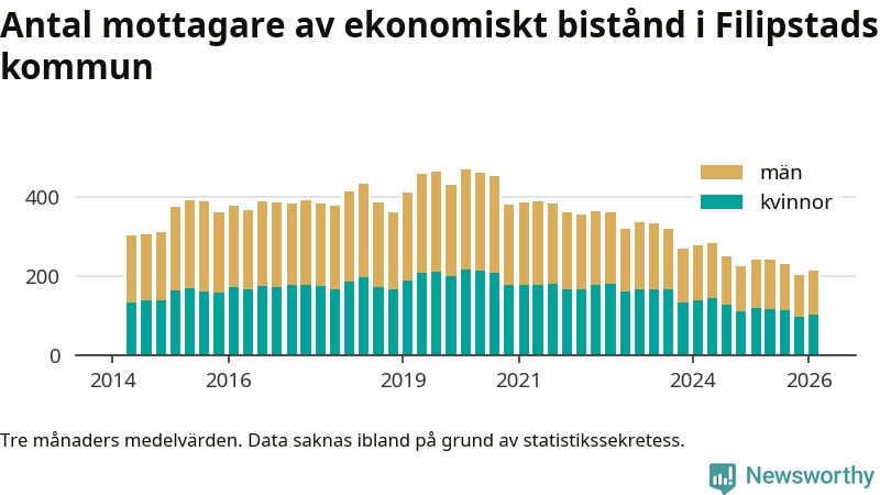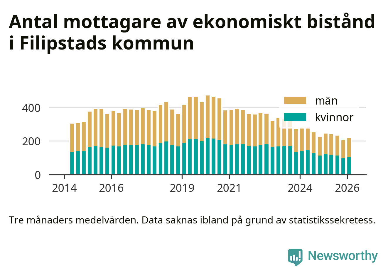 I genomsnitt 215 personer per månad fick ekonomiskt bistånd i Filipstads kommun