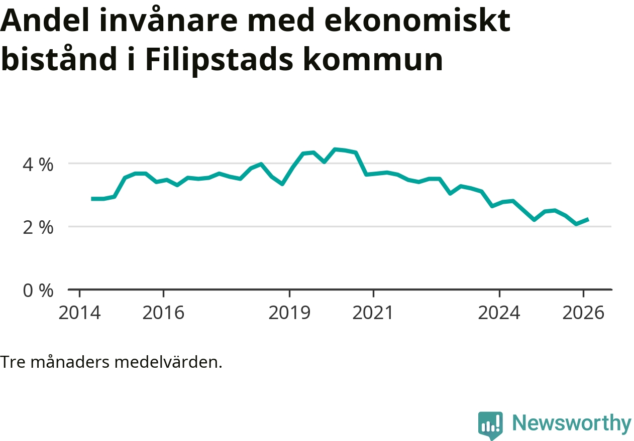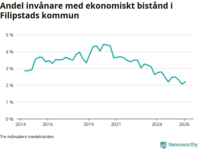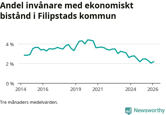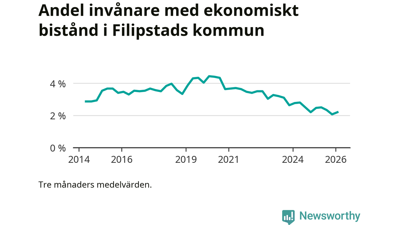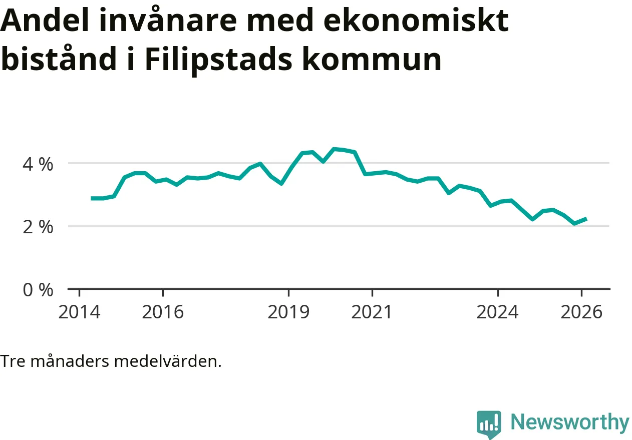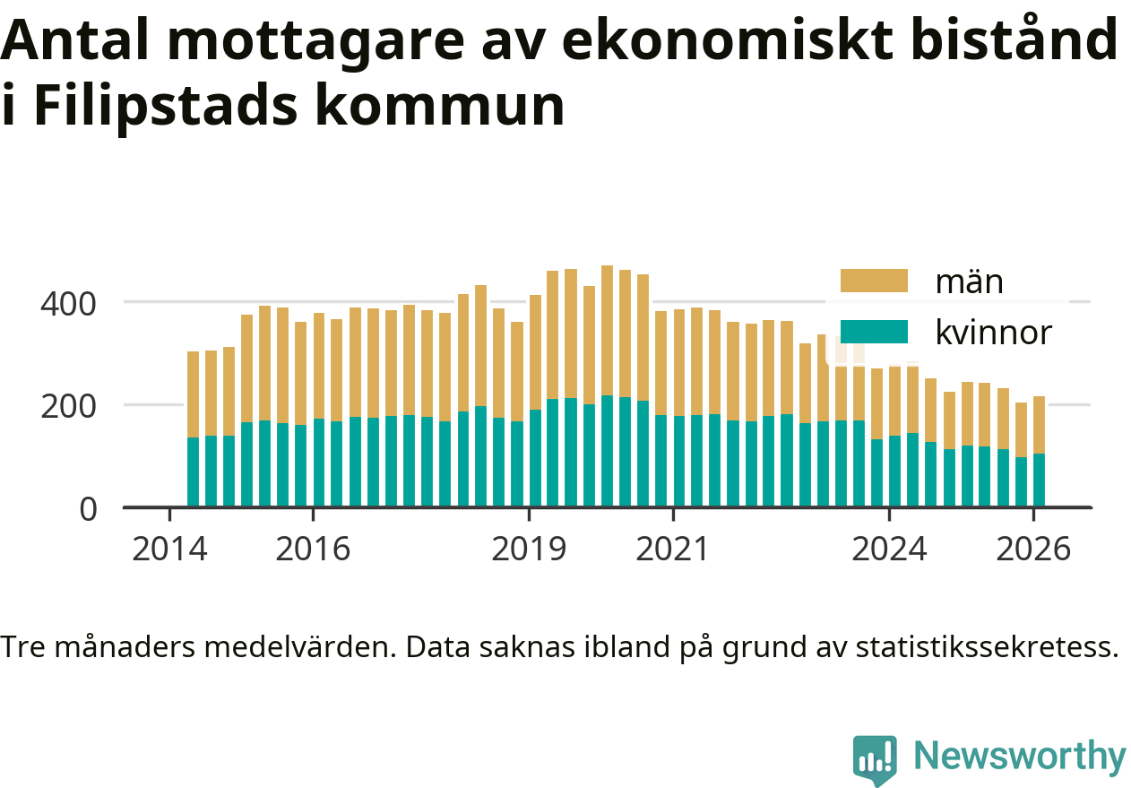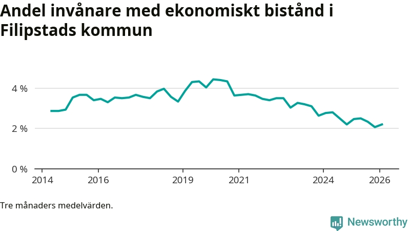 I genomsnitt 215 personer per månad fick ekonomiskt bistånd i Filipstads kommun