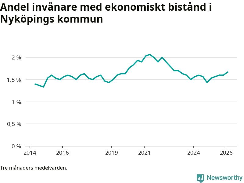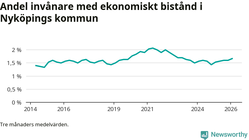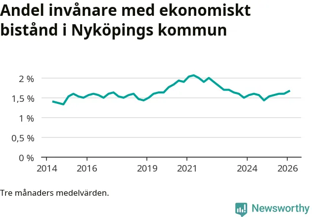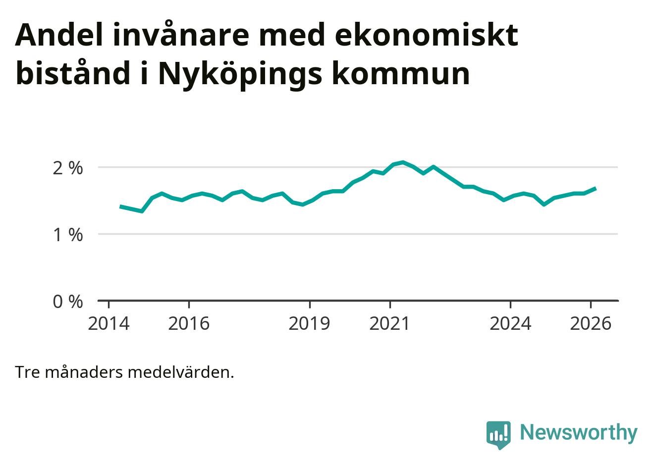 Andelen invånare med ekonomiskt bistånd i Nyköpings kommun