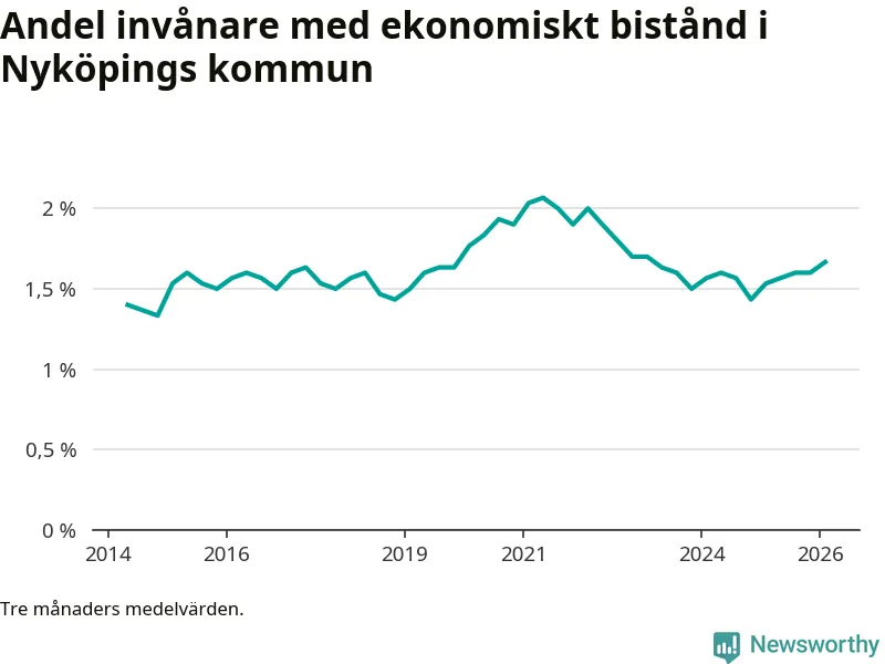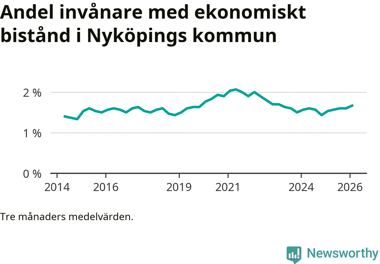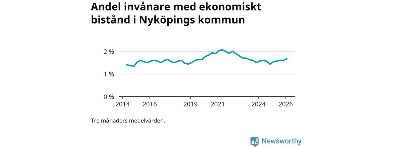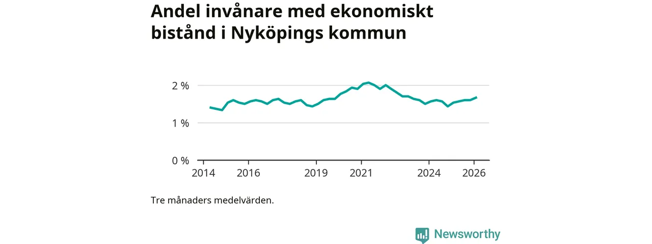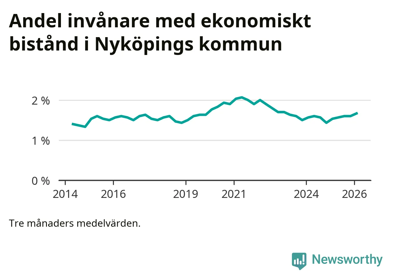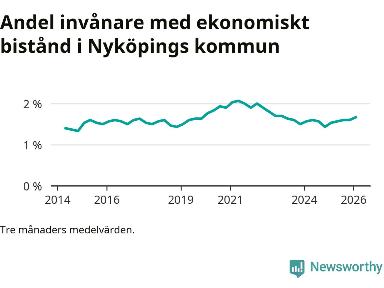 I genomsnitt 969 personer per månad fick ekonomiskt bistånd i Nyköpings kommun