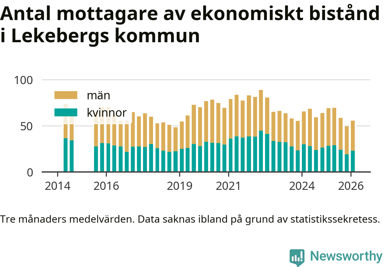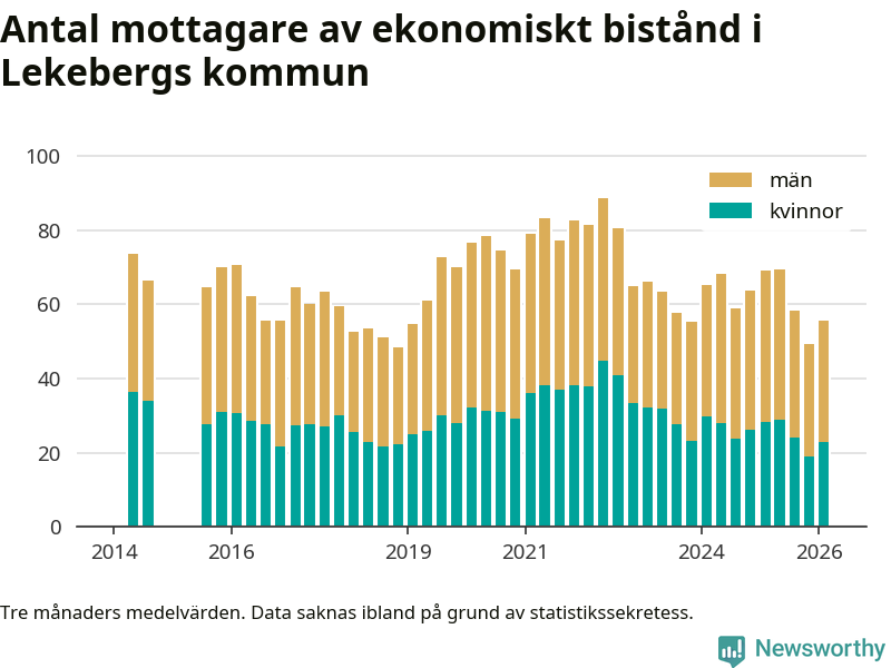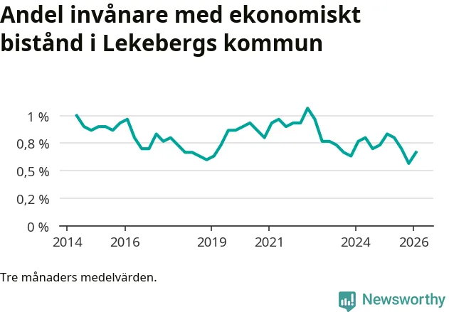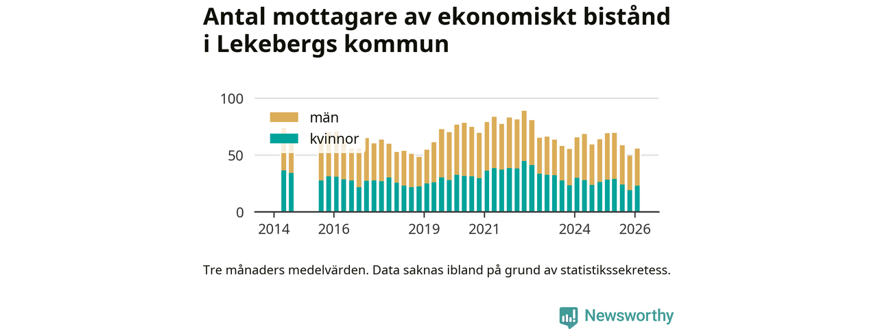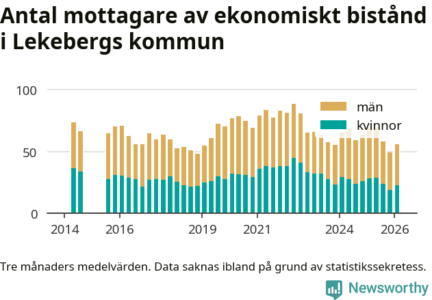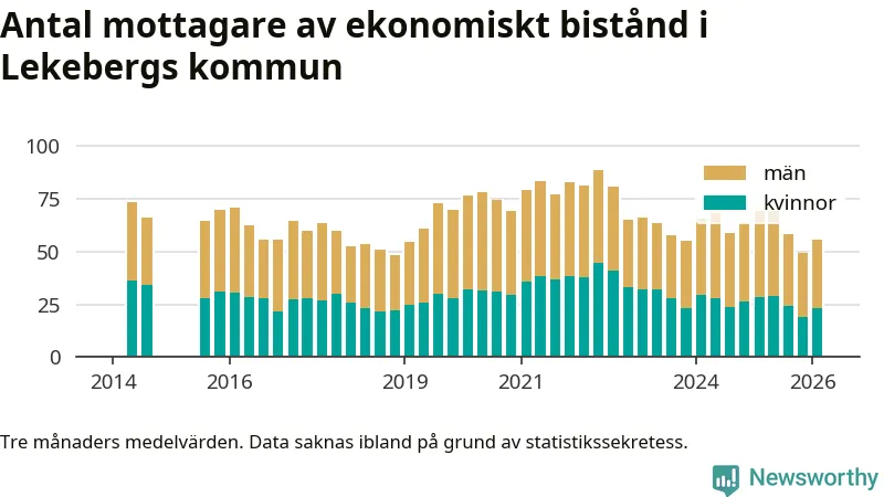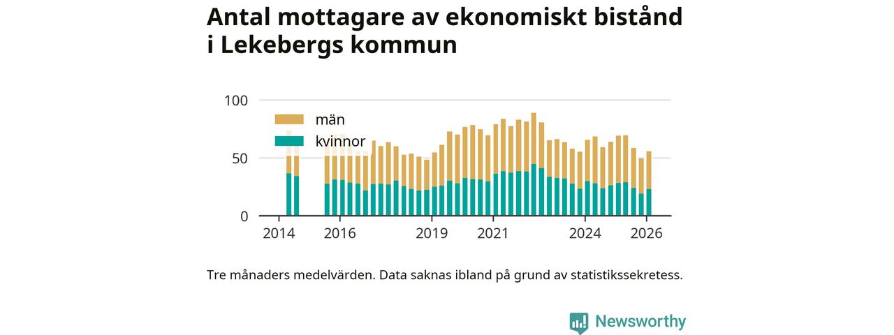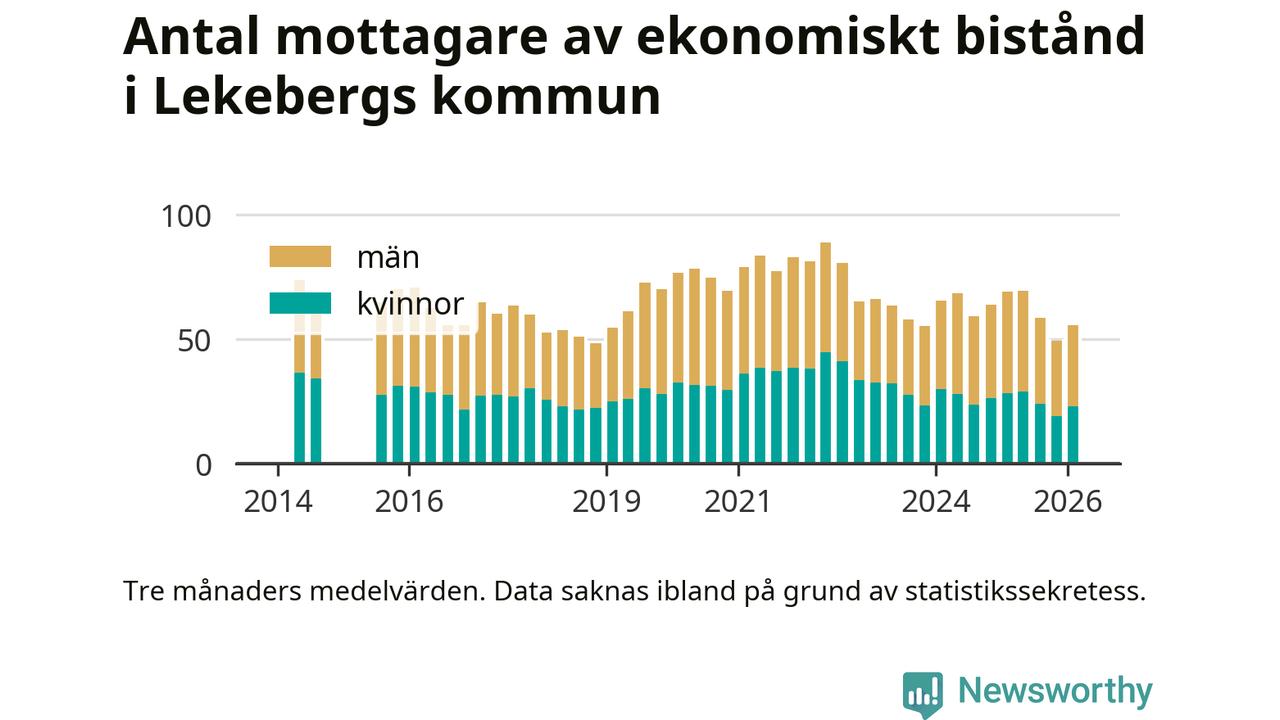 I genomsnitt 56 personer per månad fick ekonomiskt bistånd i Lekebergs kommun