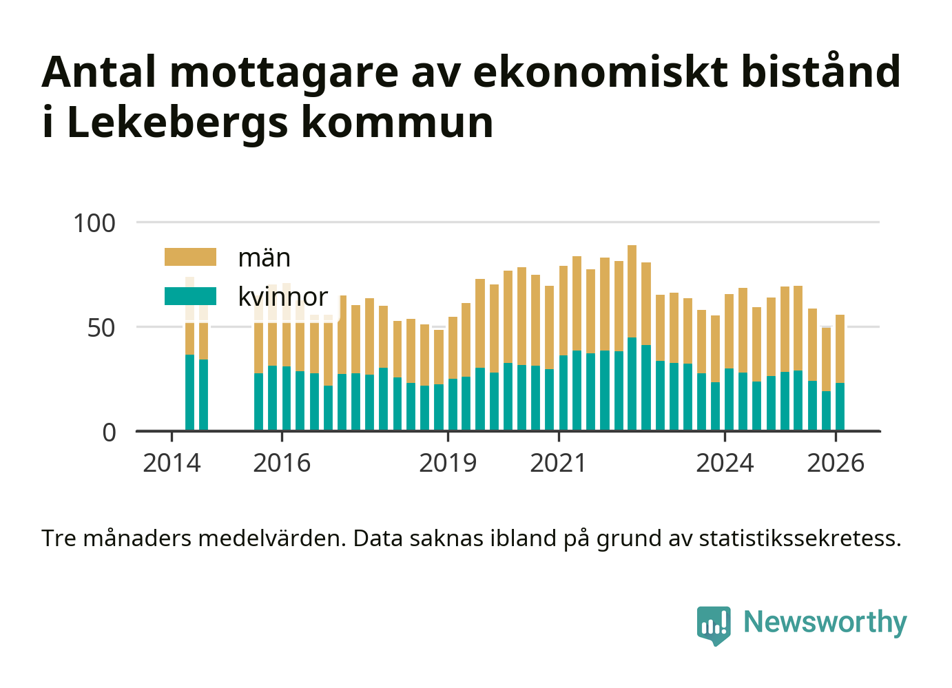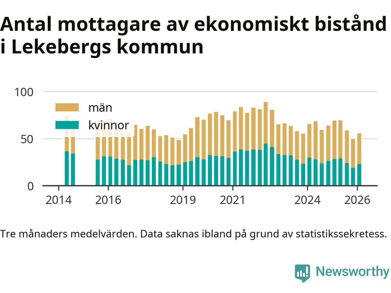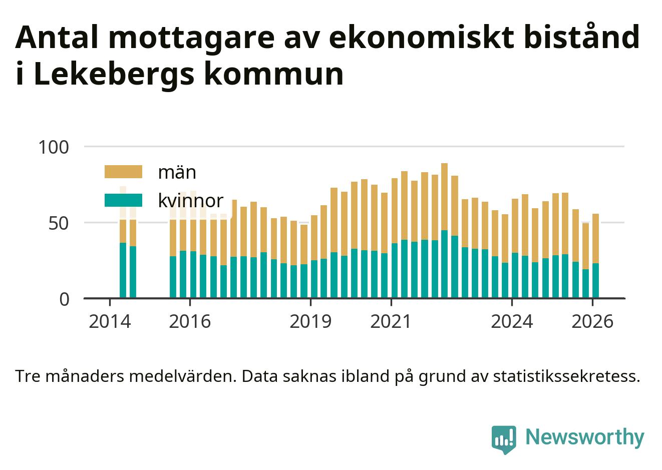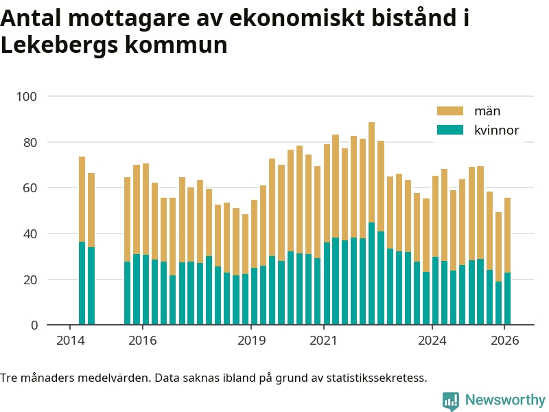 I genomsnitt 56 personer per månad fick ekonomiskt bistånd i Lekebergs kommun