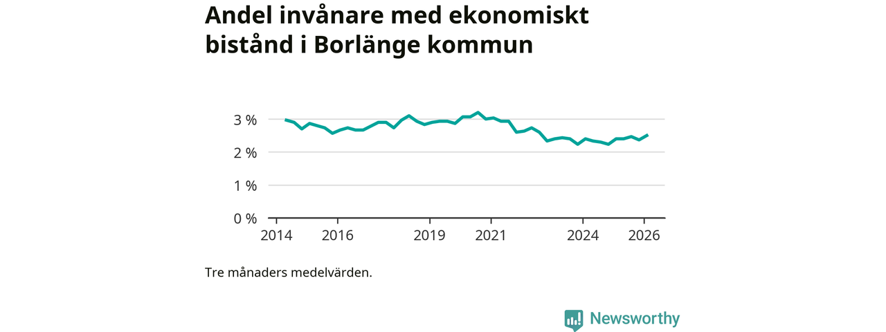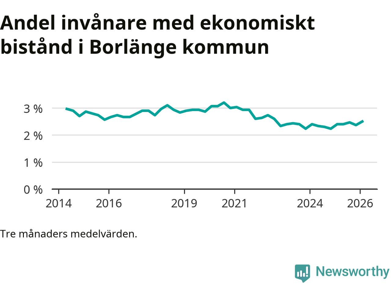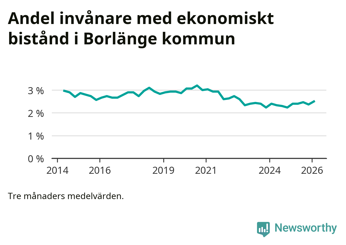Andelen invånare med ekonomiskt bistånd i Borlänge kommun