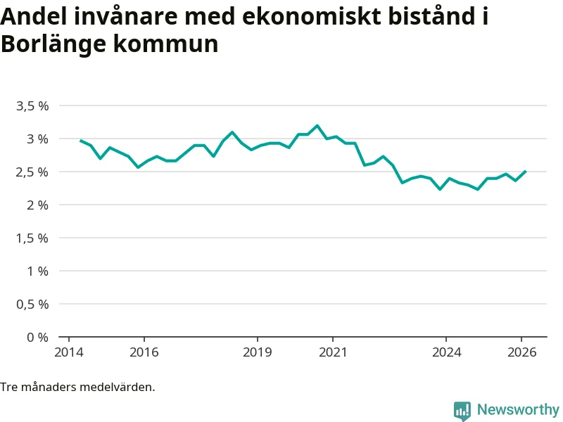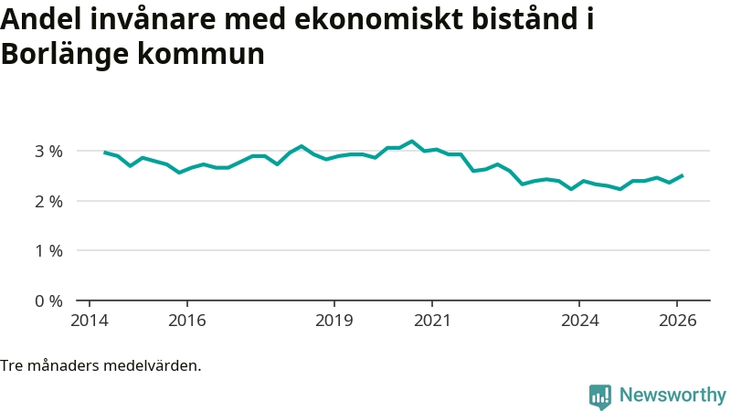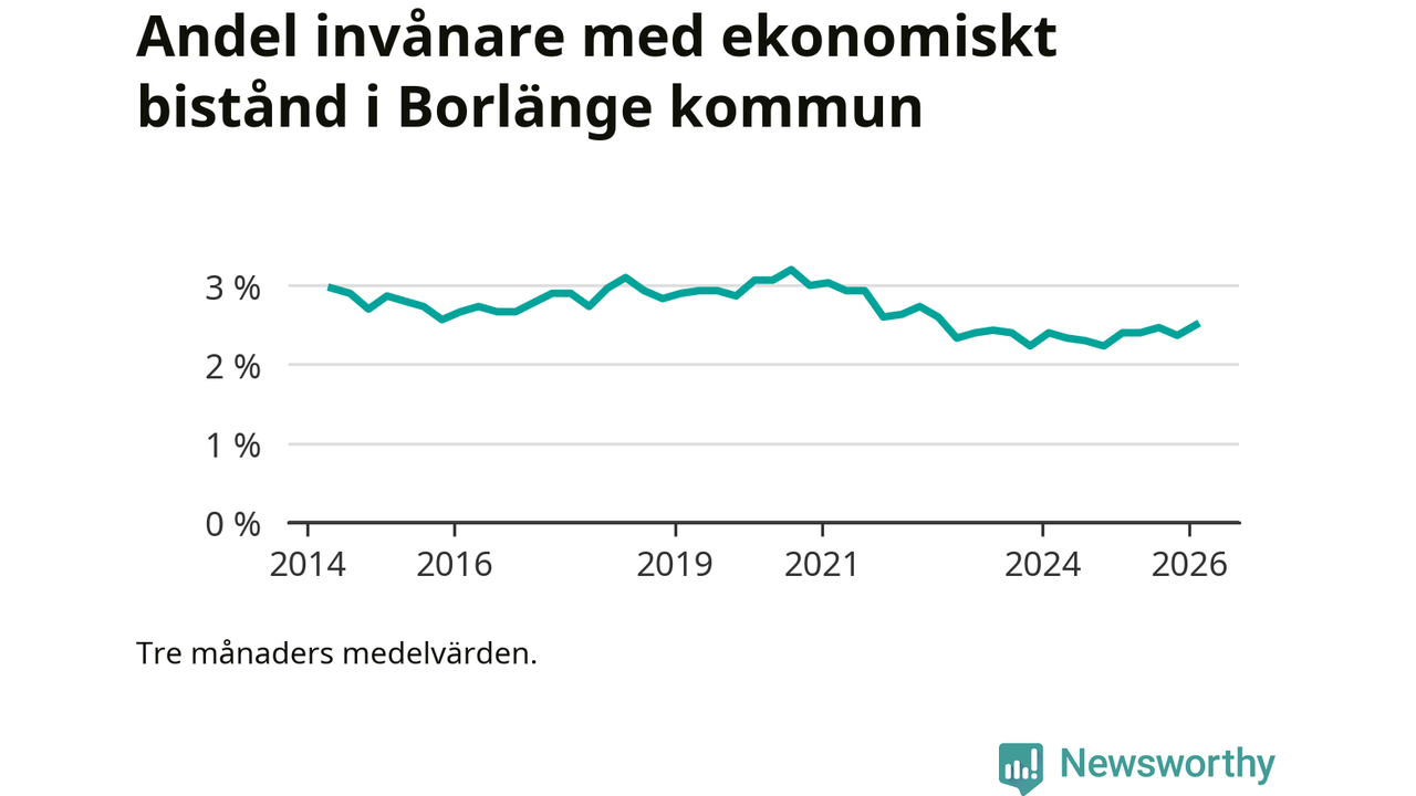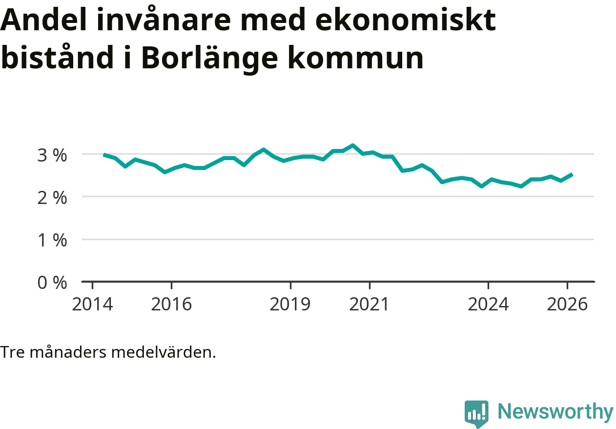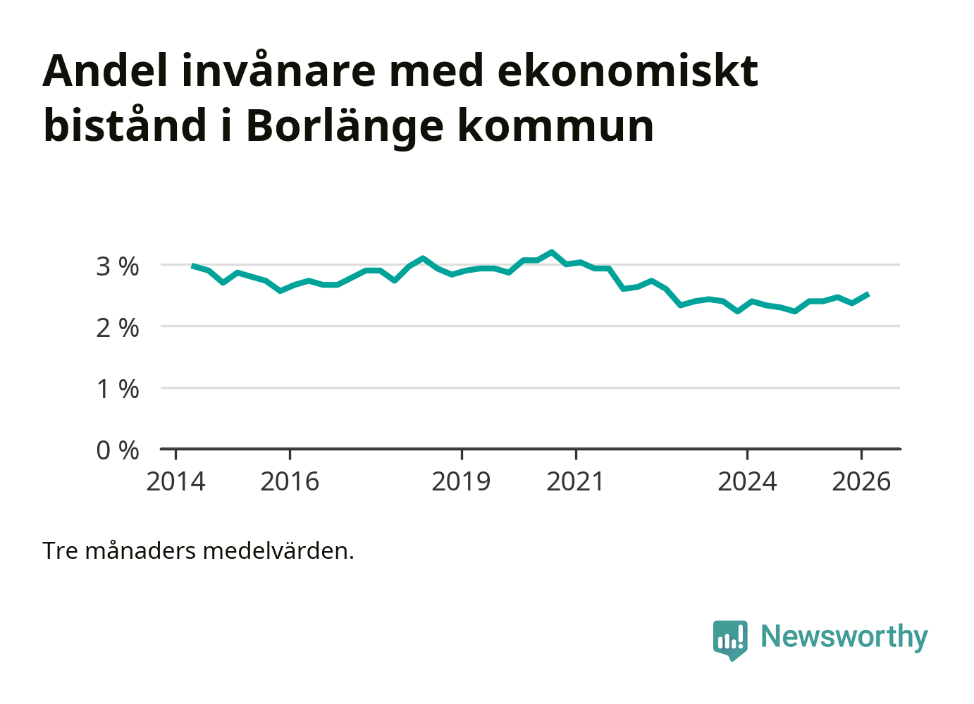 Andelen invånare med ekonomiskt bistånd i Borlänge kommun