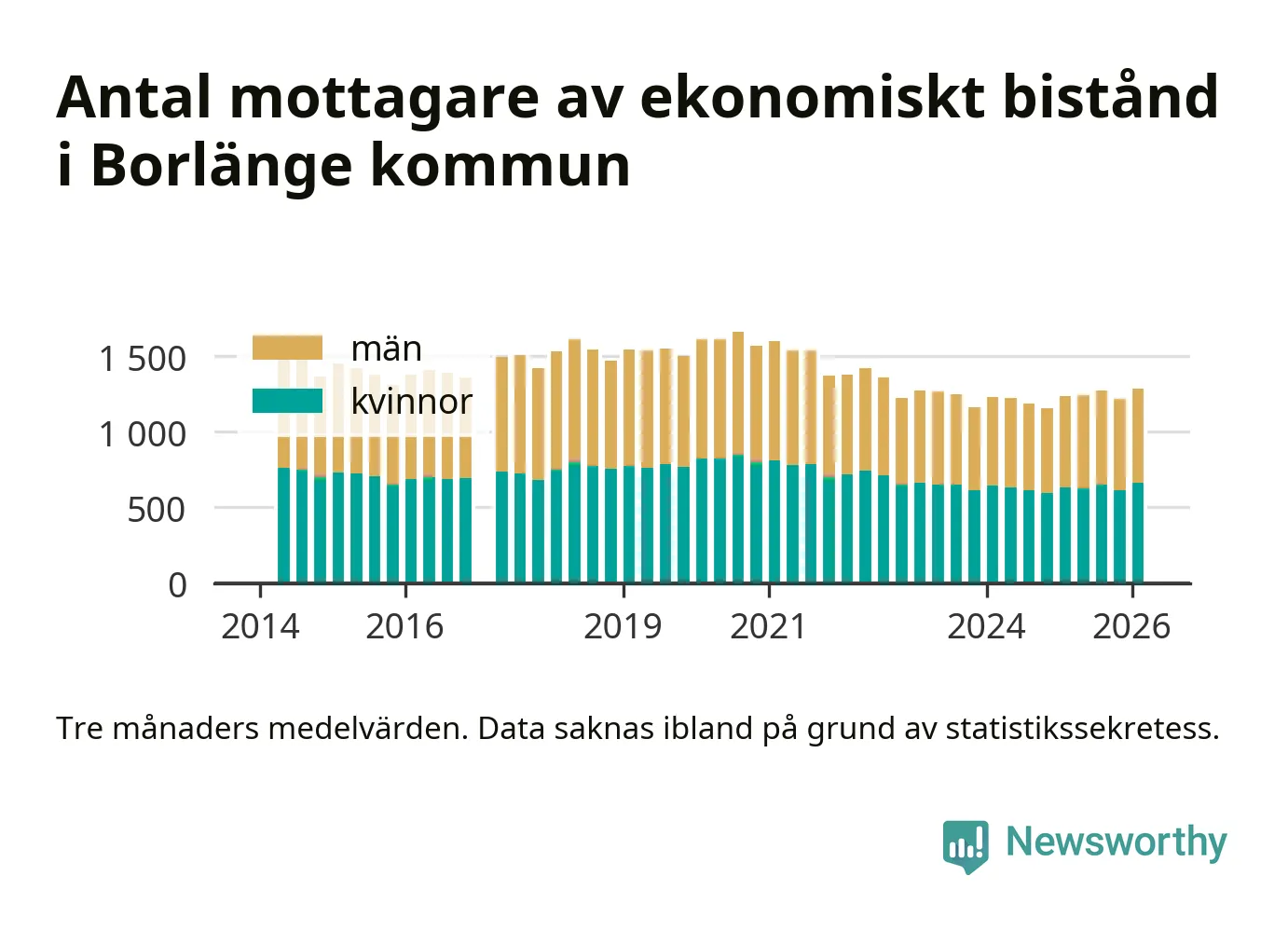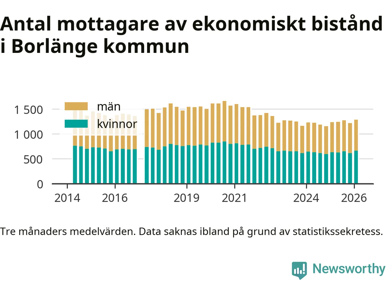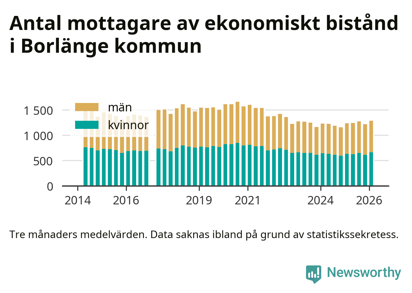 I genomsnitt 1 286 personer per månad fick ekonomiskt bistånd i Borlänge kommun