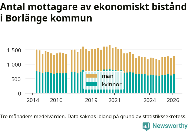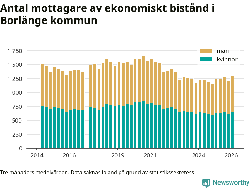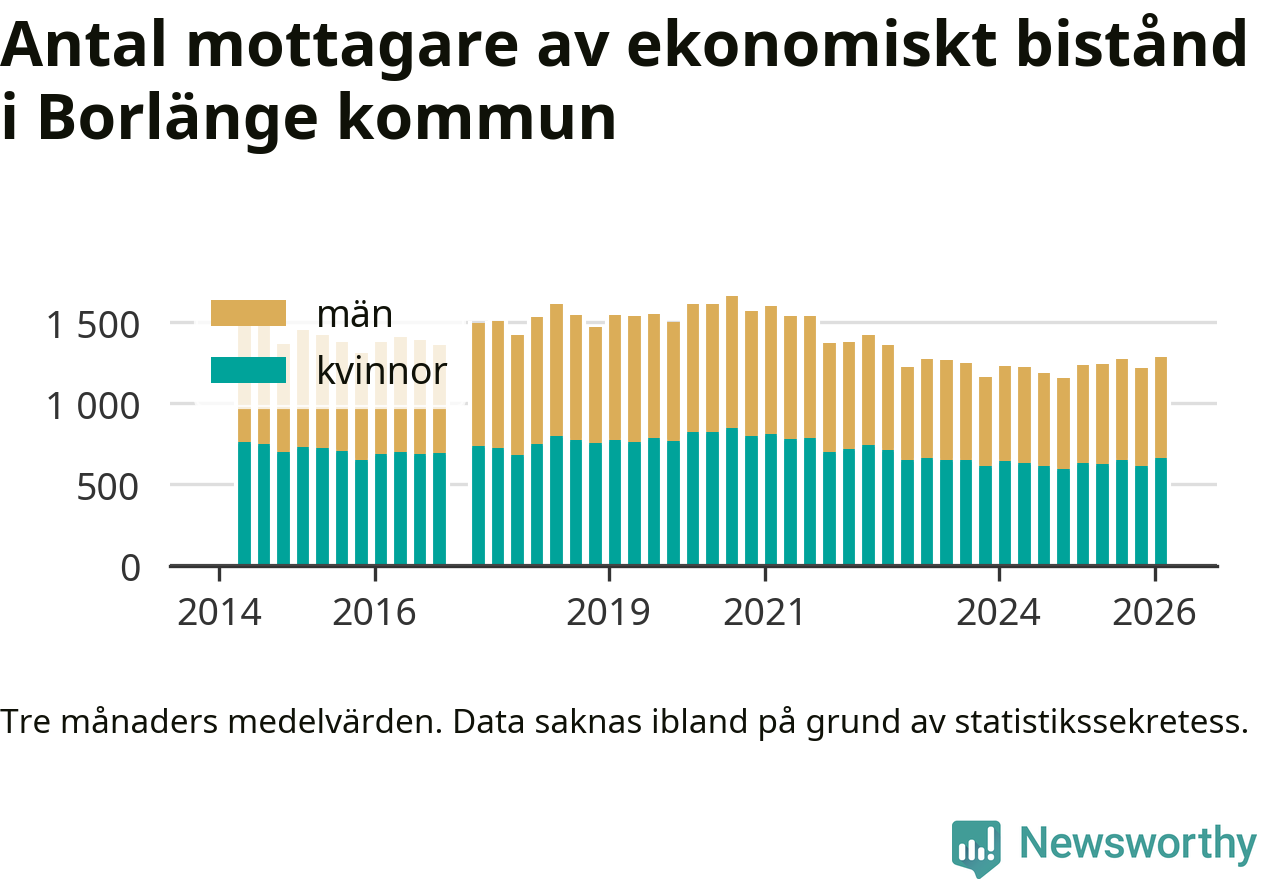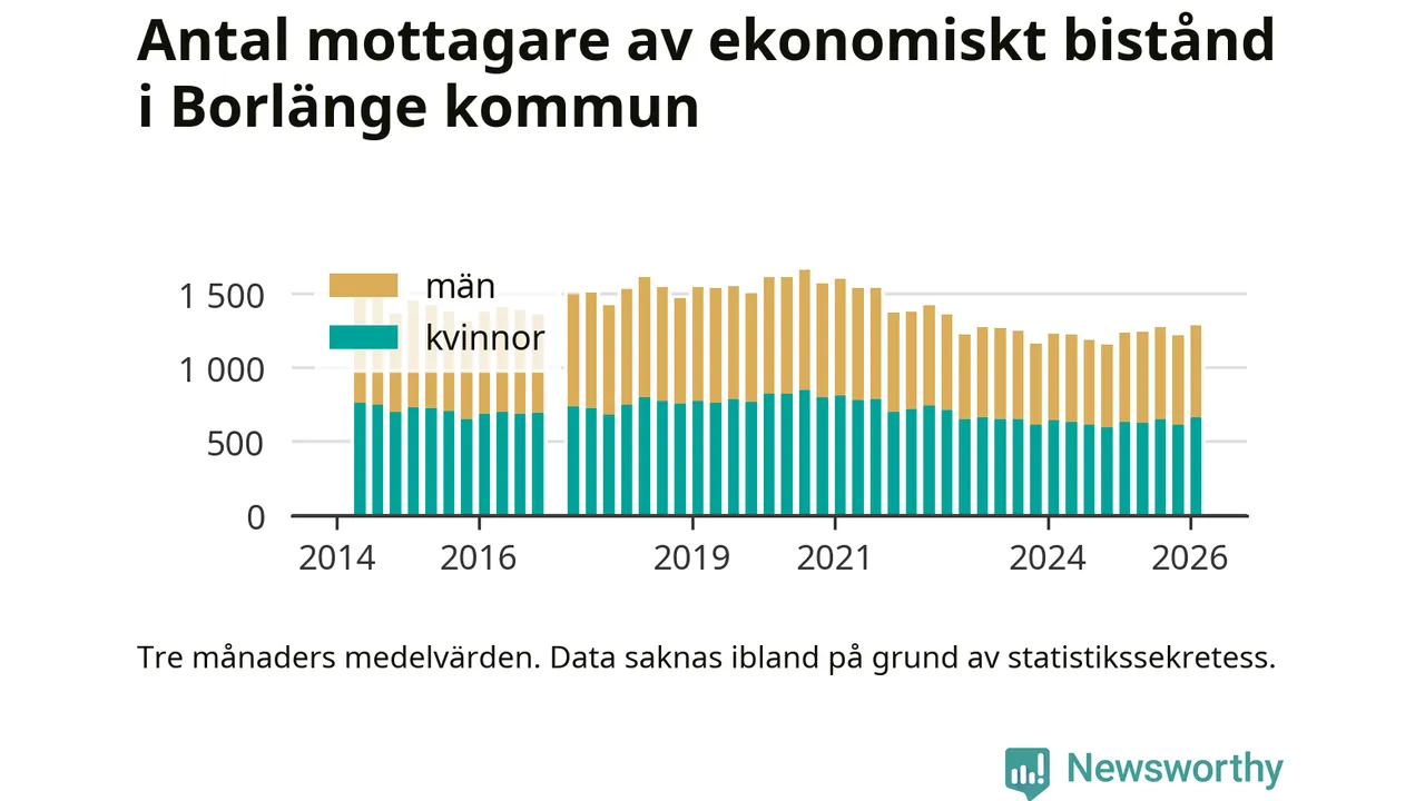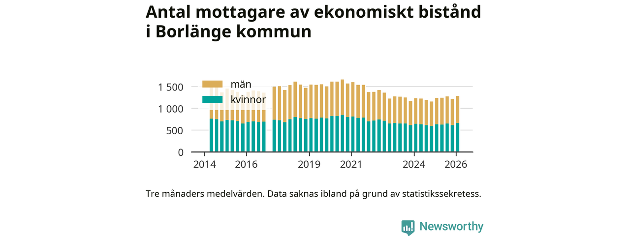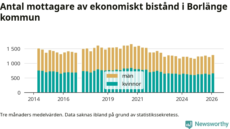 I genomsnitt 1 286 personer per månad fick ekonomiskt bistånd i Borlänge kommun